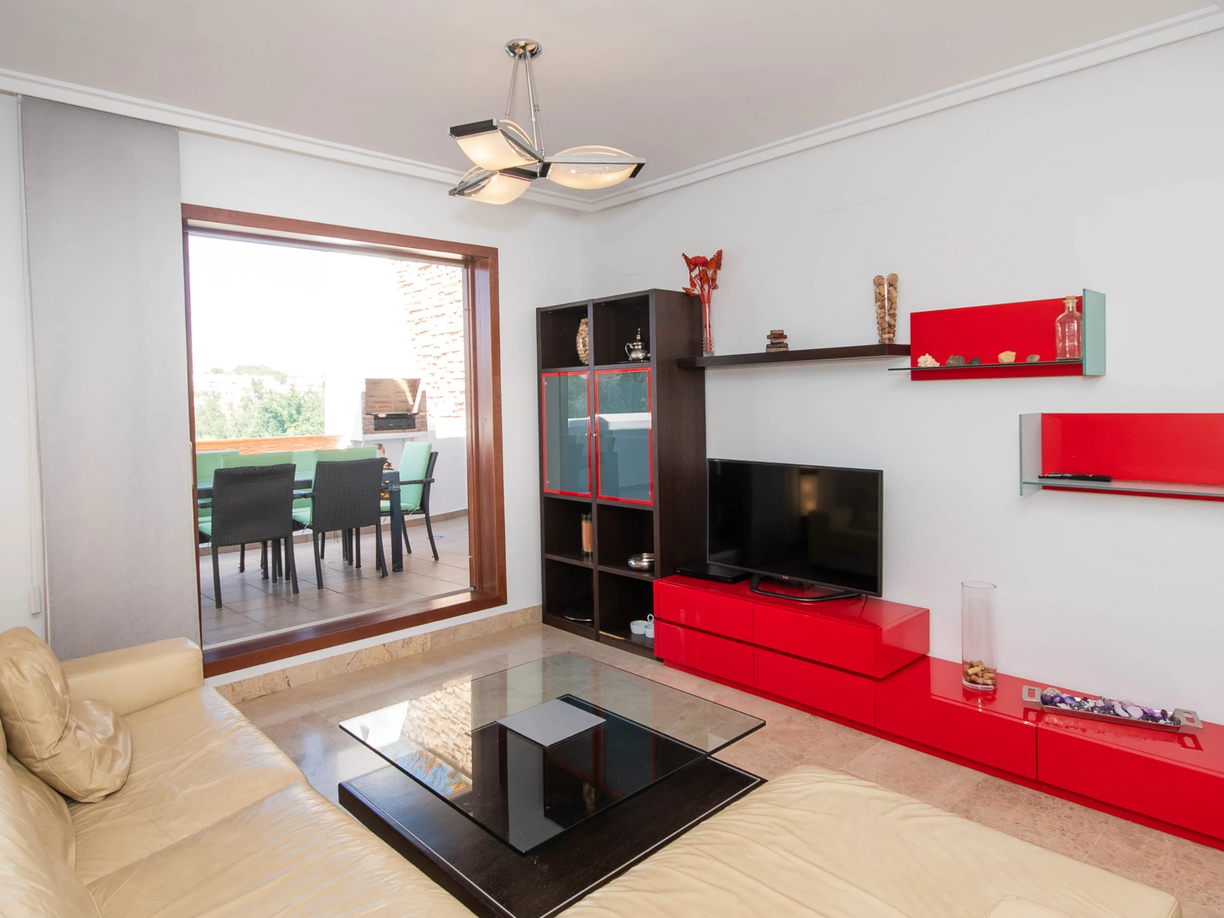 El interior del alojamiento ofrece una distribución cómoda y luminosa. La cocina, totalmente equipada con menaje y electrodomésticos modernos, se integra de forma práctica con la zona de comedor. El amplio salón, con grandes ventanales y vistas despejadas a las montañas de Málaga, invita al descanso con sofás confortables y acceso directo a una terraza amplia con barbacoa de obra, perfecta para disfrutar de comidas al aire libre con un paisaje inolvidable.
