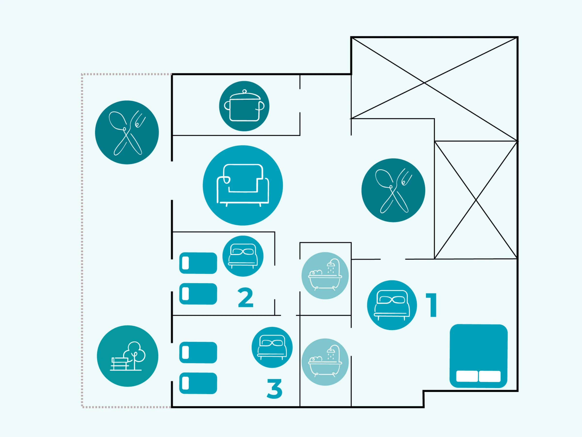 • Dos dormitorios adicionales con 2 camas individuales cada uno.