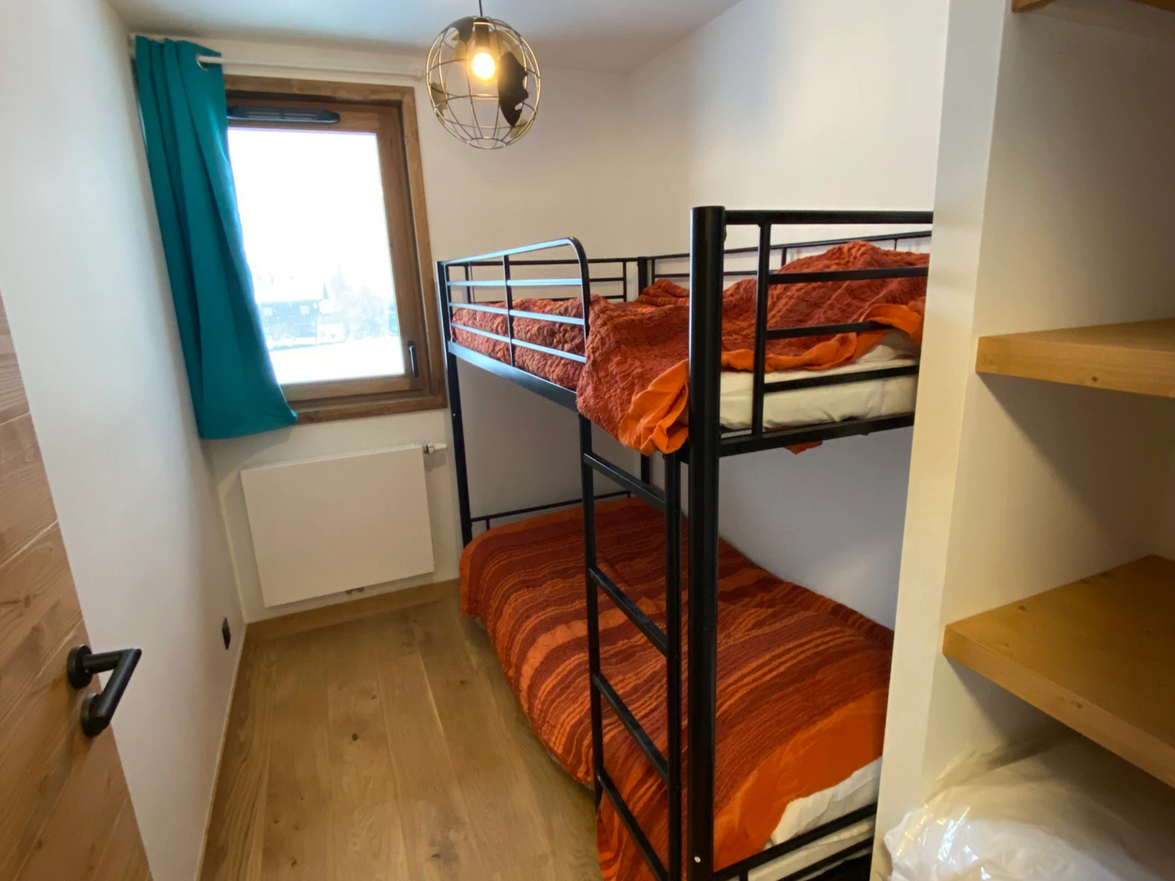 Apartamento de 67 m², ubicado en la 2.ª planta, compuesto por entrada con armario empotrado, baño con bañera, amplio salón con cocina equipada, dos dormitorios con camas dobles (140x190), uno con baño (ducha a ras de suelo) y zona de dormitorio con literas (90x190).