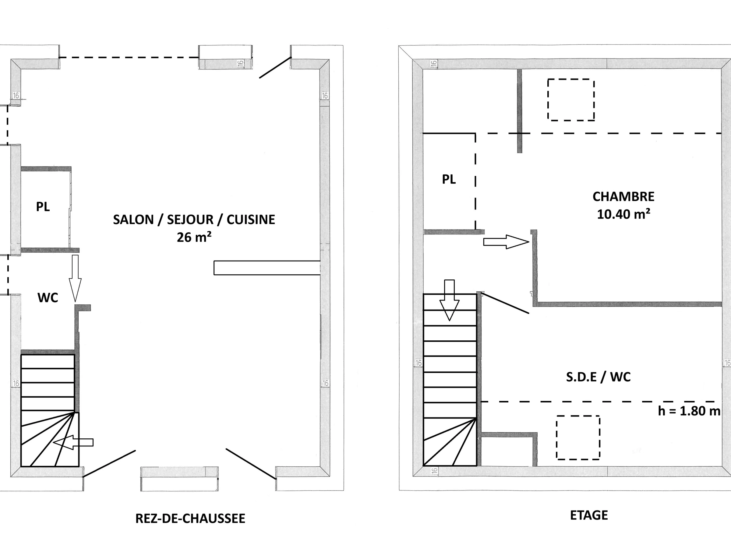 Planta alta: 1 dormitorio (cama de 160x200 cm) y baño con ducha/aseo.