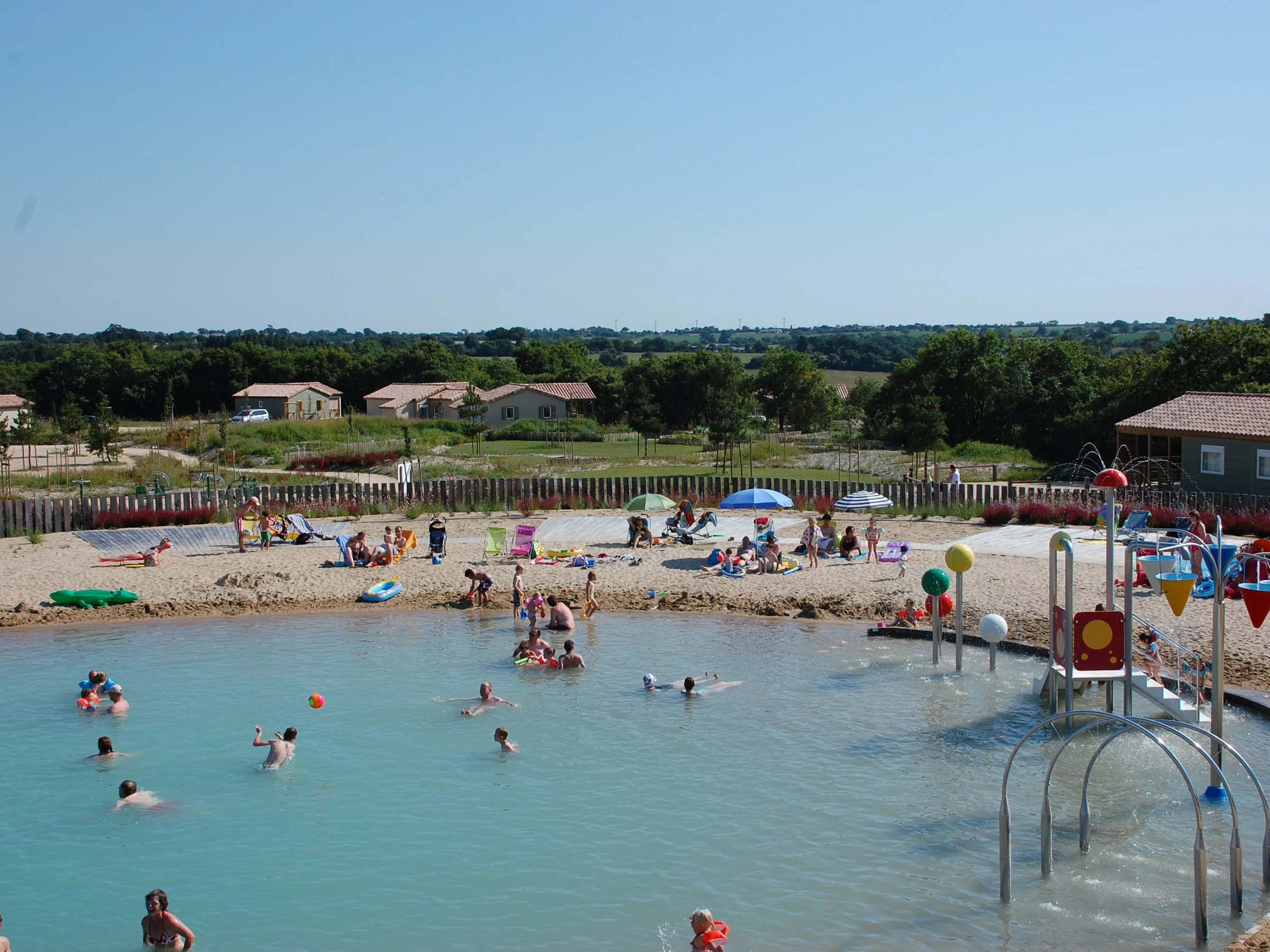 Disfrute también de instalaciones de alta gama durante sus vacaciones: lago para nadar climatizado con playa de arena, piscina cubierta climatizada con hidromasaje, gimnasio, campo polideportivo, mesa de ping-pong. Los niños también podrán divertirse en nuestras zonas de juego.