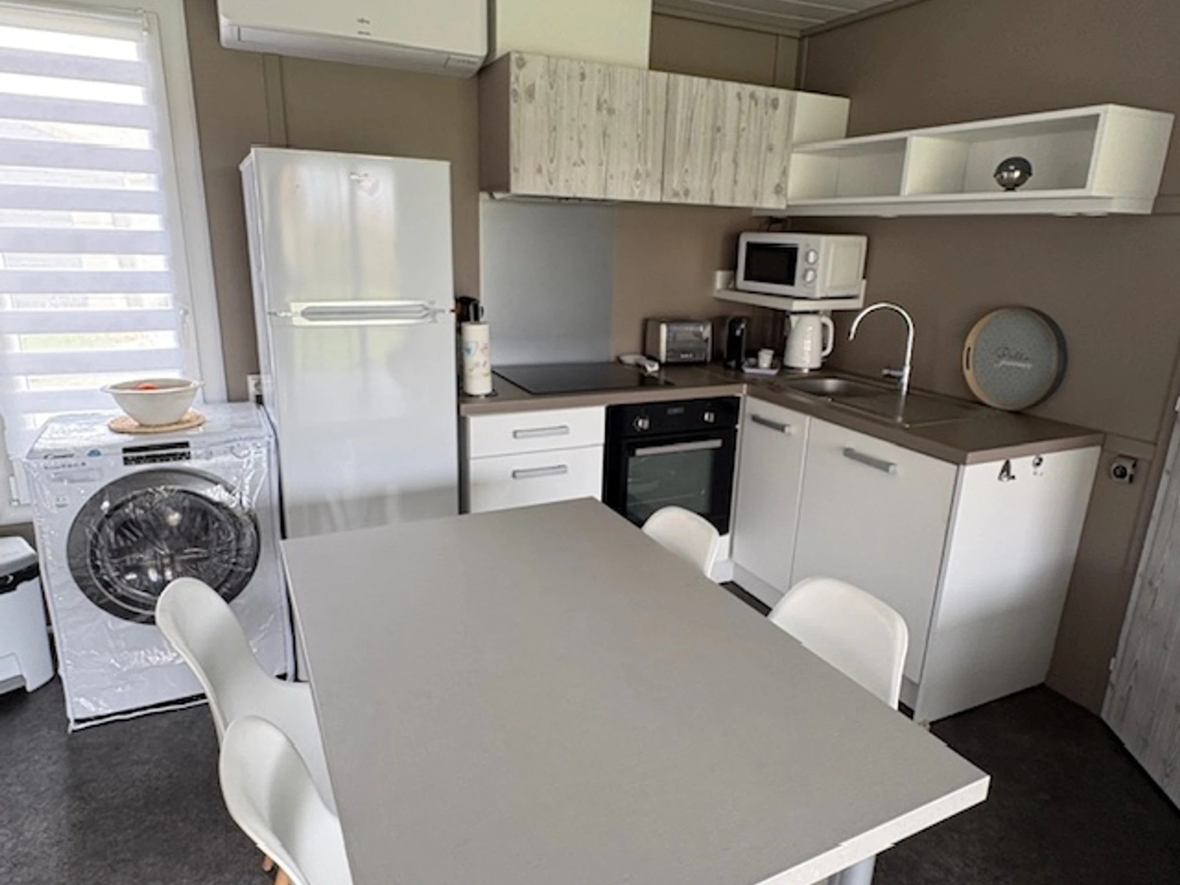 1 Cocina totalmente equipada con lavavajillas, horno, vitrocerámica, frigorífico-congelador, cafetera Nespresso, microondas, hervidor de agua y tostadora.