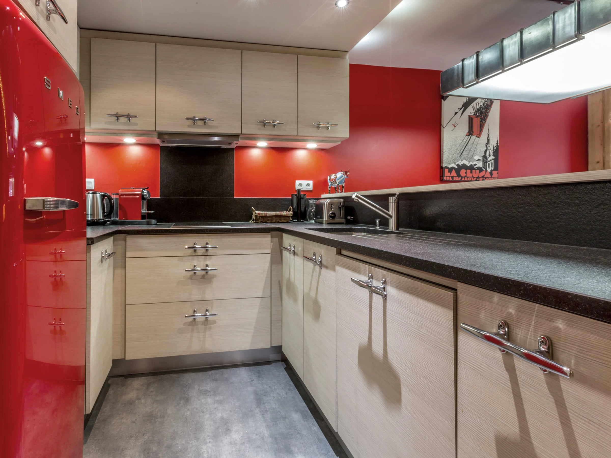 - COCINA abierta: frigorífico (200 L), cocina de INDUCCIÓN, horno/microondas combinado, lavavajillas, cafetera NESPRESSO