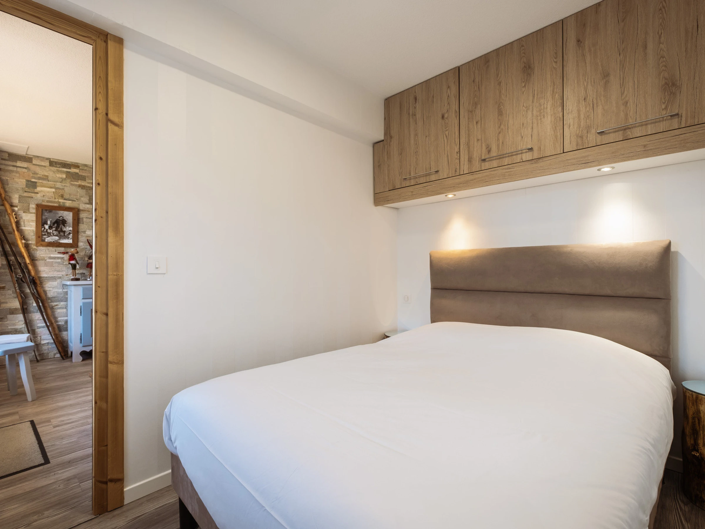 - RINCÓN PARA DORMIR (6,19 m²): 1 cama doble (140), orientación sur Ventana, vistas a chalets, pistas y montañas