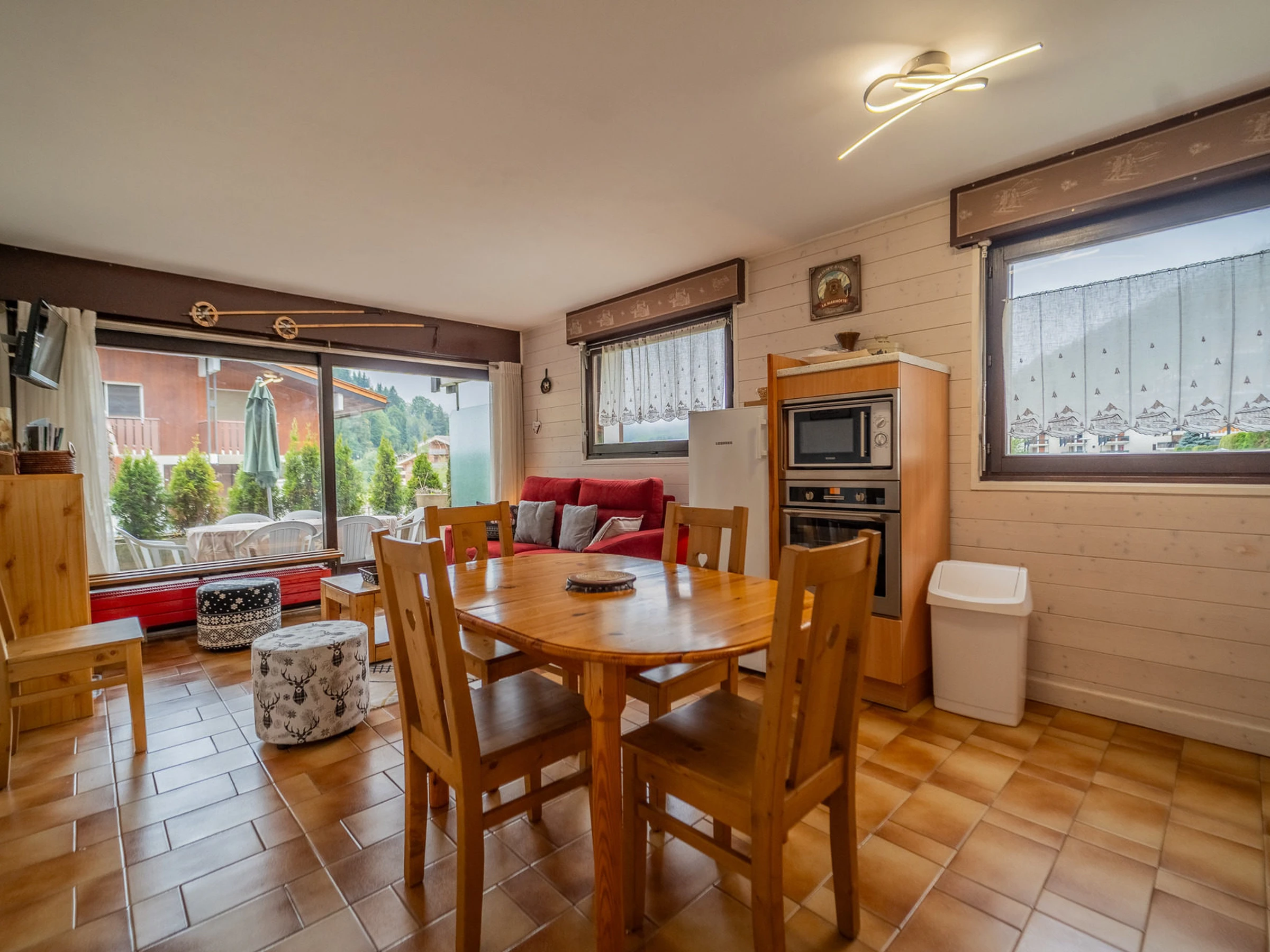 - Sala de estar: sofá cama para 2 personas (140), TV, ventana alta con vista a la residencia Oeste, mirador y puerta ventana al Sur, vista a la montaña y la residencia, Terraza con muebles