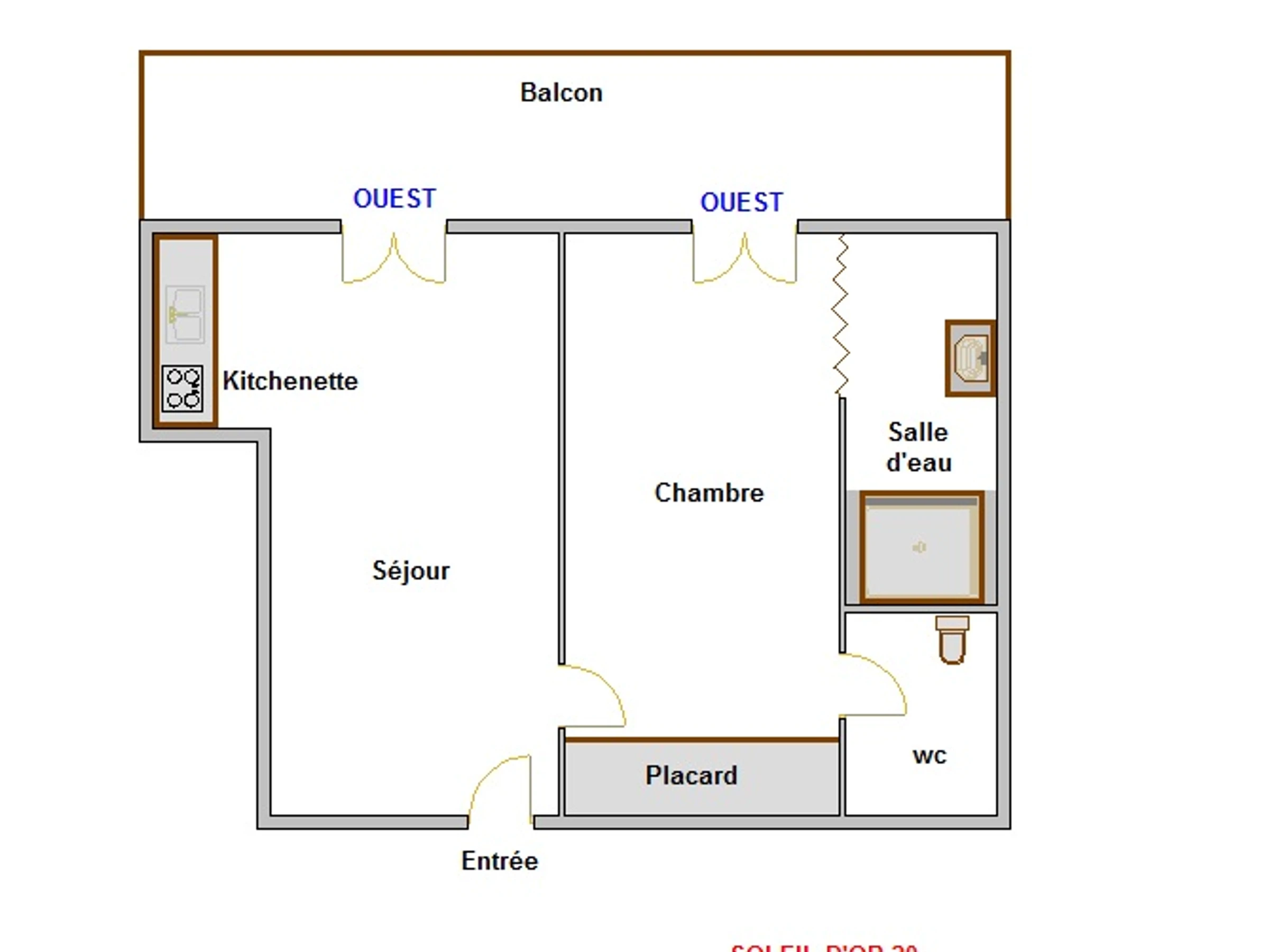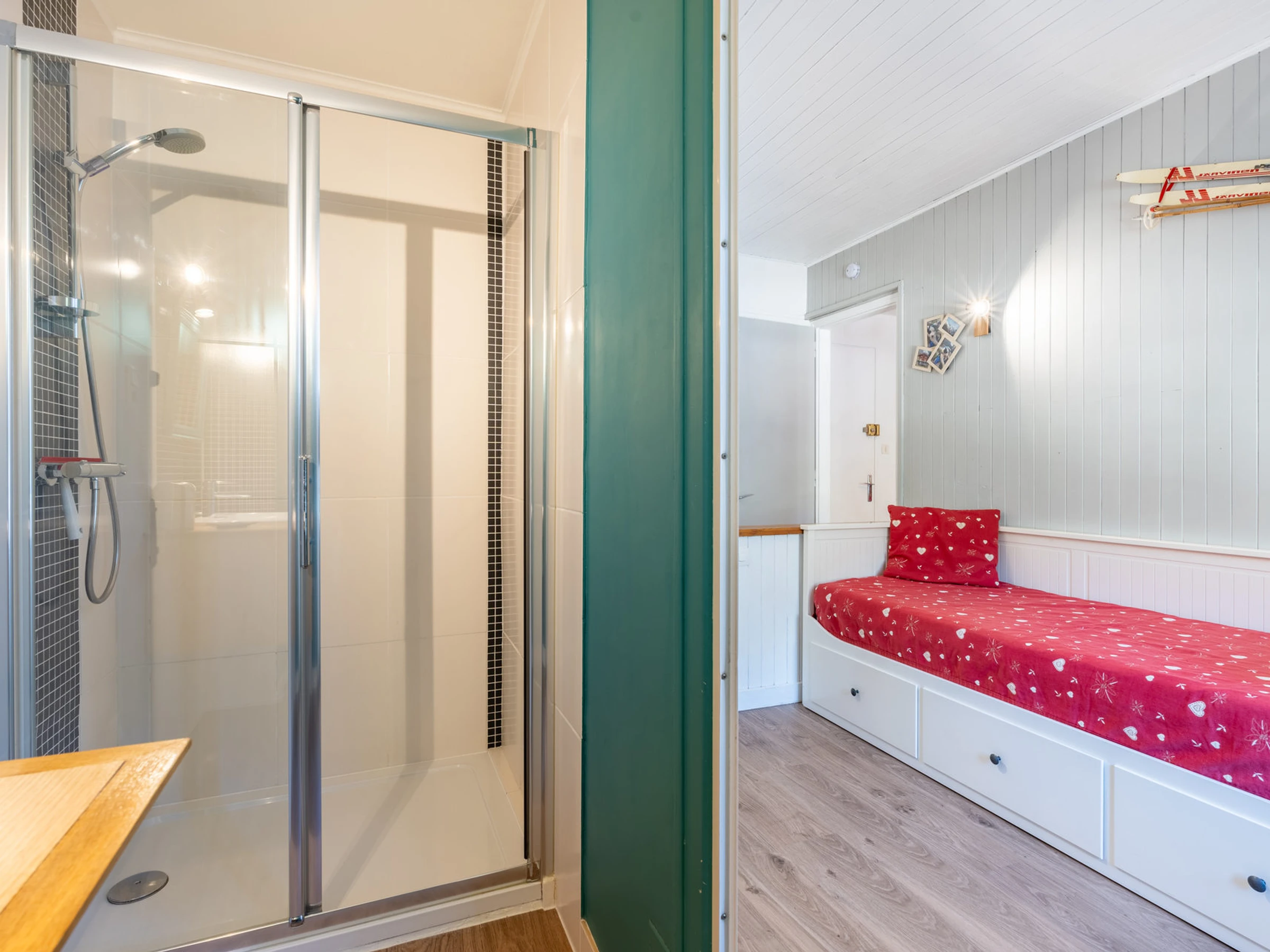 - BAÑO (3,11 m²) separado del dormitorio por un biombo: lavabo, ducha.