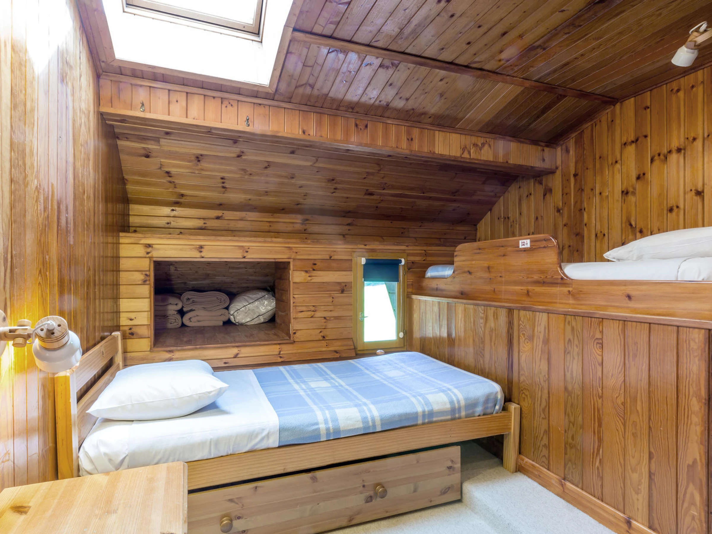 - RINCÓN PARA DORMIR (6,12 m²): 1 CAMA INDIVIDUAL (90), 1 CAMA INDIVIDUAL ELEVADA (90) -> cama superior prohibida para menores de 6 años, pequeña ventana orientada al sur