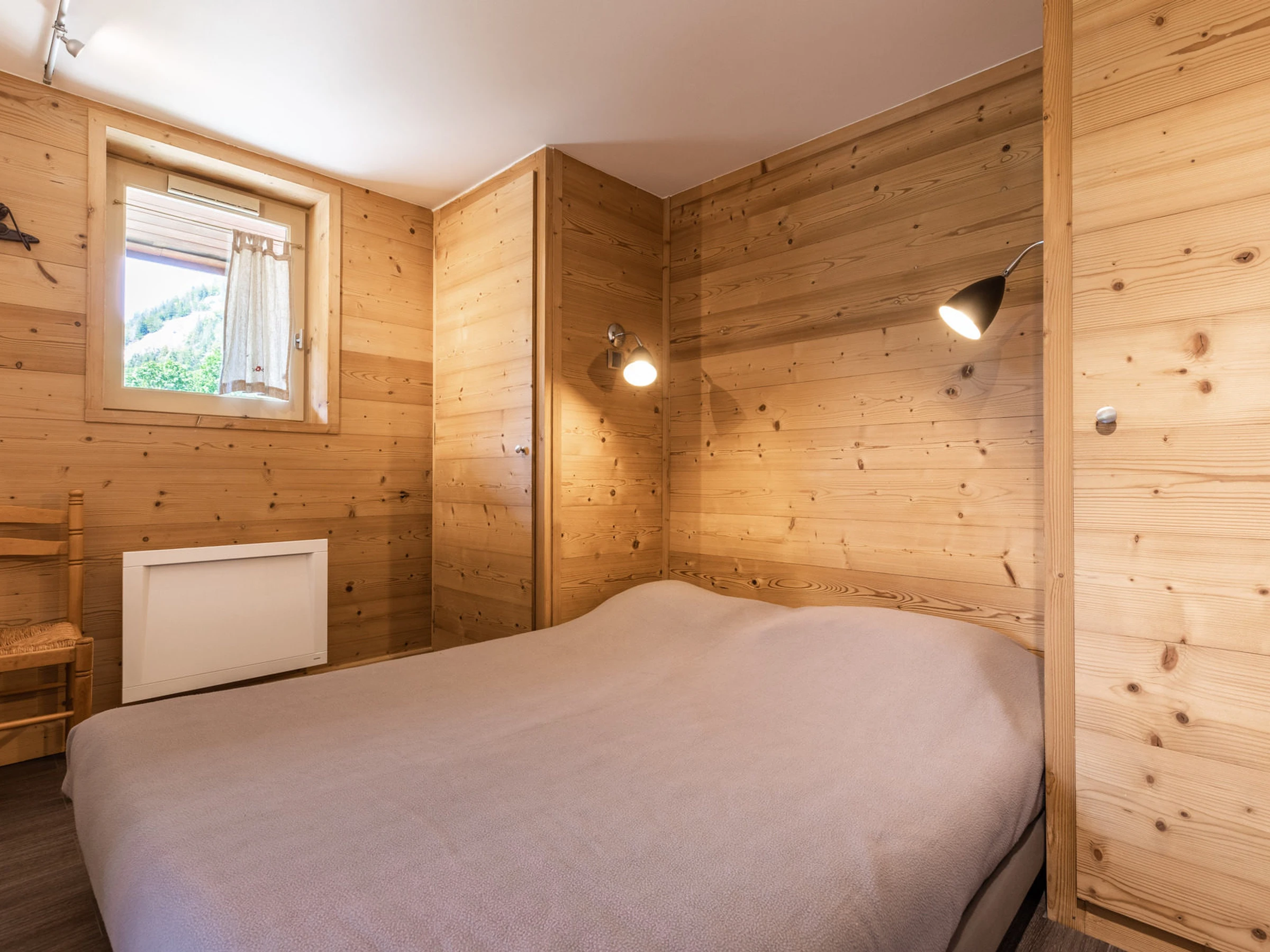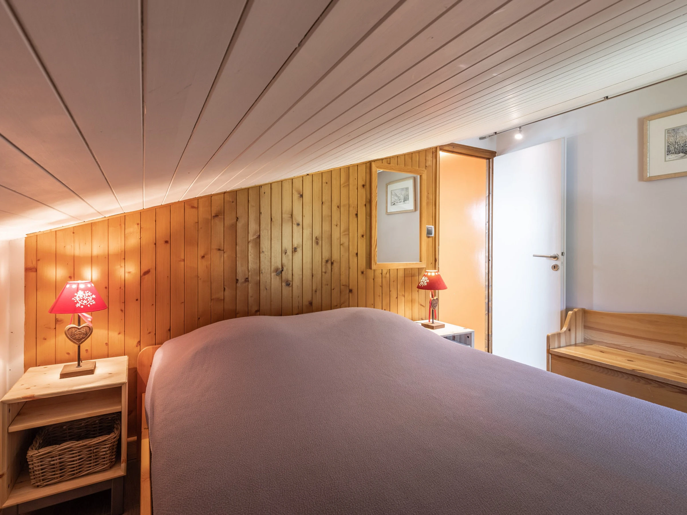 - RINCÓN PARA DORMIR (8,12 m², incluyendo 5,84 m² abuhardillados): 1 CAMA DOBLE (140), pequeña ventana orientada al sur, vista a la montaña