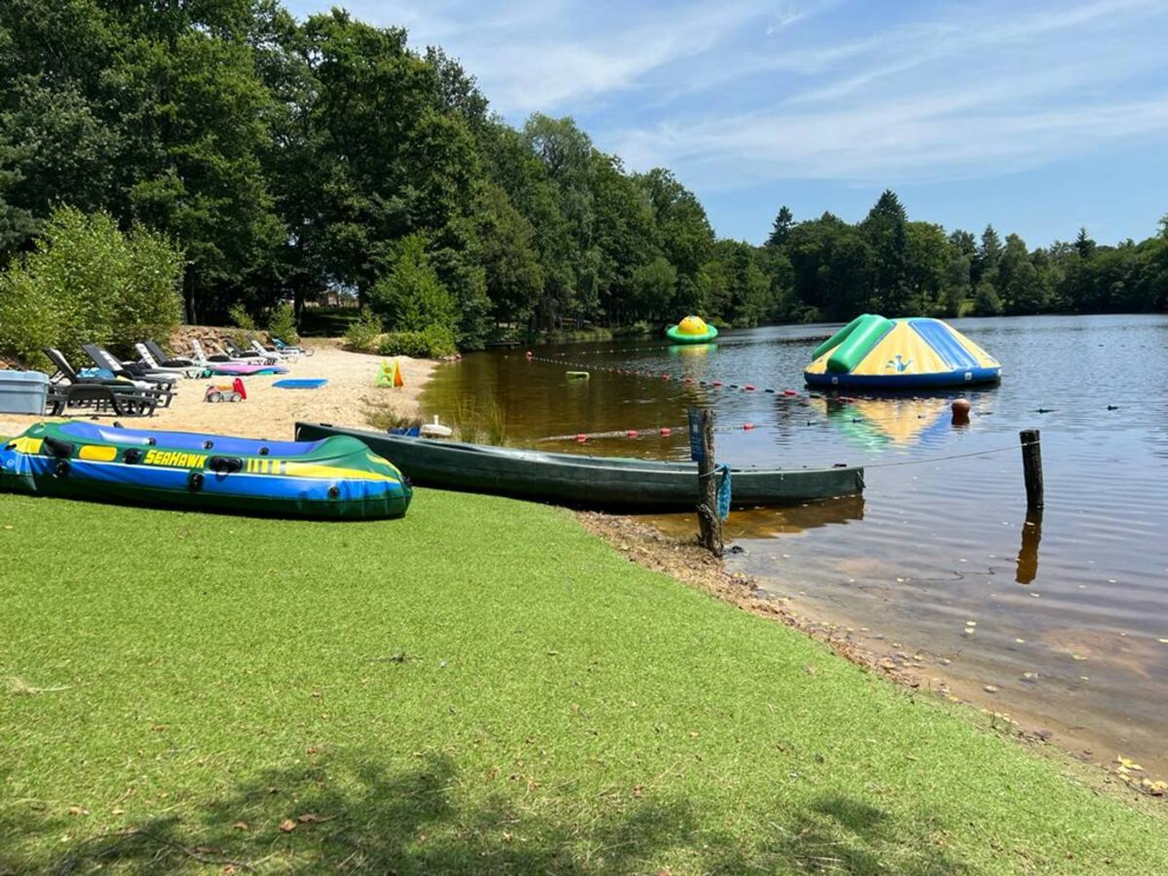 Imagínese relajándose junto al estanque privado, arrullado por el canto de los pájaros y el chapoteo del agua. Para quienes disfrutan de la aventura tranquila, hay canoas y tablas de paddle surf disponibles de forma gratuita para explorar las tranquilas aguas con total libertad. Y para los amantes de la pesca: ¡buenas noticias, se permite pescar en el camping!