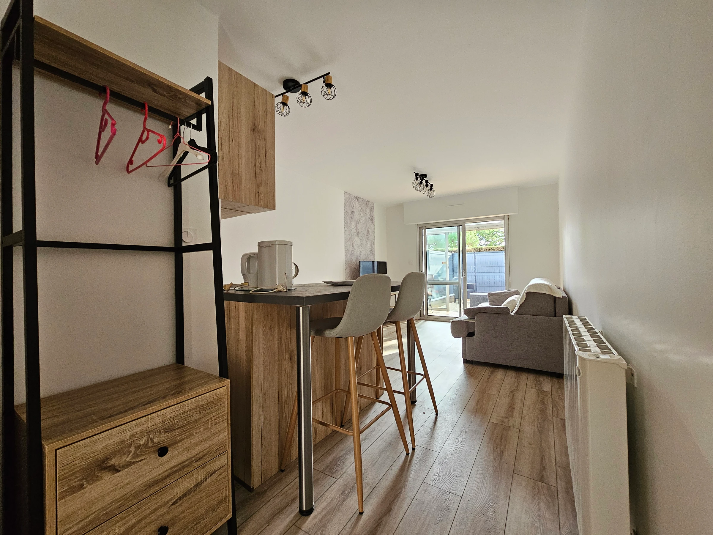 Ubicada en la Residencia Les Chouannes, a 300 metros de la playa y a 800 metros de los comercios, esta casa de campo cuenta con su propio jardín privado. El estudio incluye entrada con armario, baño con lavabo, inodoro y ducha, sala de estar con sofá cama doble y televisor, cocina americana con dos placas eléctricas, nevera pequeña y microondas, terraza, patio con muebles de jardín y aparcamiento privado. (Solo se admiten mascotas de menos de 5 kg). Residencia tranquila, cerca del bosque y de la playa. La limpieza es responsabilidad del inquilino. No se proporciona ropa de cama; puede alquilarla a través de nuestro socio; contáctenos. La calefacción, del 1 de octubre al 31 de mayo, tiene un coste adicional según la lectura del contador. Alquiler de wifi disponible con receptor 5G: 40 €/semana.