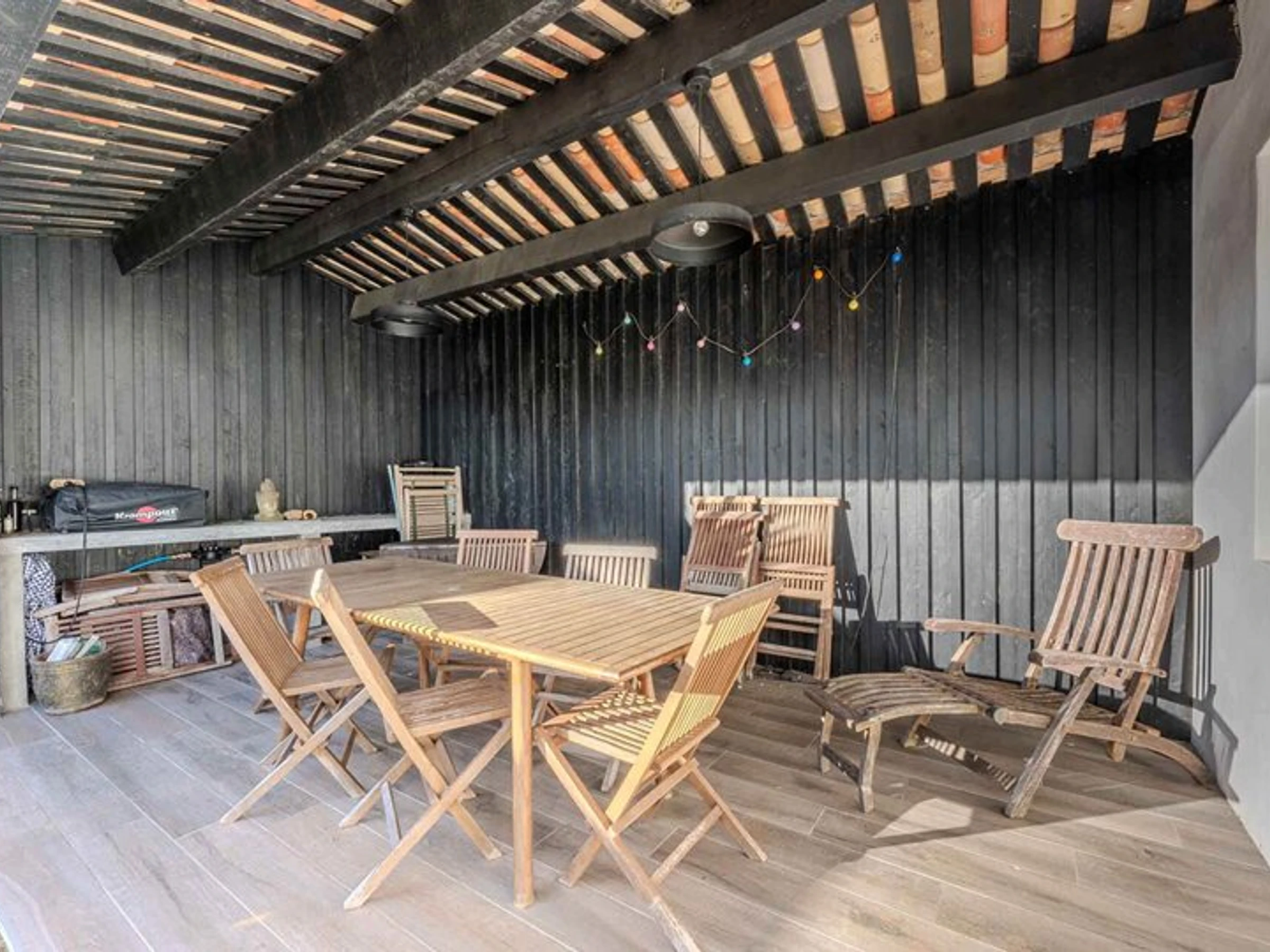 La casa dispone de un patio con un pequeño toldo que permite resguardar las bicicletas o el equipo de playa y surf.