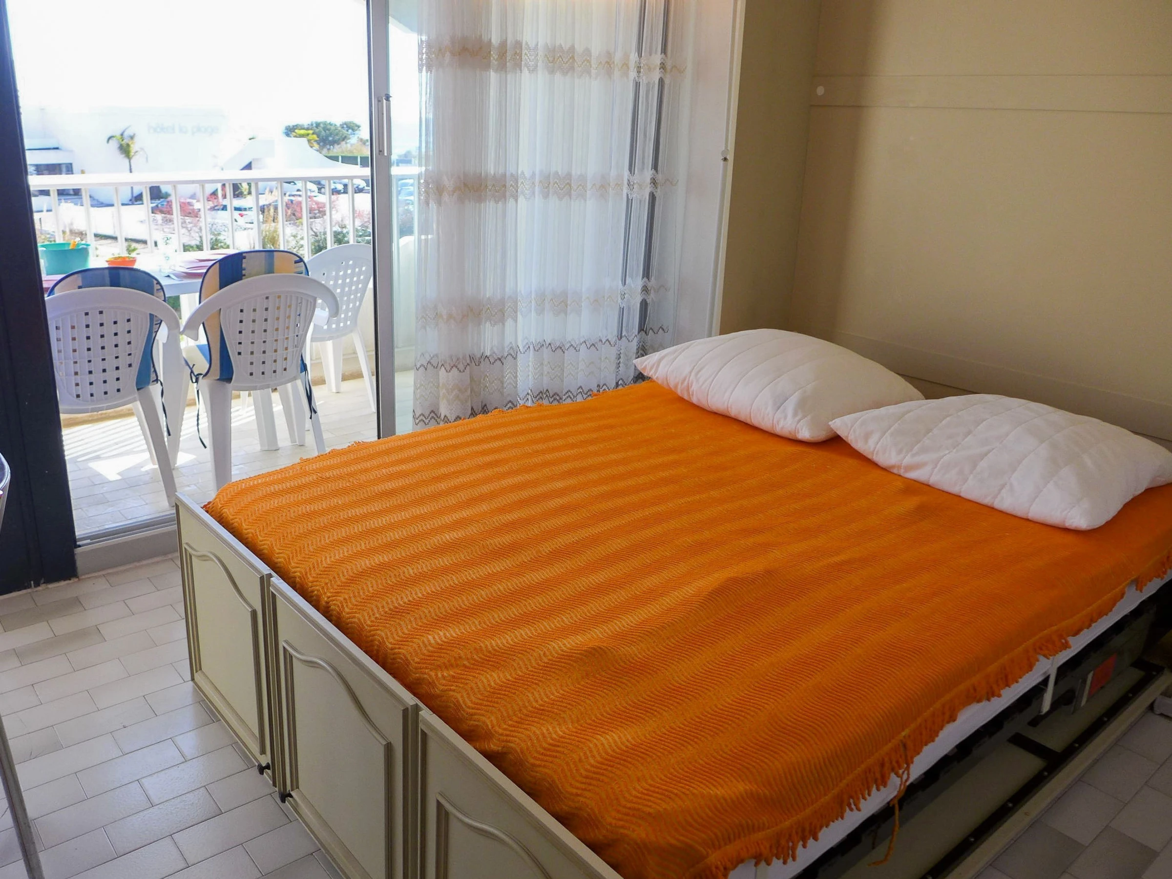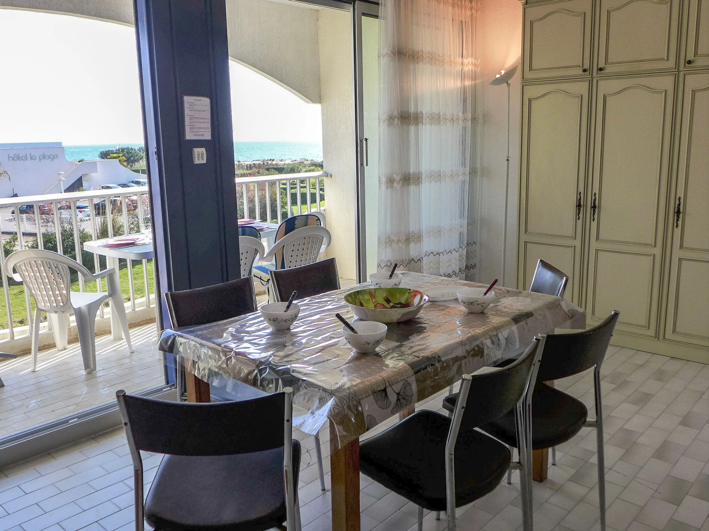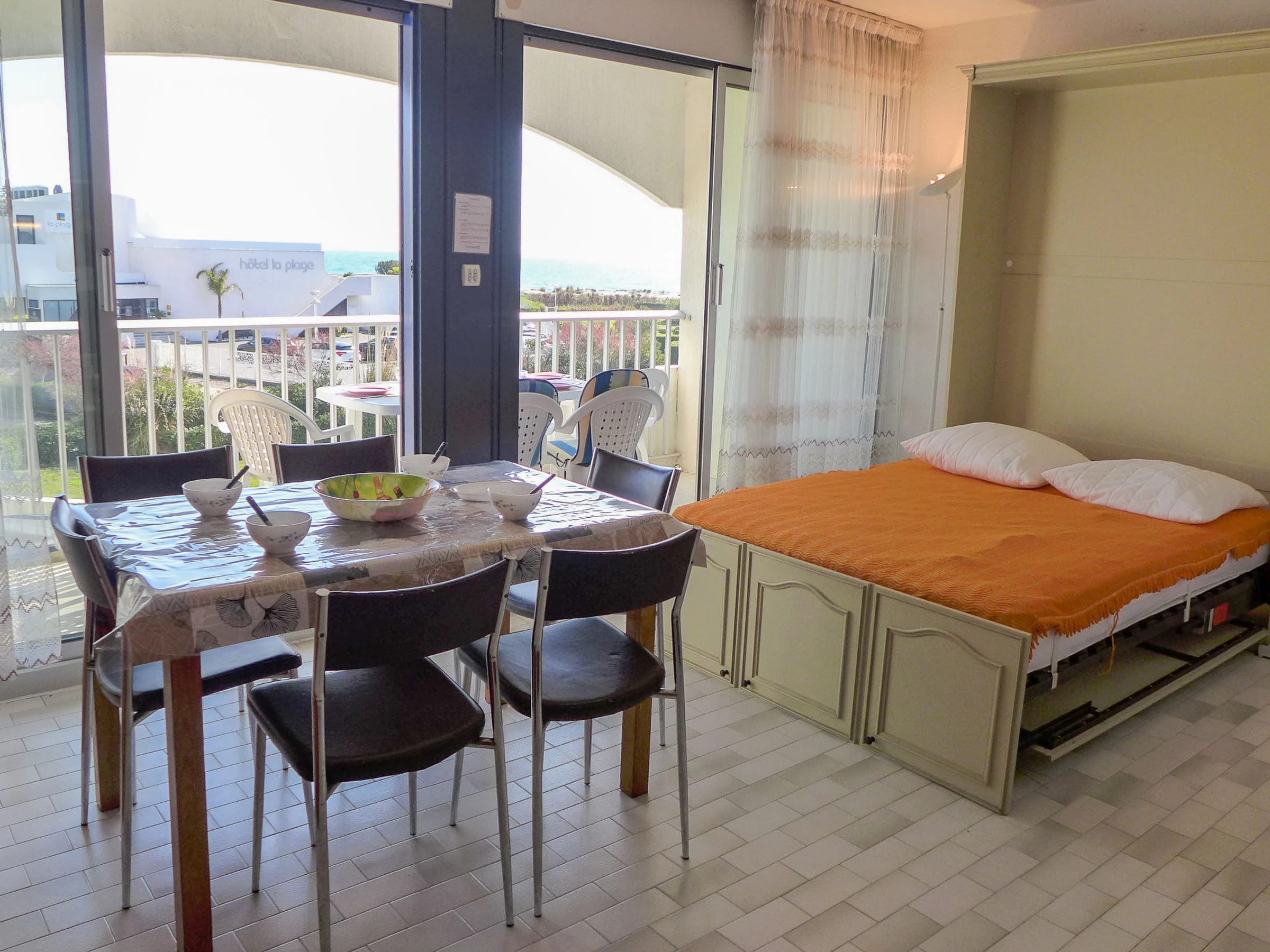 Residencia "Les Terrasses de la Mer", de 4 plantas. En el barrio de Point Zéro, a 2 km del centro, a 50 m del mar, a 30 m de la playa, acceso directo a la playa. En el complejo: ascensor. Posibilidad de aparcamiento 50 m en la calle extra. Tienda 1 km, restaurante 500 m, parada autobús "Ponant" 100 m, playa de arena 20 m, piscina 700 m, piscina cubierta 1 km, piscina termal "Thalasso Spa" 1.2 km. Puerto deportivo 2.5 km, campo de golf (18 hoyos) 1.5 km, escuela de vela 2.5 km, tenis 1 km, centro ecuestre 3.9 km. Atracciones en los alrededores: Le Seaquarium du Grau Du Roi 10 km, Les Remparts d'Aigues Mortes 12 km, Les Saintes Maries de la Mer 40 km. A tener en cuenta: aeropuerto en la proximidad 20 km de la casa. Se pueden reservar alojamientos adicionales.