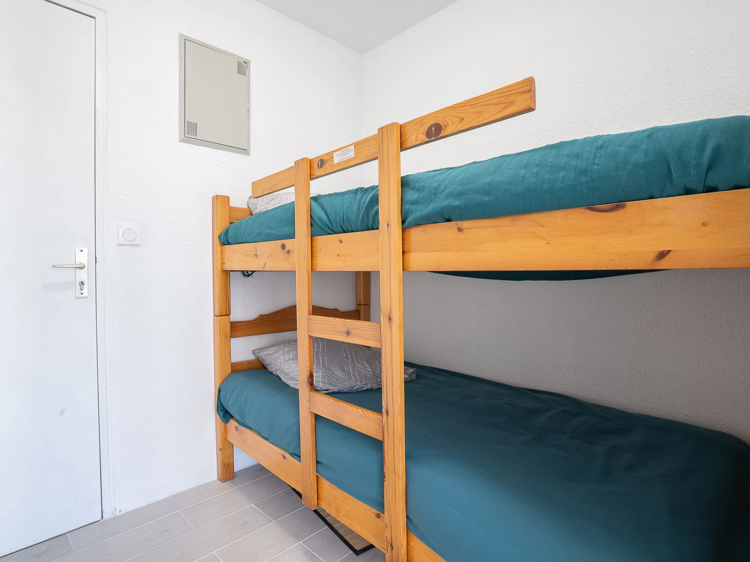 Estudio 23 m2 en el 1° piso. Salón-comedor con 1 sofá-cama doble (140 cm, 190 cm de longitud), TV (pantalla plana), aire acondicionado. Entrada con 1 x 2 literas (90 cm, 190 cm de longitud). Rincón-cocina (2 placas de vitrocerámica, tostadora, hervidor de agua eléctrico, cafetera eléctrica, microondas/grill). Baño, WC separado. Calefacción eléctrica. Terraza 8 m2, cubierta, orientación sur. Muebles de terraza. Vista a la piscina. El alojamiento dispone de: lavadora. Internet (Wifi, gratis). Garaje n. 178, altura 185 cm, ancho 225 cm. A tener en cuenta: aparcamiento para coches pequeños. Detector de humo.