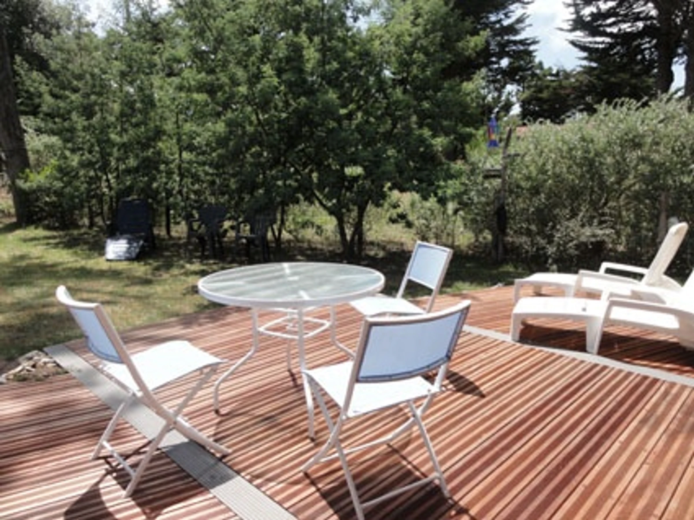 Casa unifamiliar en un gran terreno cerrado y sombreado frente al bosque de Eloux - comodidad - aproximadamente 85 m² - 5 personas incluyendo sala de estar con zona de estar + 1 cama de 90 cm - área de cocina amueblada y equipada, un dormitorio con 1 cama de 140 cm, un dormitorio con 1 cama de 140 cm con lavabo - Los dormitorios están equipados con mosquiteros, cuarto de ducha, WC. Lavadora con ojo de buey en el sótano, horno de pirólisis, mini-horno, microondas, lavavajillas, TV de pantalla plana grande, cuna y bañera - Muebles de jardín, sombrilla, 2 tumbonas, 1 tumbona - Uso del inserto prohibido - Aparcamiento en la propiedad - Solo se permite un perro pequeño - Cargo de limpieza disponible: 87 €.