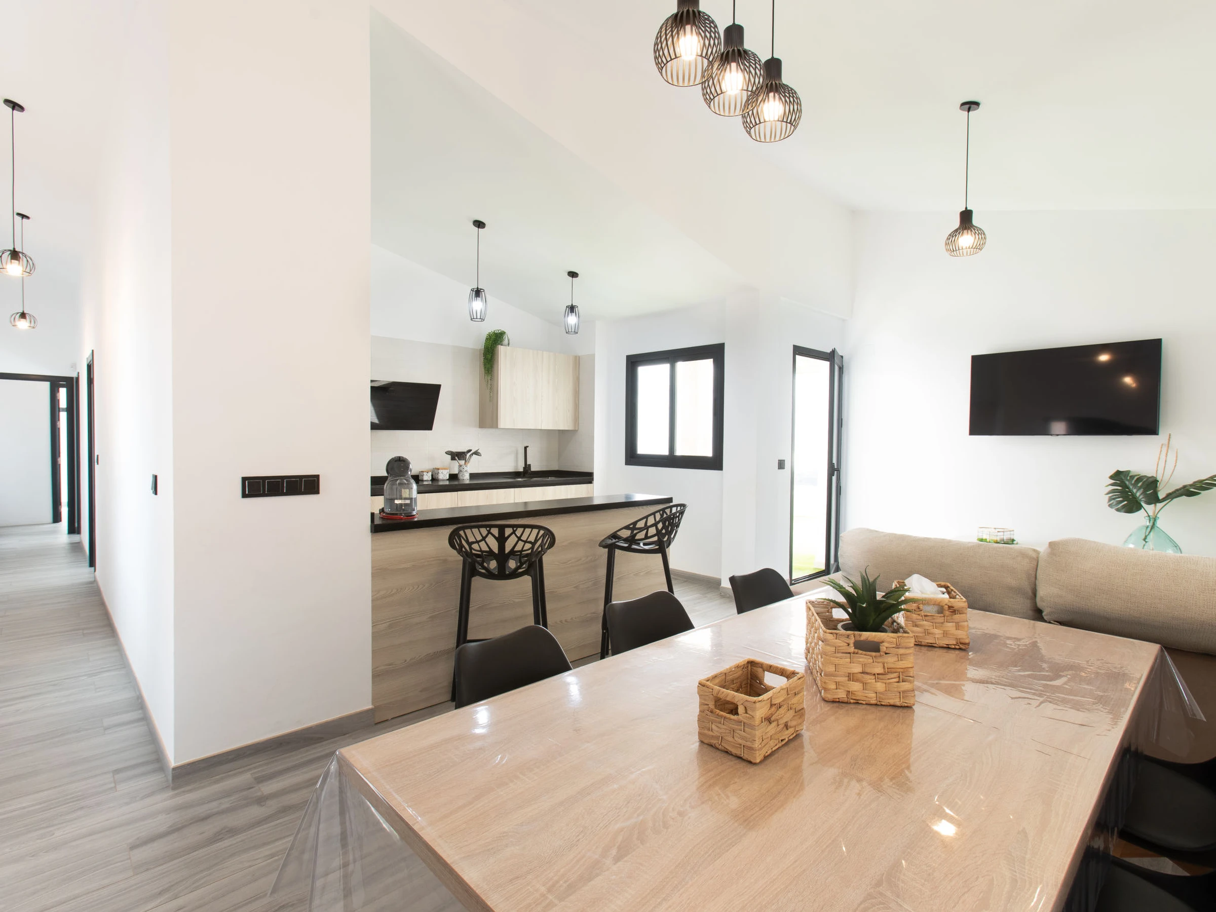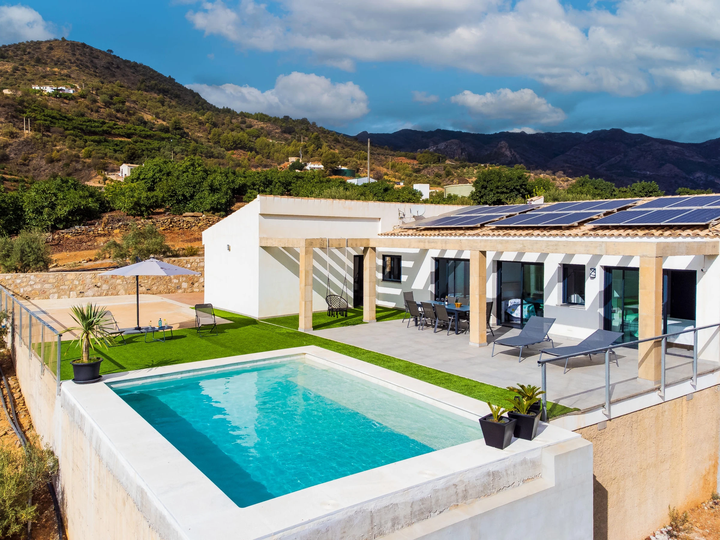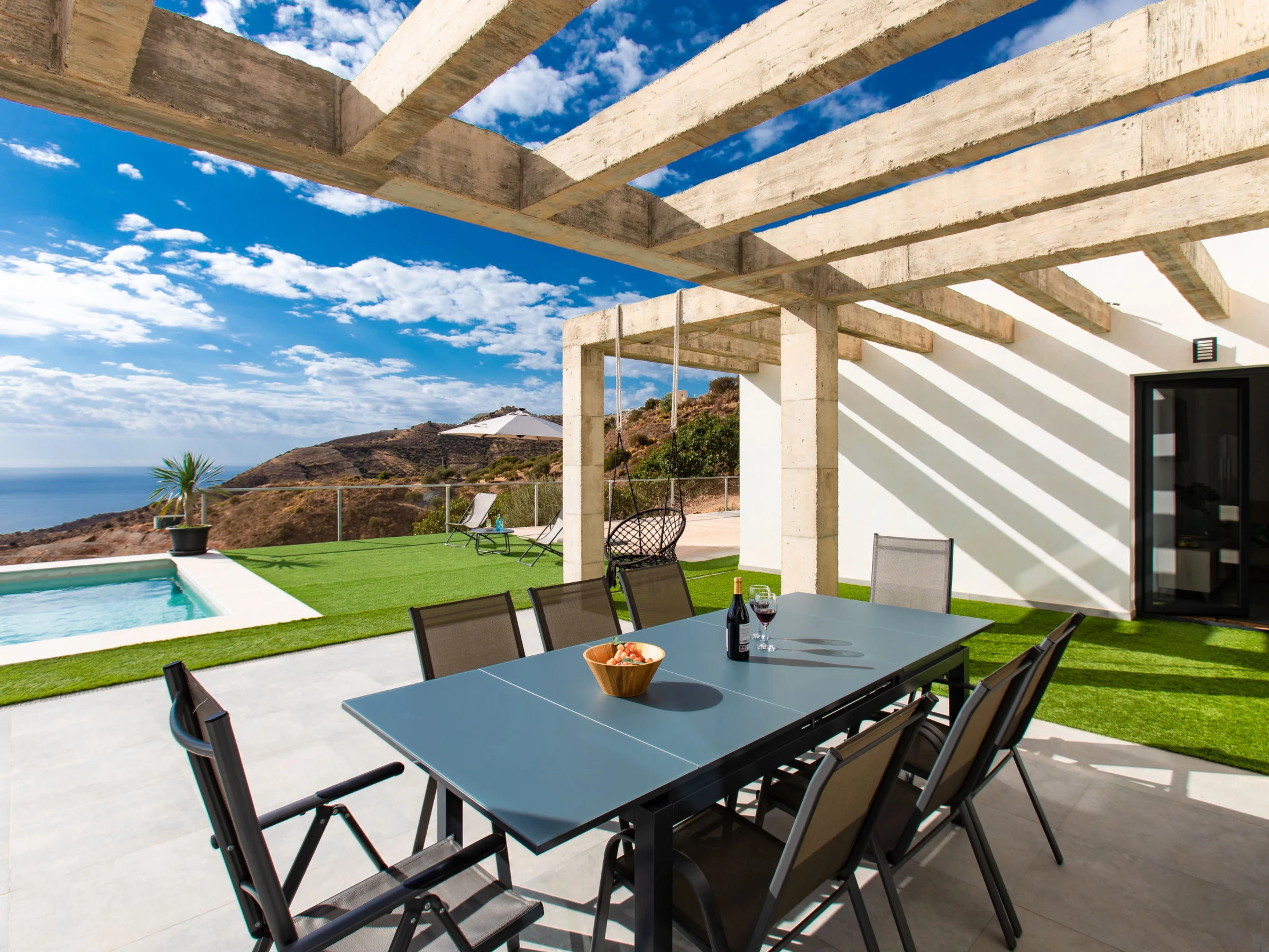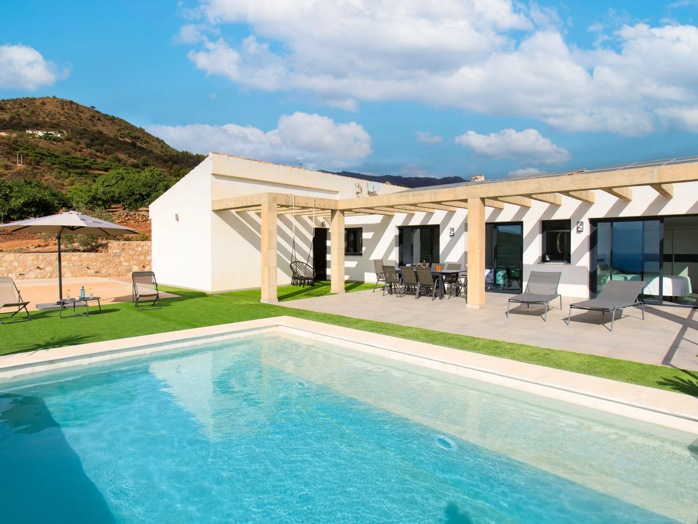 "El Limonar", casa rural 3 estancias 114 m2, orientación sur. Espacioso y luminoso, con mobiliario funcional: salón-comedor con TV digital, canales internacionales, aire acondicionado y bomba de calor, caliente. Salida a la terraza, a la piscina. 1 dorm. con 1 cama de matrimonio (150 cm, 190 cm de longitud), persianas eléctricas. 1 dorm. con 1 cama de matrimonio (150 cm, 190 cm de longitud), persianas eléctricas. 1 dorm. con 1 cama de matrimonio (150 cm, 190 cm de longitud), persianas eléctricas. Cocina abierta (horno, lavavajillas, 3 placas de vitrocerámica, tostadora, hervidor de agua eléctrico, microondas, congelador, cafetera eléctrica). Ducha/WC. Terraza grande 350 m2. Barbacoa, tumbonas (6). Vista panorámica al mar y a las montañas. El alojamiento dispone de: lavadora, plancha, cuna hasta 3 años, secador de pelo. Internet (Wifi, gratis). Garaje en el mismo terreno. Maravillosa casa de nueva construcción situada en un entorno natural, a tan solo 20 minutos en coche del precioso pueblo de la Herradura. Moderna y cómoda en el interior. Con unos exteriores rodeados por amplias terrazas con fantásticas vistas al mar y las montañas. Hay un carril de unos 350 metros de tierra para acceder a la vivienda. [hidden]