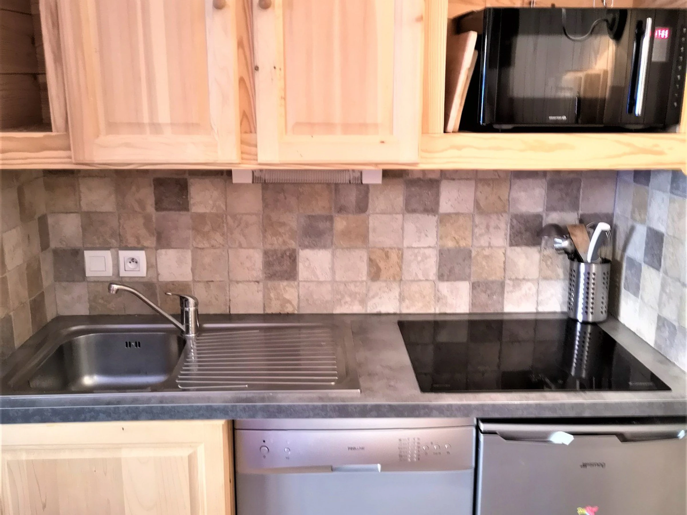 Cocina a monedas equipada con placas vitro-céramiques, réfrigérateur-congelateur, combi four micro-ondes, lave-vaisselle, cafetière à filtre, nécessaire de vaisselle, aspirateur.