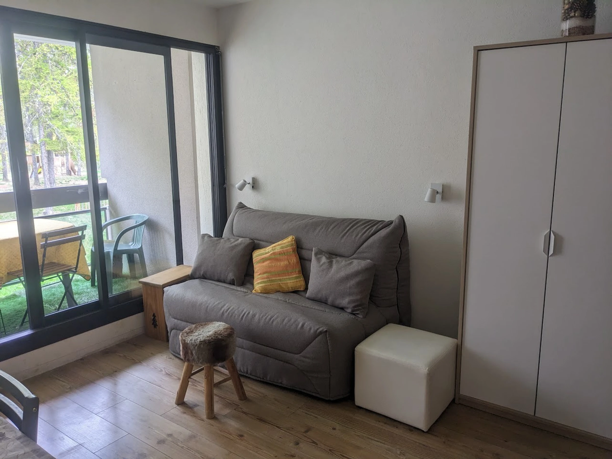Pièce à vivre avec télévision, canapé-lit, monedas repas.