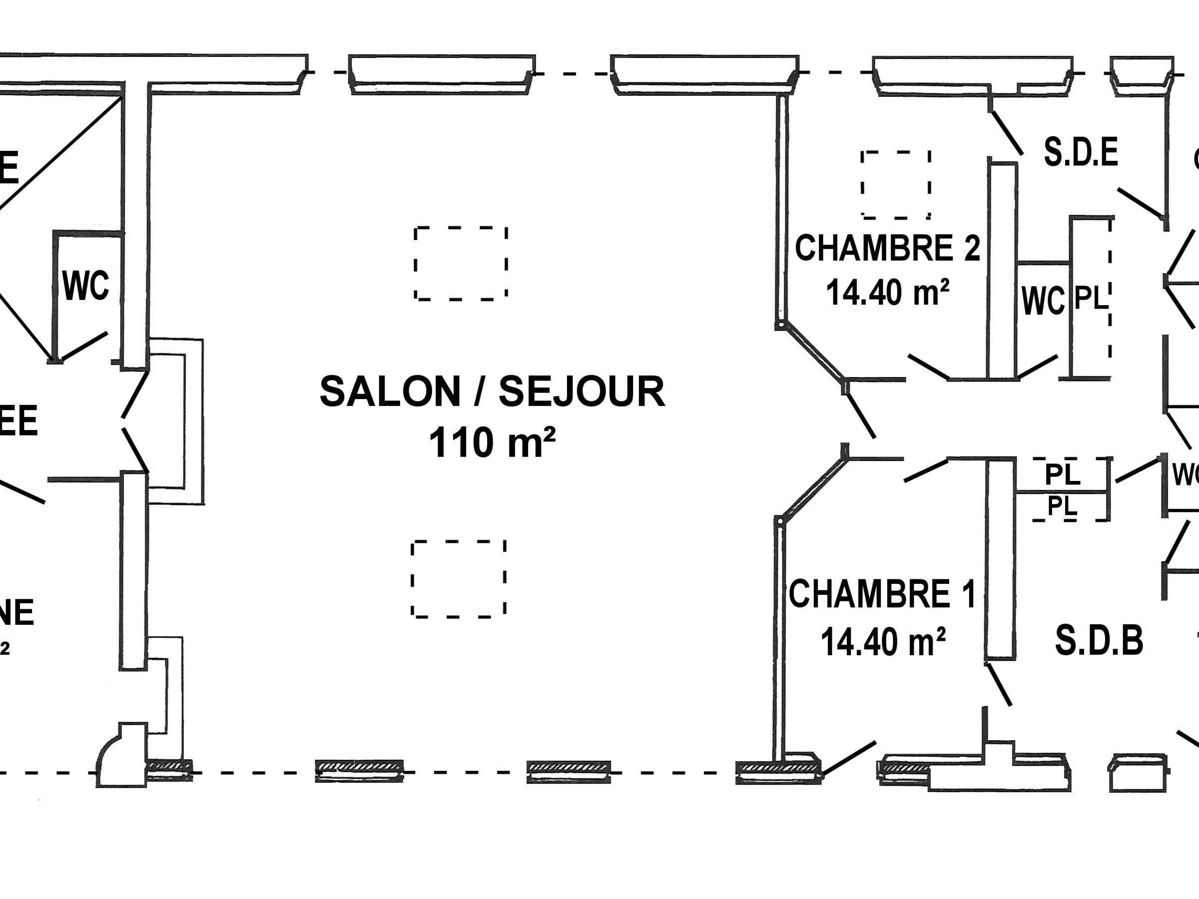 Planta única: cocina independiente equipada, amplio salón-comedor accesible por 2 escalones, 4 dormitorios (1: cama de 160x200 con baño contiguo, 2: cama de 160x200 con baño contiguo, 3: cama de 140x190, 4: cama de 90x190) y 3 aseos separados. A los 2 baños/duchas también se puede acceder desde el pasillo.