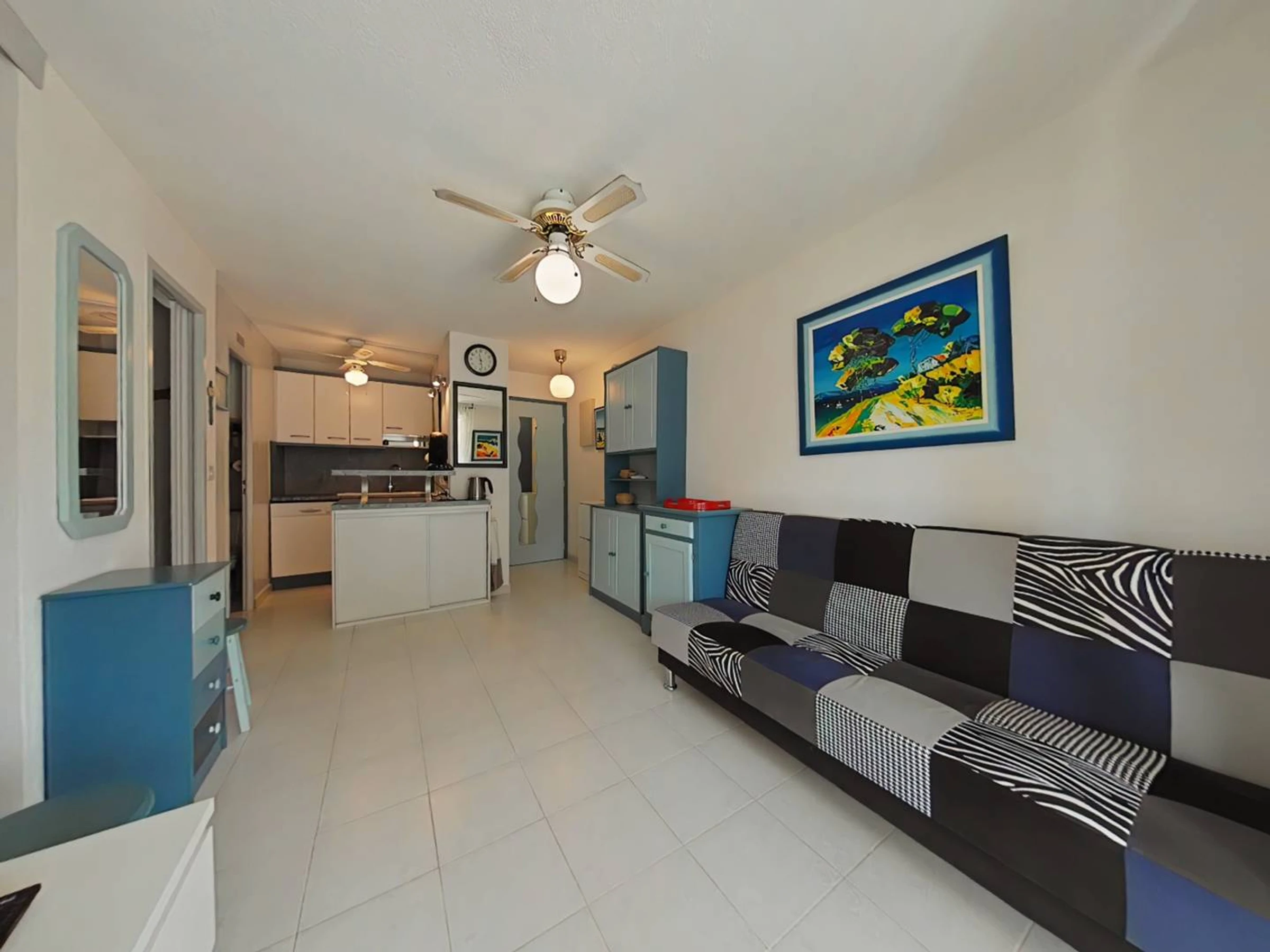 El apartamento está en perfecto estado, todo el confort con exposición ESTE y se compone de una sala de estar con sofá, TV, una cocina abierta y equipada, un dormitorio con una cama de 140x190, una zona de cabina con una litera con dos camas de 90x190cm, un baño con ducha + wc.