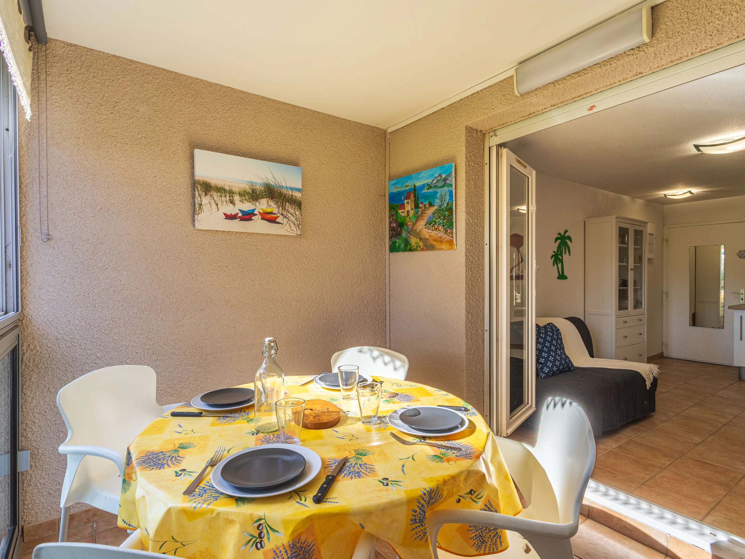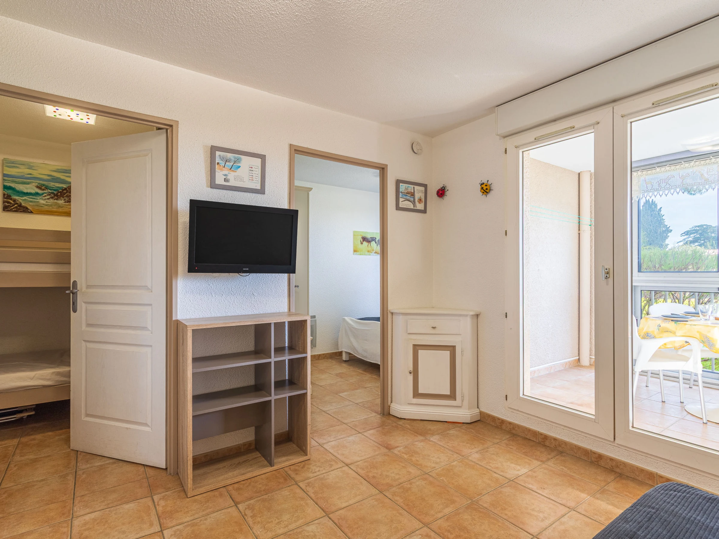 Apartamento de 2 estancias 34 m2, en la planta baja. Espacioso y luminoso, con mobiliario confortable y bonito: salón-comedor con 1 sofá-cama doble (140 cm, 190 cm de longitud), mesa de comedor y TV (pantalla plana), ventilador. Salida al balcón cubierto. 1 dorm. con 1 cama de matrimonio (140 cm, 190 cm de longitud), ventilador. Cabina con 1 x 2 literas (90 cm, 190 cm de longitud). Cocina abierta (horno, lavavajillas, 2 placas de vitrocerámica, tostadora, hervidor de agua eléctrico, microondas, congelador, cafetera eléctrica). Ducha/WC. Calefacción eléctrica. Orientación este. Porche. Vista al mar. El alojamiento dispone de: lavadora. Internet (Wifi, extra). A tener en cuenta: TV solamente FR. Detector de humo. Oferta de un particular según el art. 155, IV del CGI. [hidden]