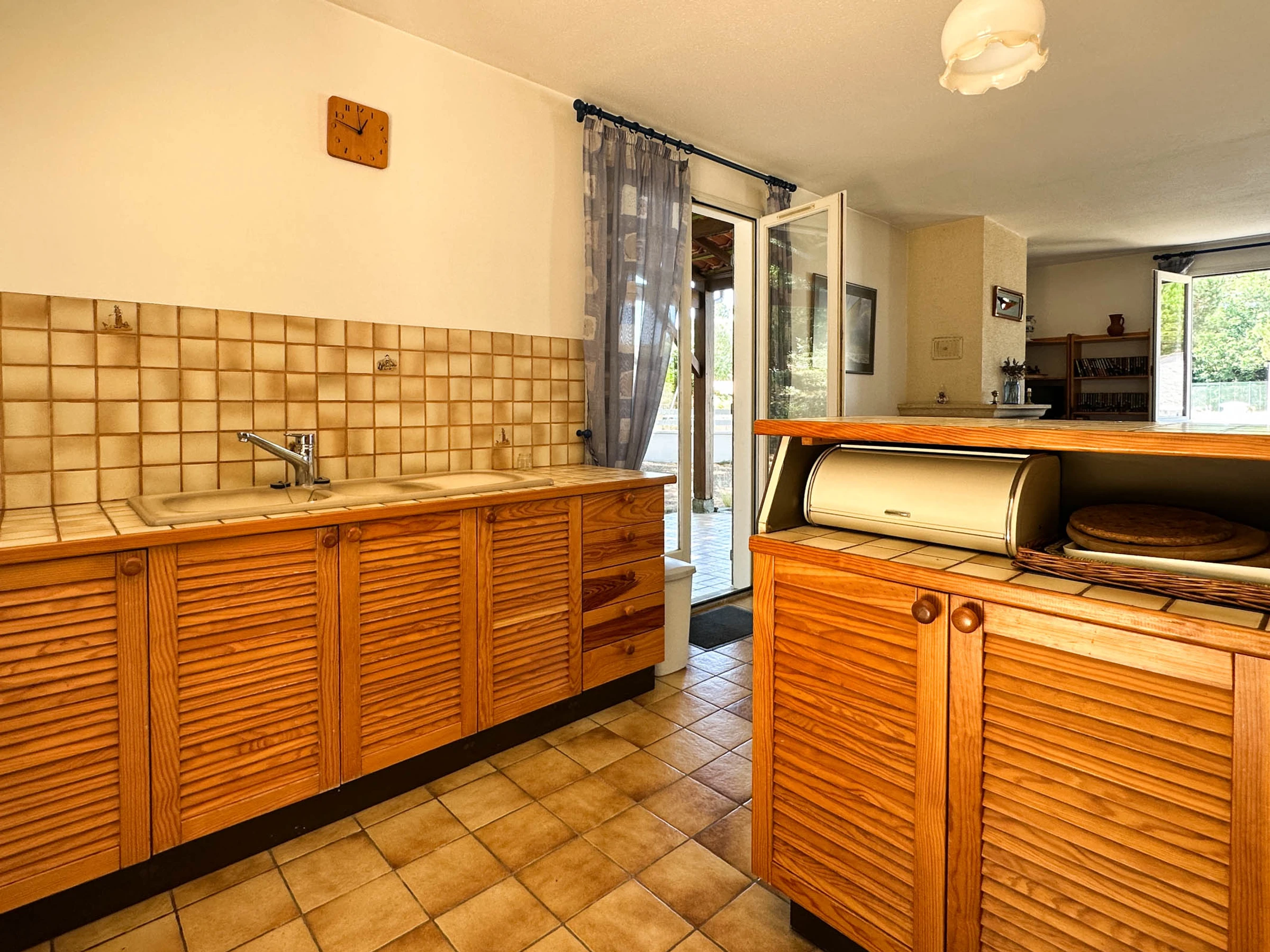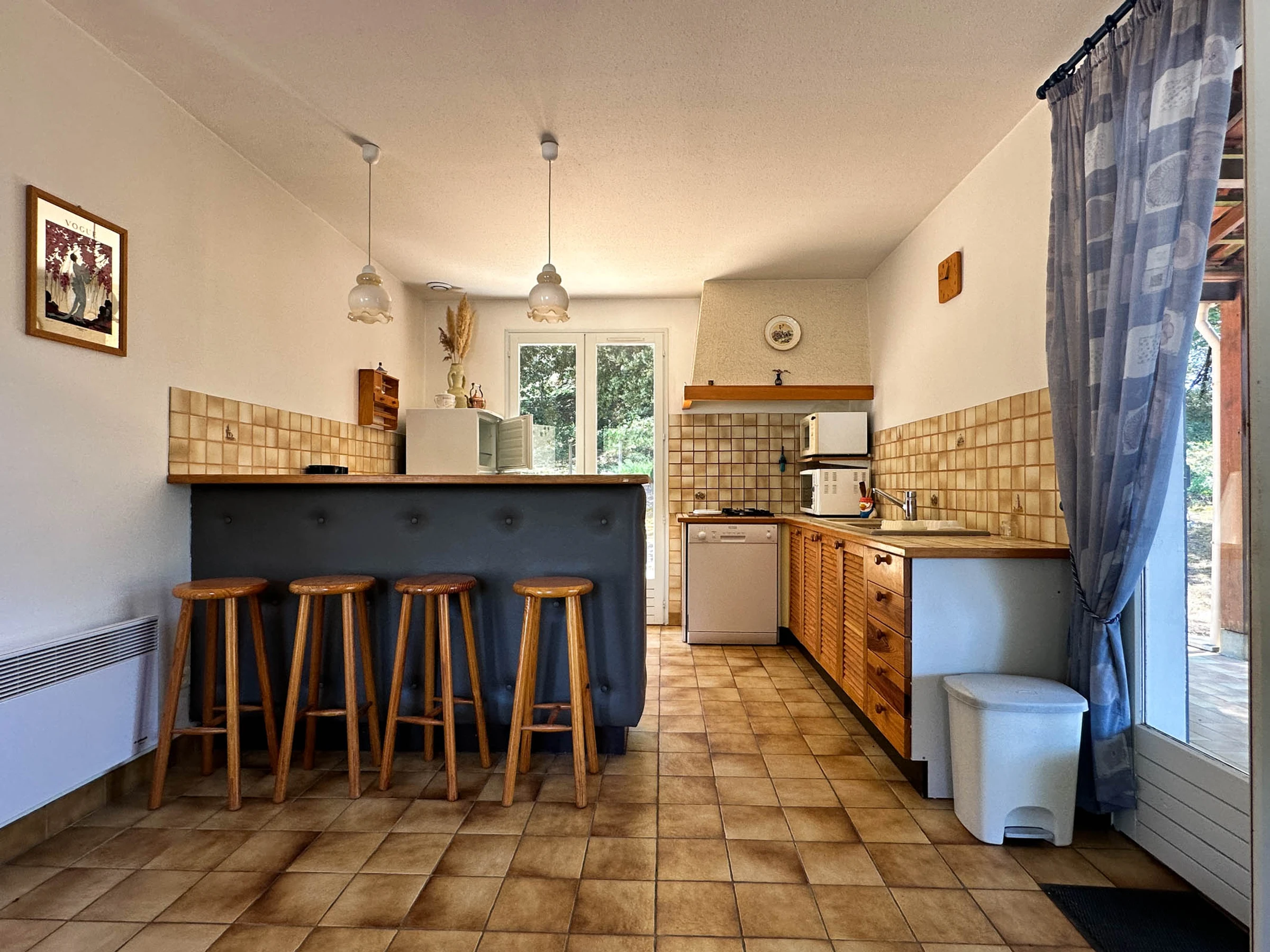 Salón y comedor con sofá y TV, que dan a una terraza cubierta orientada al sur. - Cocina americana equipada, vitrocerámica y gas, horno, microondas, frigorífico-congelador, lavavajillas, que da a una terraza orientada al este.
