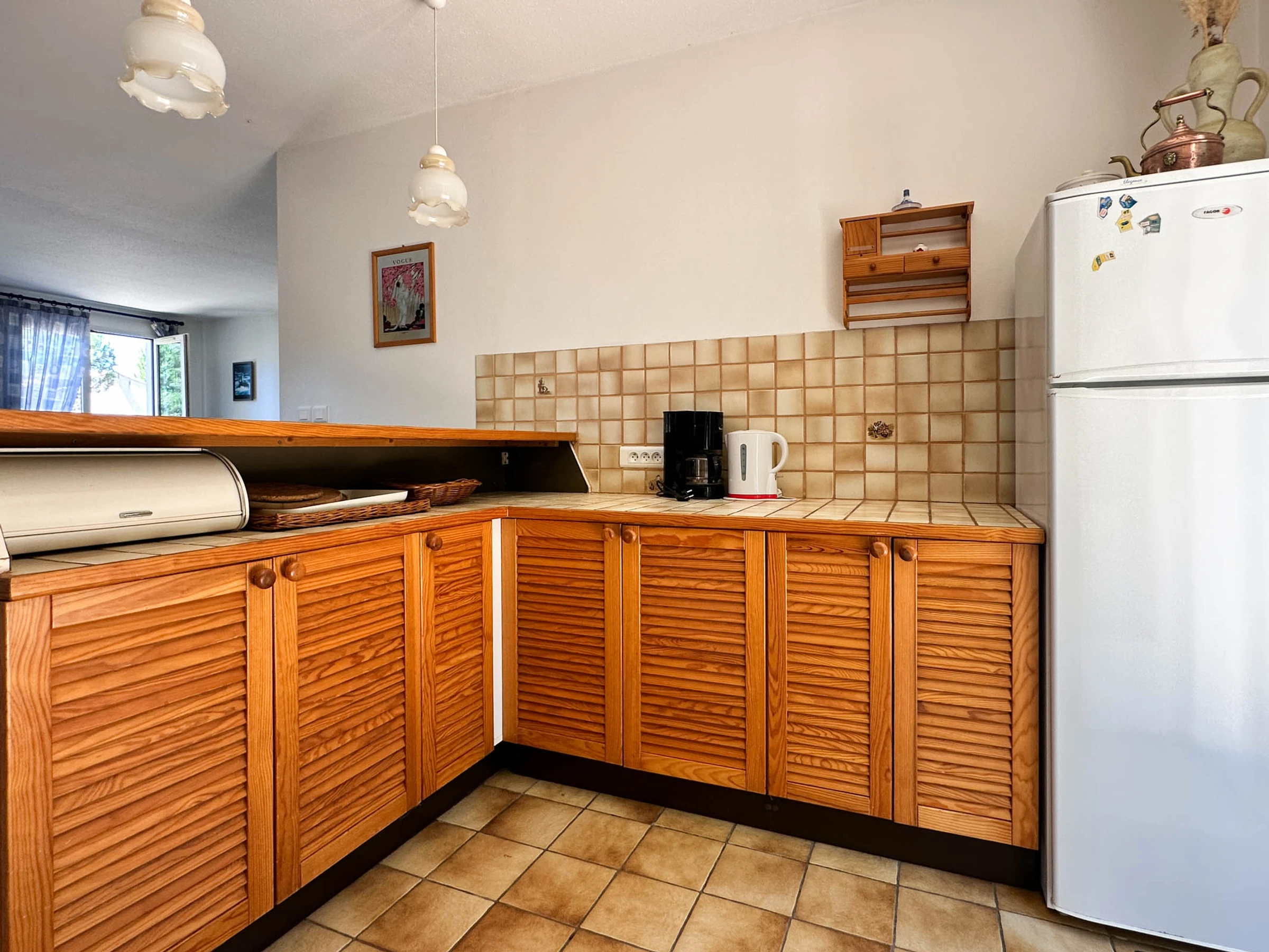 Barrio de Les Oiseaux, a unos 1000 m del mar y a 750 m de los comercios - Villa de 4 habitaciones construida en un terreno cerrado de 680 m² - Con capacidad para 7 personas - Superficie habitable = 80 m² incluyendo: