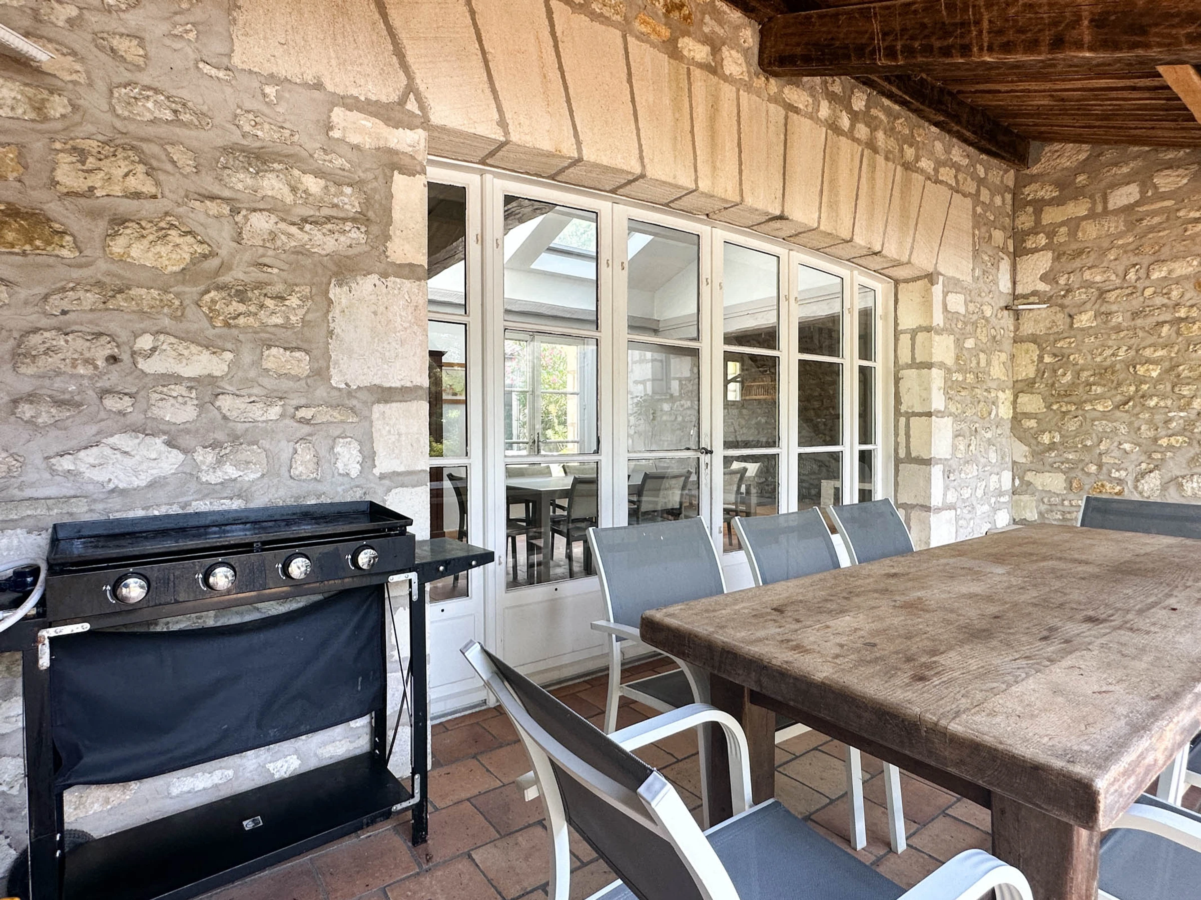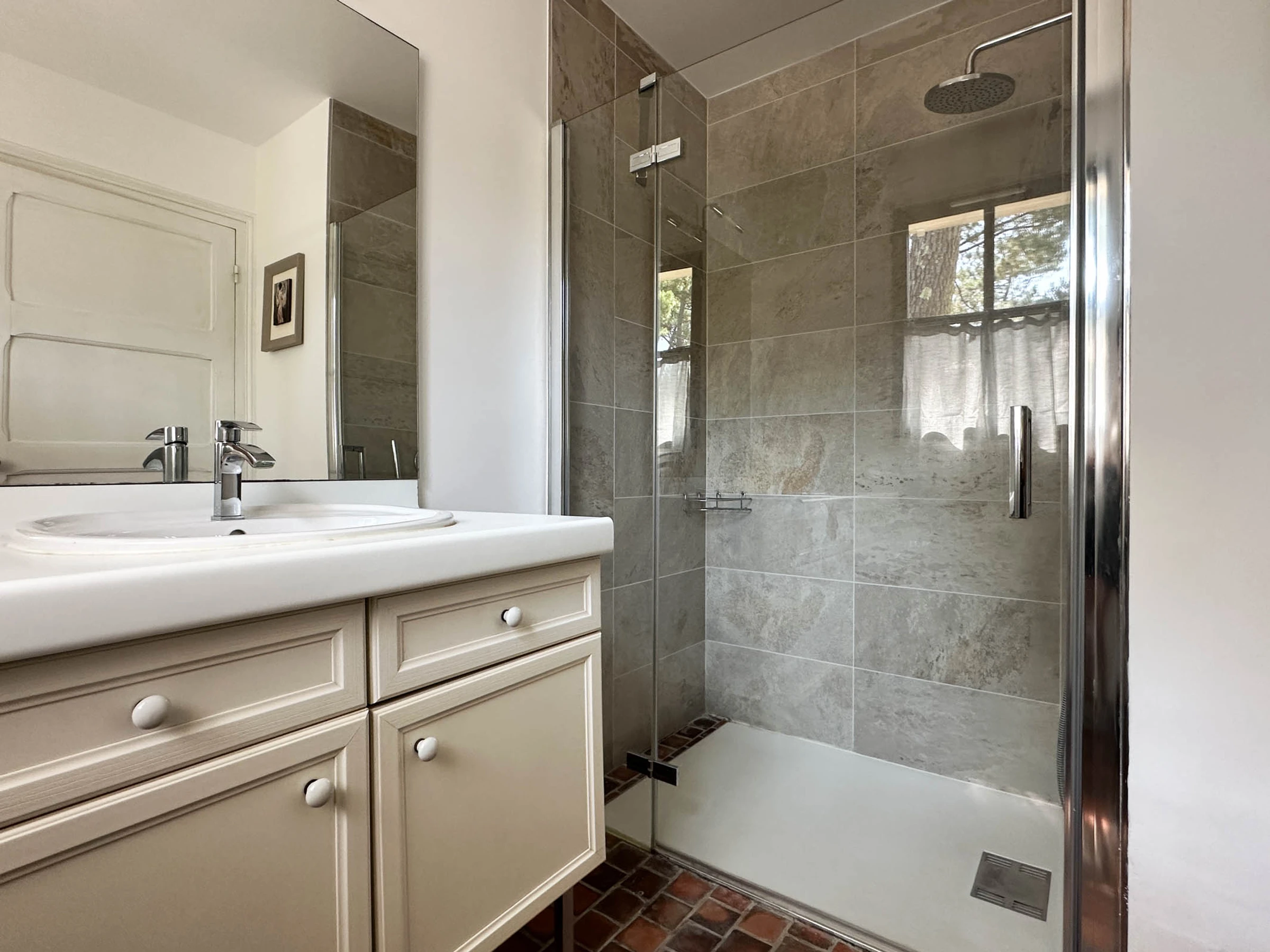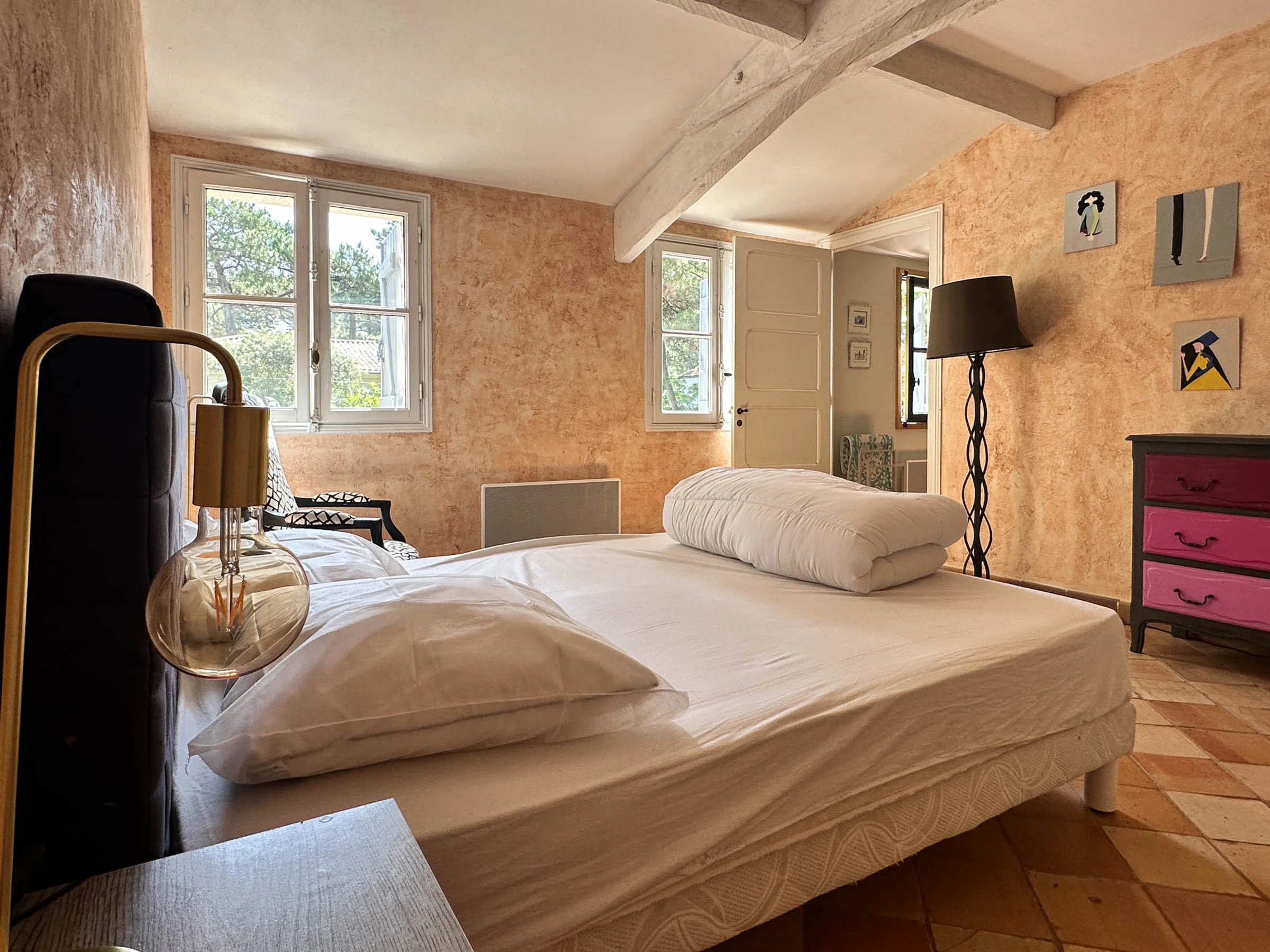 - La casa principal tiene capacidad para 4 personas con en la planta baja: una entrada con aseo de invitados - Sala de estar de 57m² compuesta por una cocina amueblada y equipada (Horno, placa de inducción, frigorífico, cafetera de filtro + Dolce Gusto, hervidor, tostadora) abierta al salón con un comedor y salón con sofás, pantalla (posibilidad de conectar una computadora) SIN SEÑAL DE TV - SIN ACCESO A INTERNET dando acceso por un lado al íntimo y florido patio de aproximadamente 70m², y por el otro lado acceso a la terraza cubierta con barbacoa y plancha de gas con vistas a la piscina y al jardín orientado al sur.