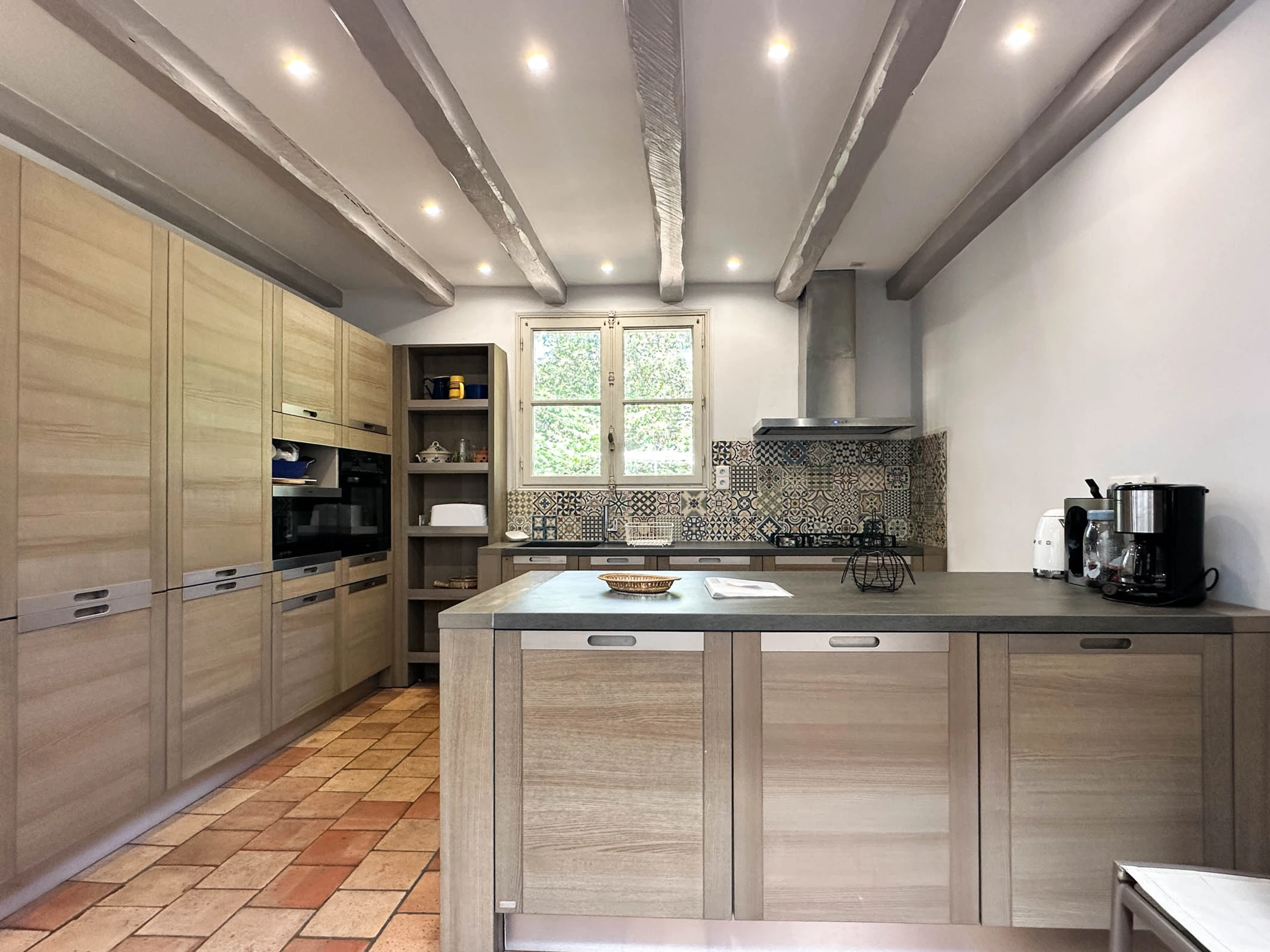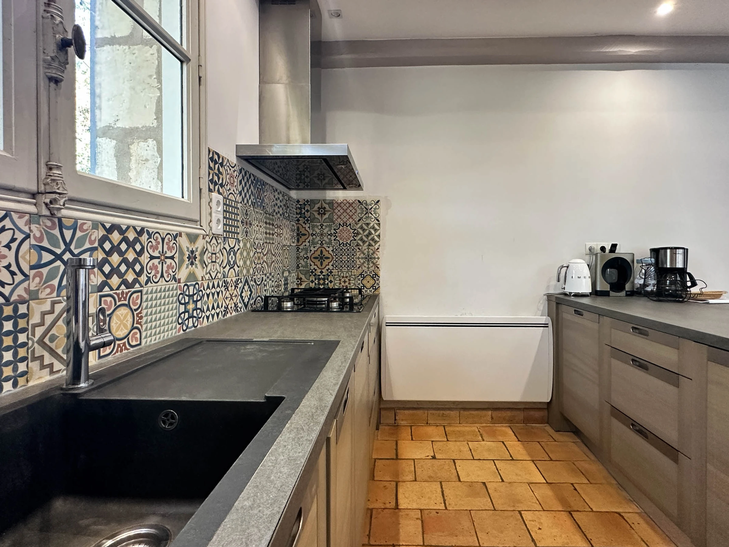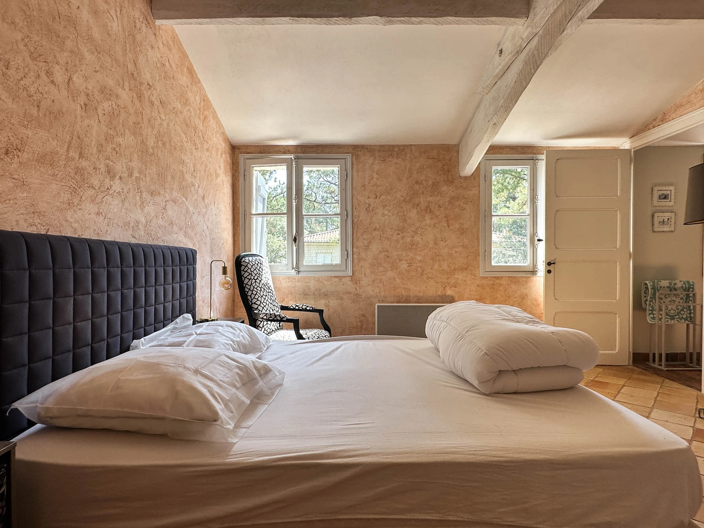 - La casa principal tiene capacidad para 4 personas con en la planta baja: una entrada con aseo de invitados - Sala de estar de 57m² compuesta por una cocina amueblada y equipada (Horno, placa de inducción, frigorífico, cafetera de filtro + Dolce Gusto, hervidor, tostadora) abierta al salón con un comedor y salón con sofás, pantalla (posibilidad de conectar una computadora) SIN SEÑAL DE TV - SIN ACCESO A INTERNET dando acceso por un lado al íntimo y florido patio de aproximadamente 70m², y por el otro lado acceso a la terraza cubierta con barbacoa y plancha de gas con vistas a la piscina y al jardín orientado al sur.