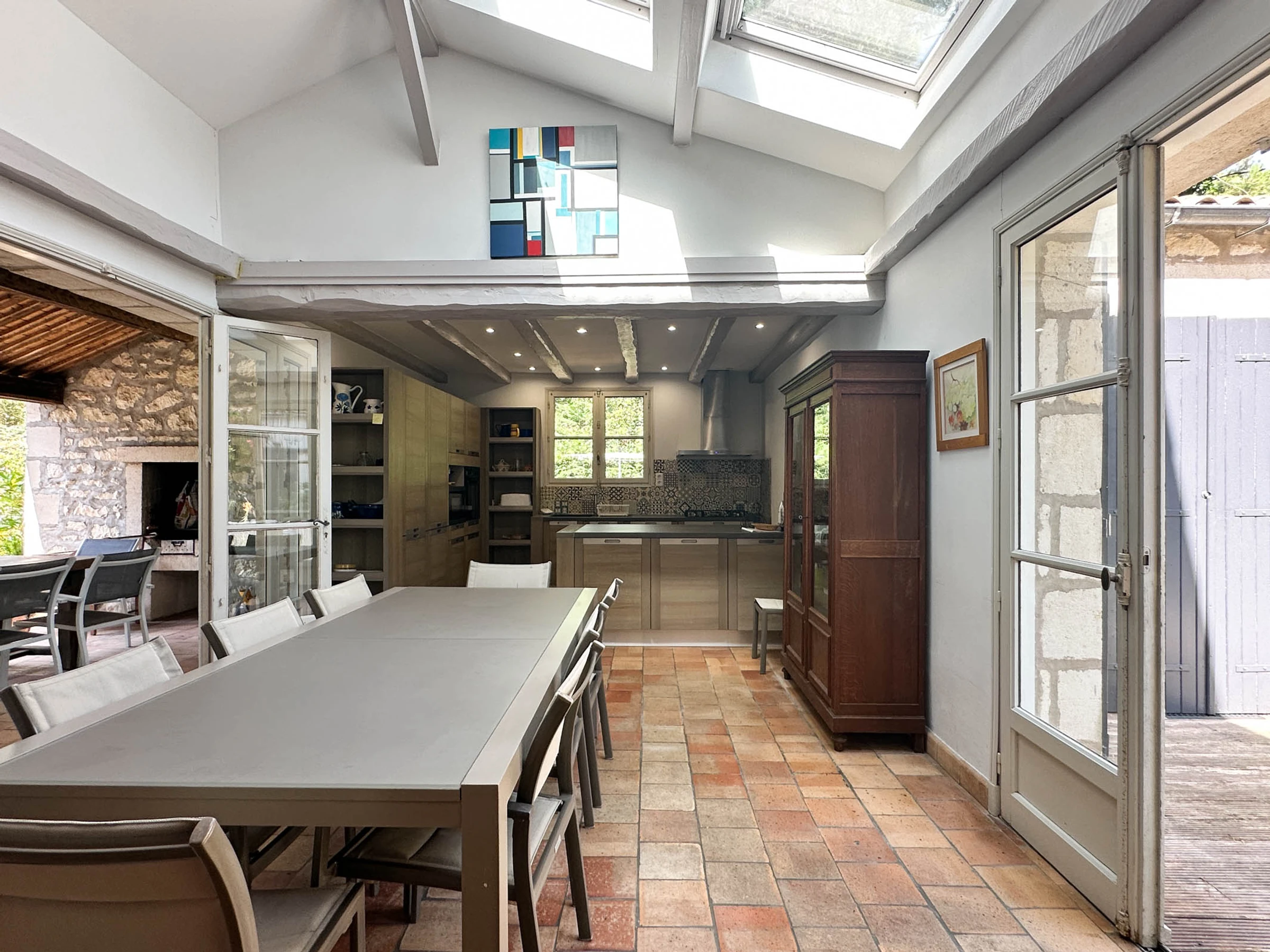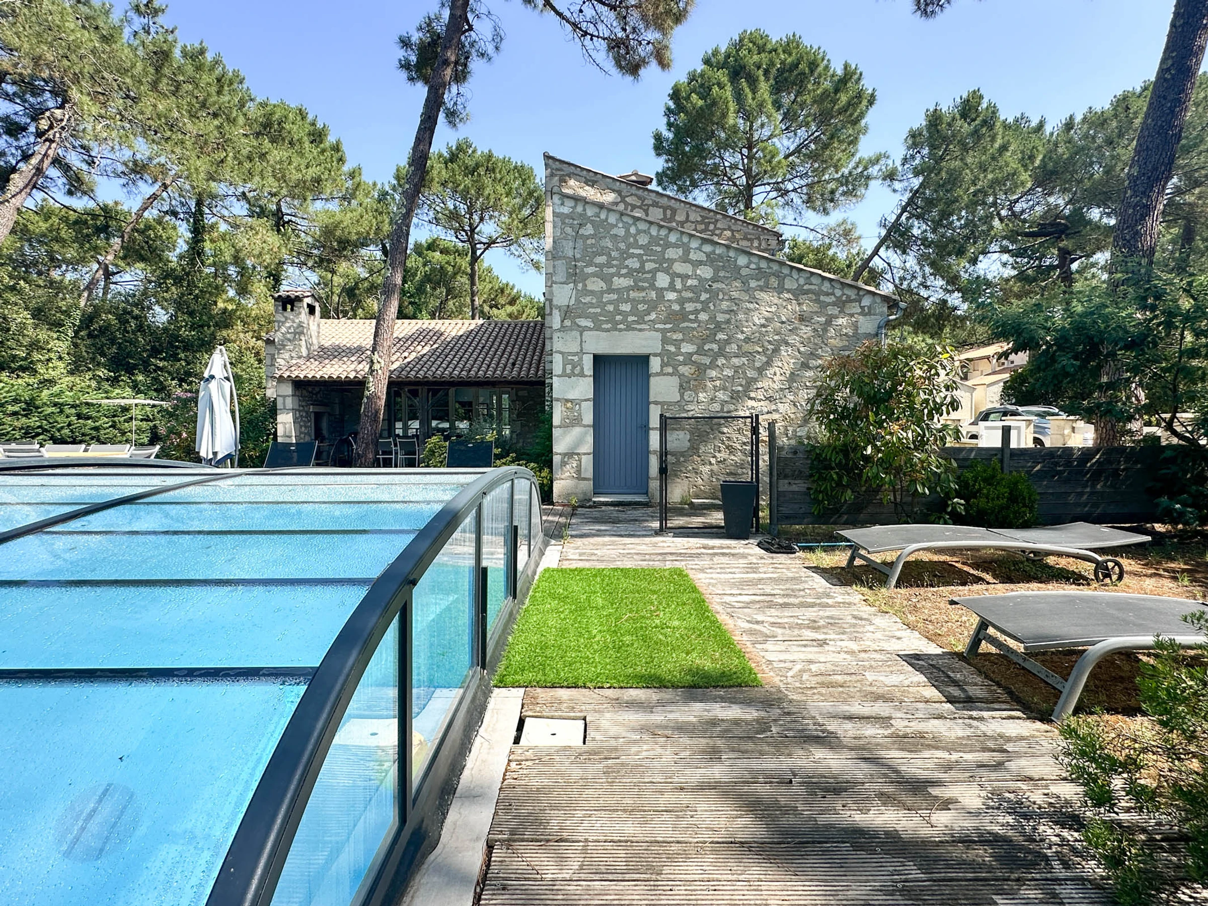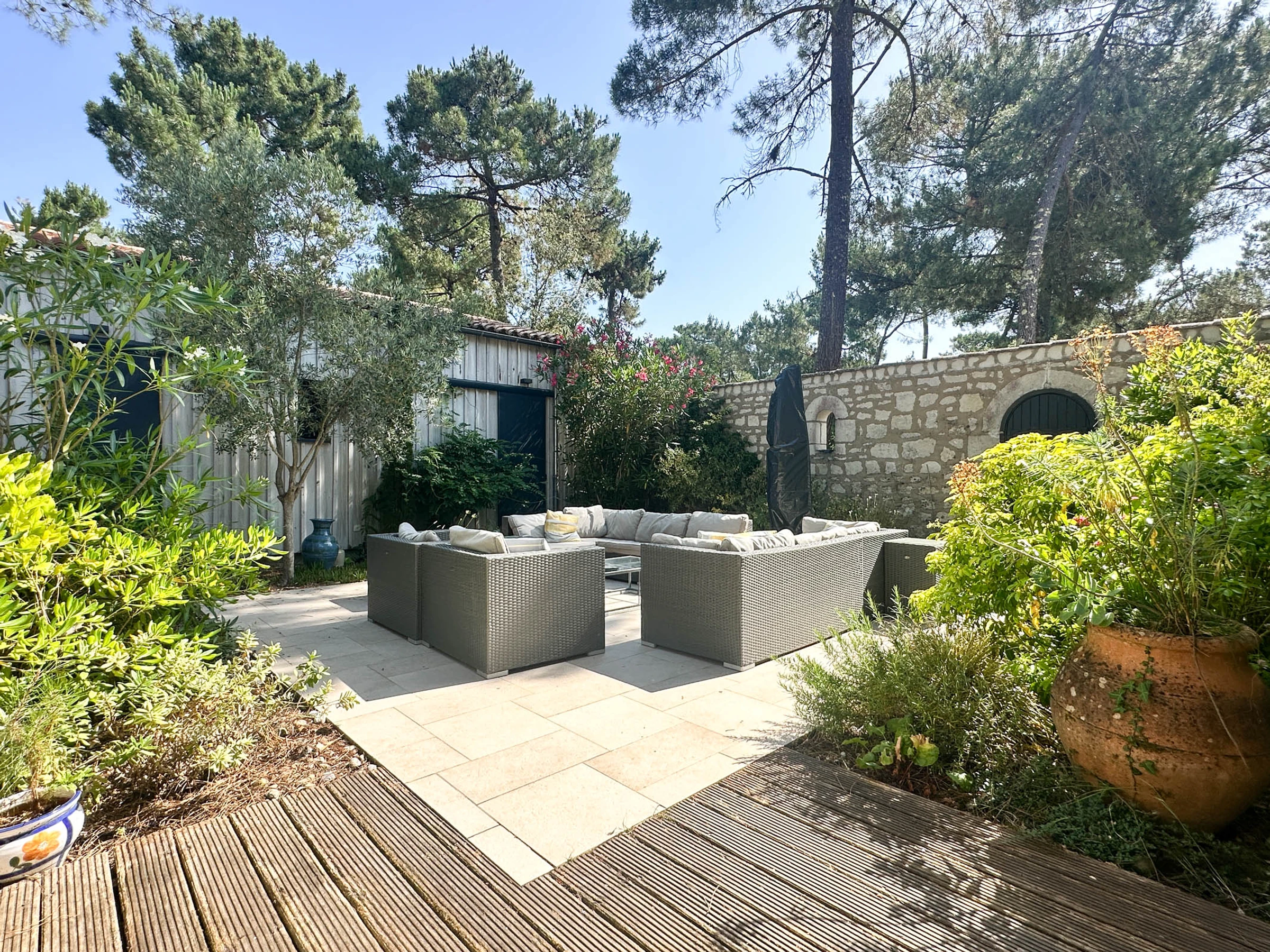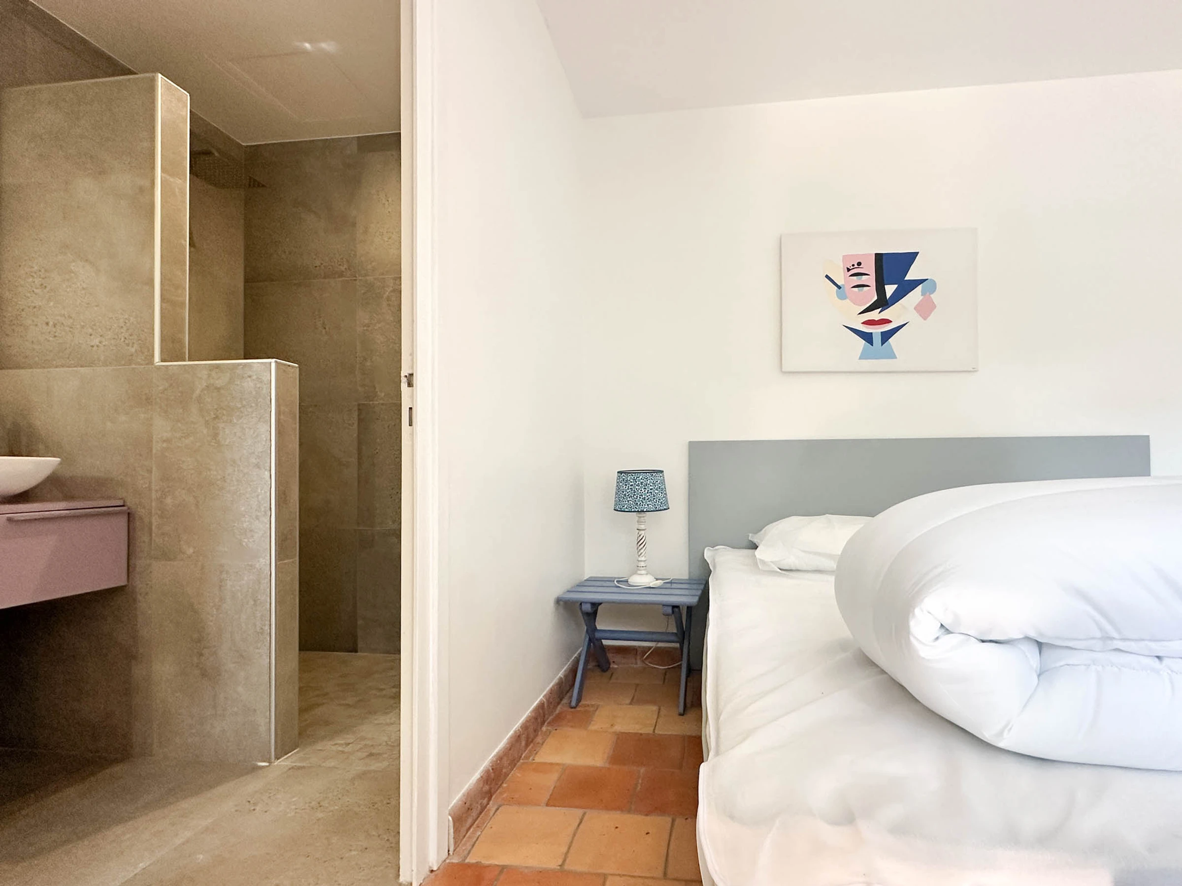 - La casa principal se puede alquilar para 4 personas con en la planta baja: una entrada con aseo de invitados - Sala de estar de 57m² compuesta por una cocina amueblada y equipada (Horno, placa de inducción, frigorífico, cafetera de filtro + Dolce Gusto, hervidor, tostadora) abierta al salón con zona de comedor y salón con sofás, pantalla (posibilidad de conectar una computadora) SIN SEÑAL DE TV - SIN ACCESO A INTERNET dando acceso por un lado al íntimo y florido patio de aproximadamente 70m², y por el otro lado acceso a la terraza cubierta con barbacoa y plancha de gas con vistas a la piscina y al jardín orientado al sur.