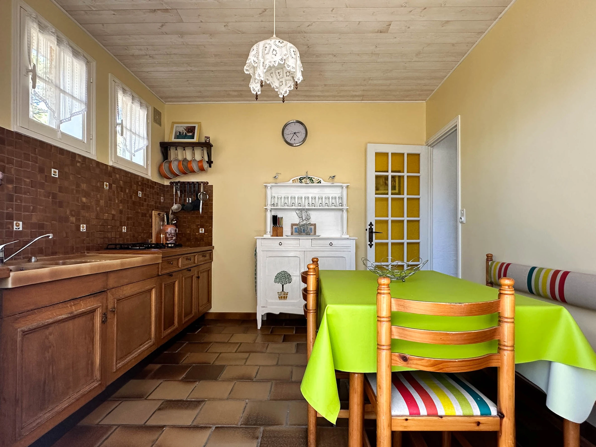 Salón con salón, TV y chimenea con acceso a una terraza cubierta orientada al este - Cocina independiente totalmente equipada con vitrocerámica, horno, frigorífico-congelador, microondas y lavavajillas con acceso a una terraza orientada al oeste -