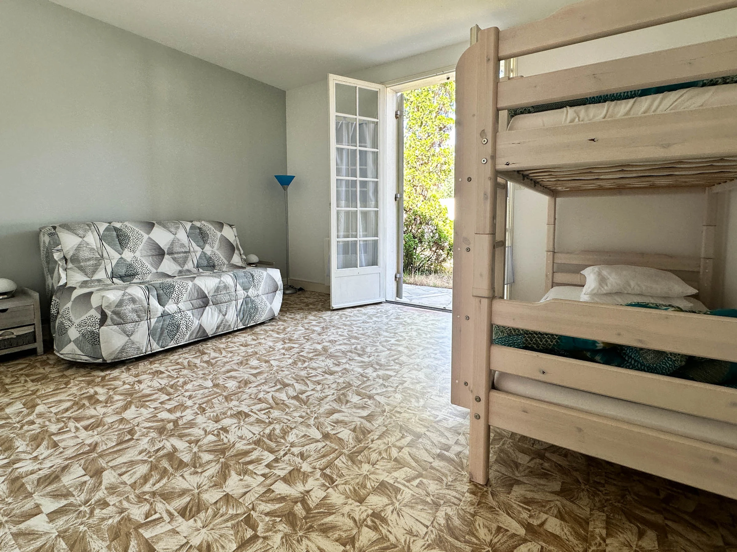 Dormitorio con 1 cama doble y armario - Dormitorio con 1 sofá cama doble y 2 literas individuales y armario -