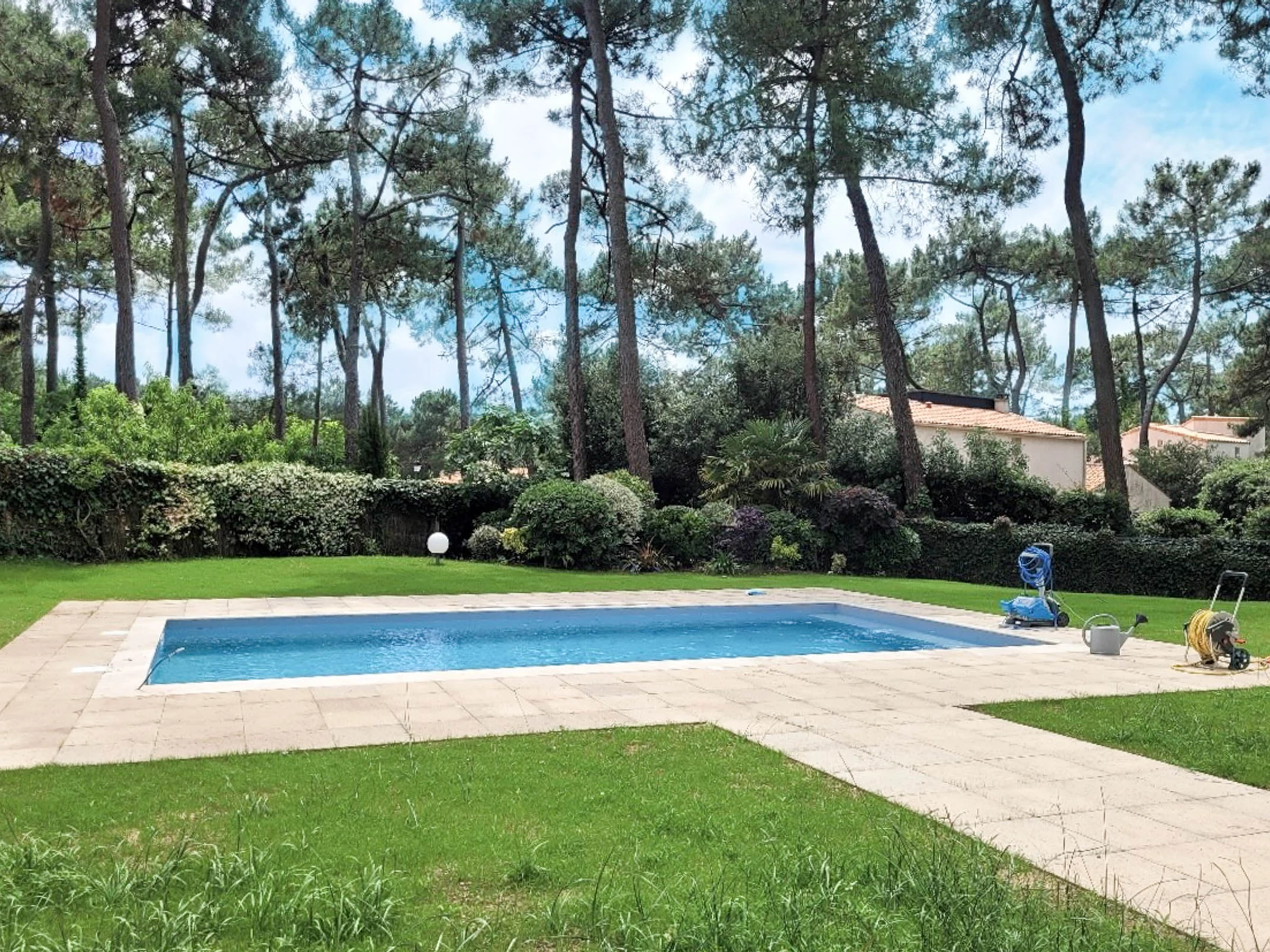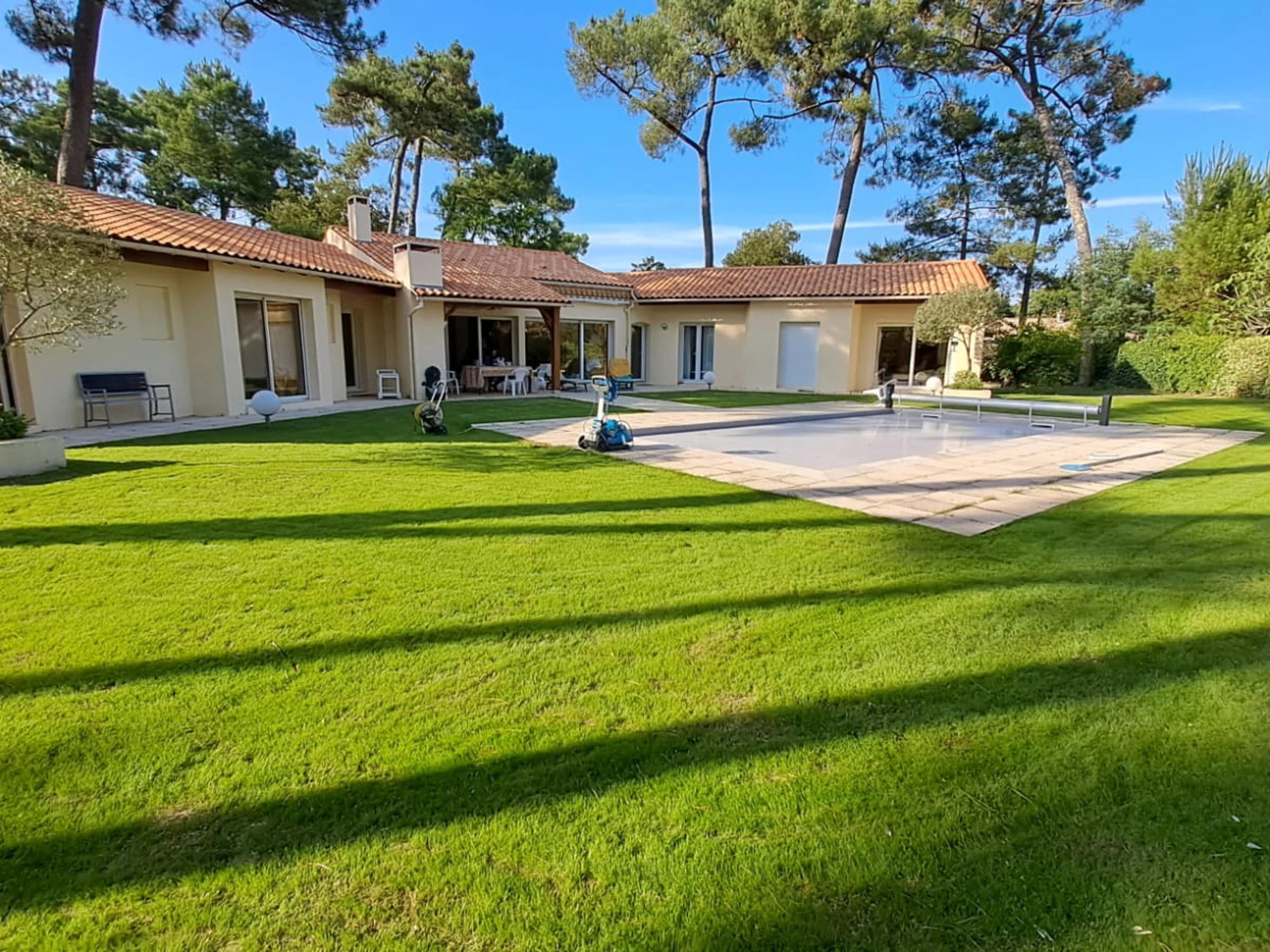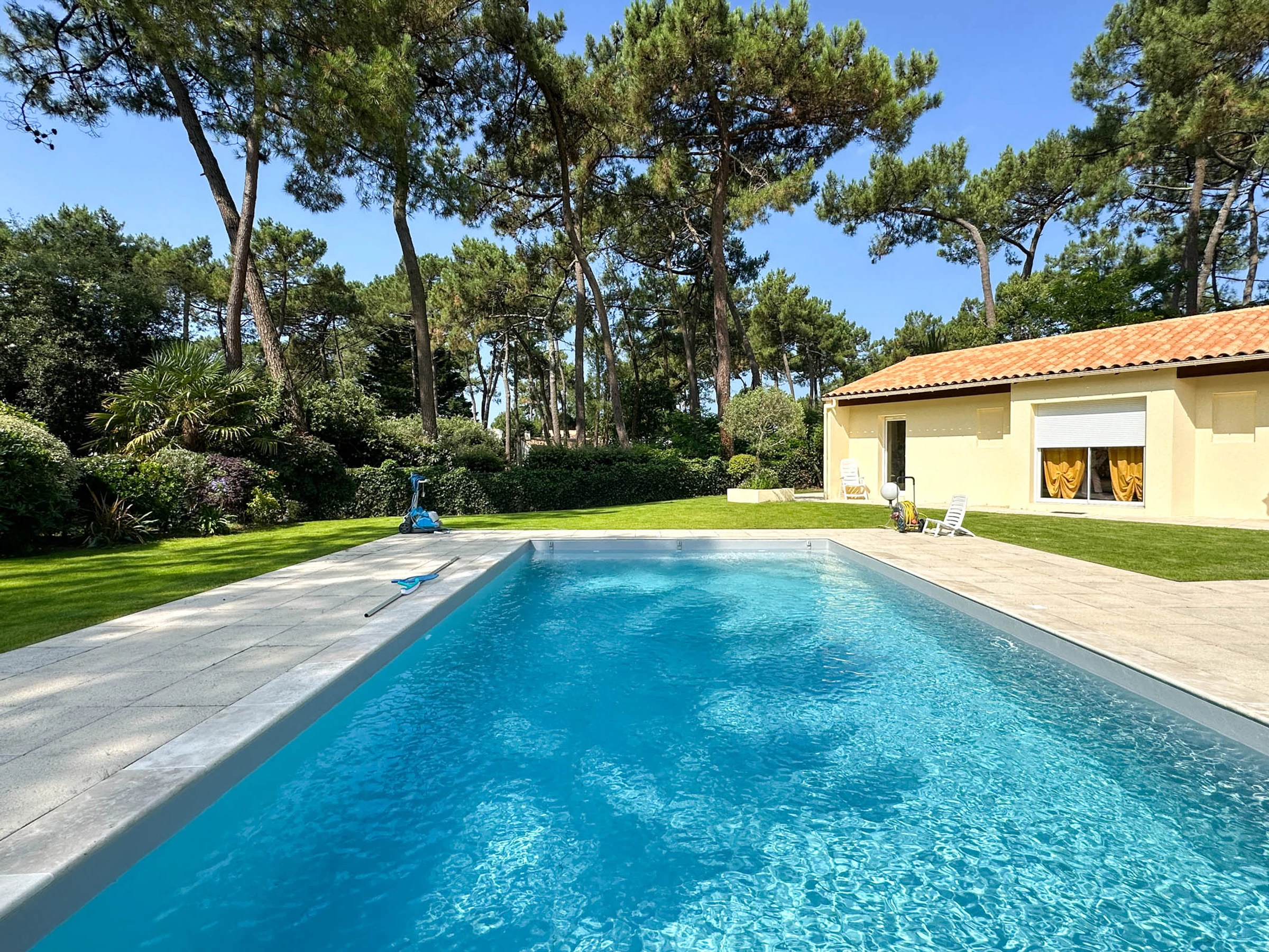 En un parque residencial de 80 Ha con acceso privado al parque y a la playa, tenis (tierra batida). Tranquilidad y tranquilidad garantizadas a un paso del campo de golf de La Palmyre:
