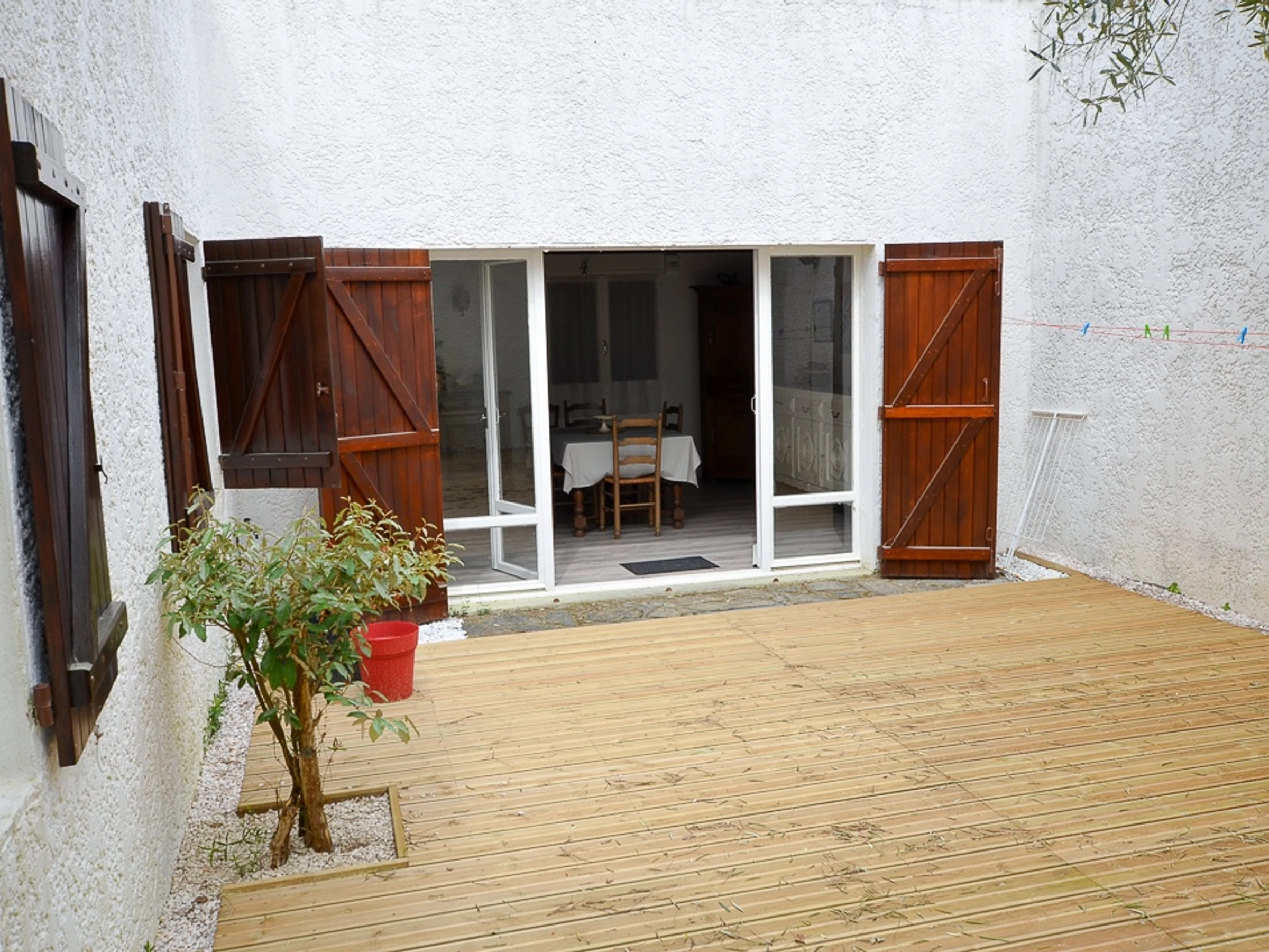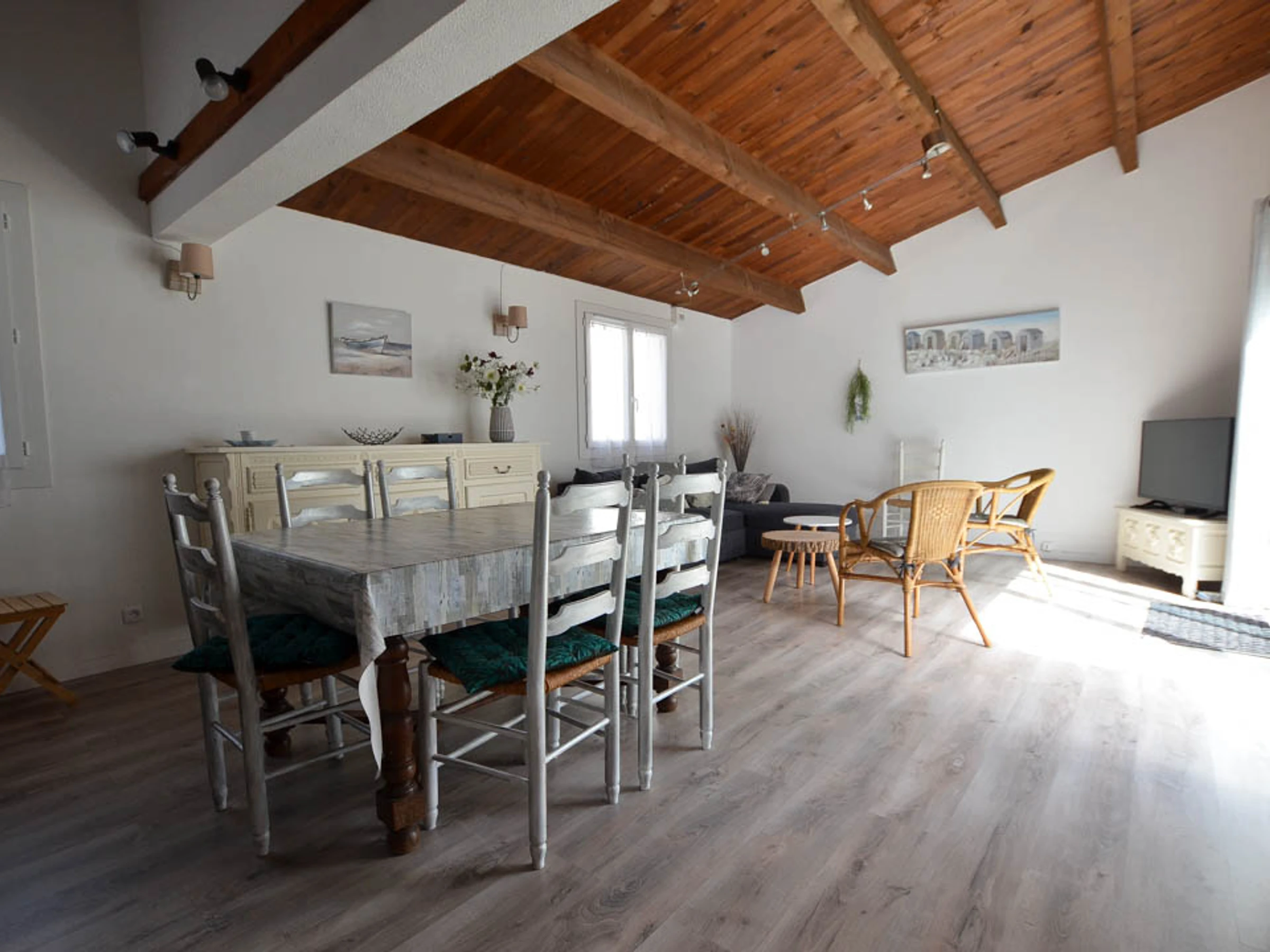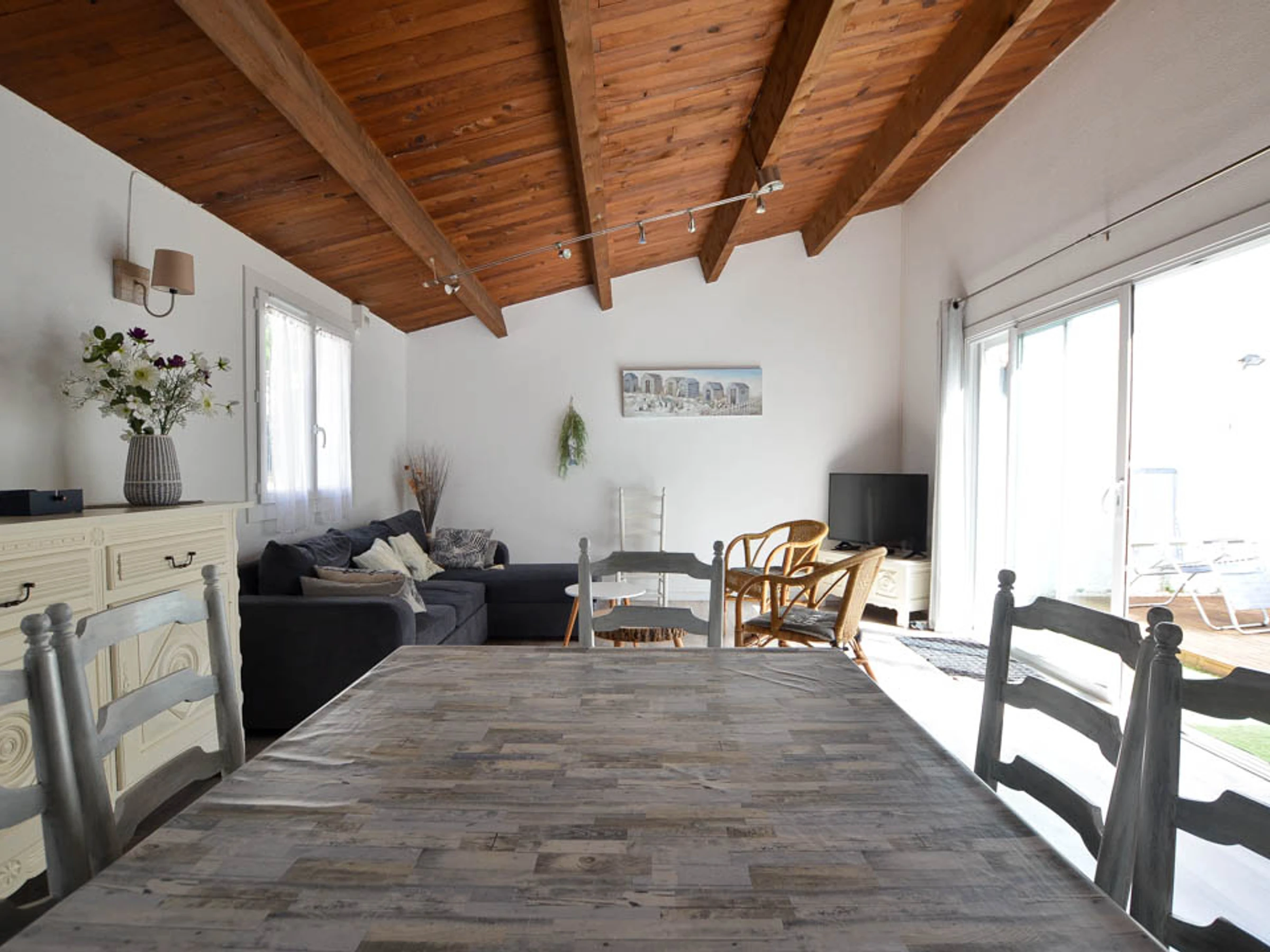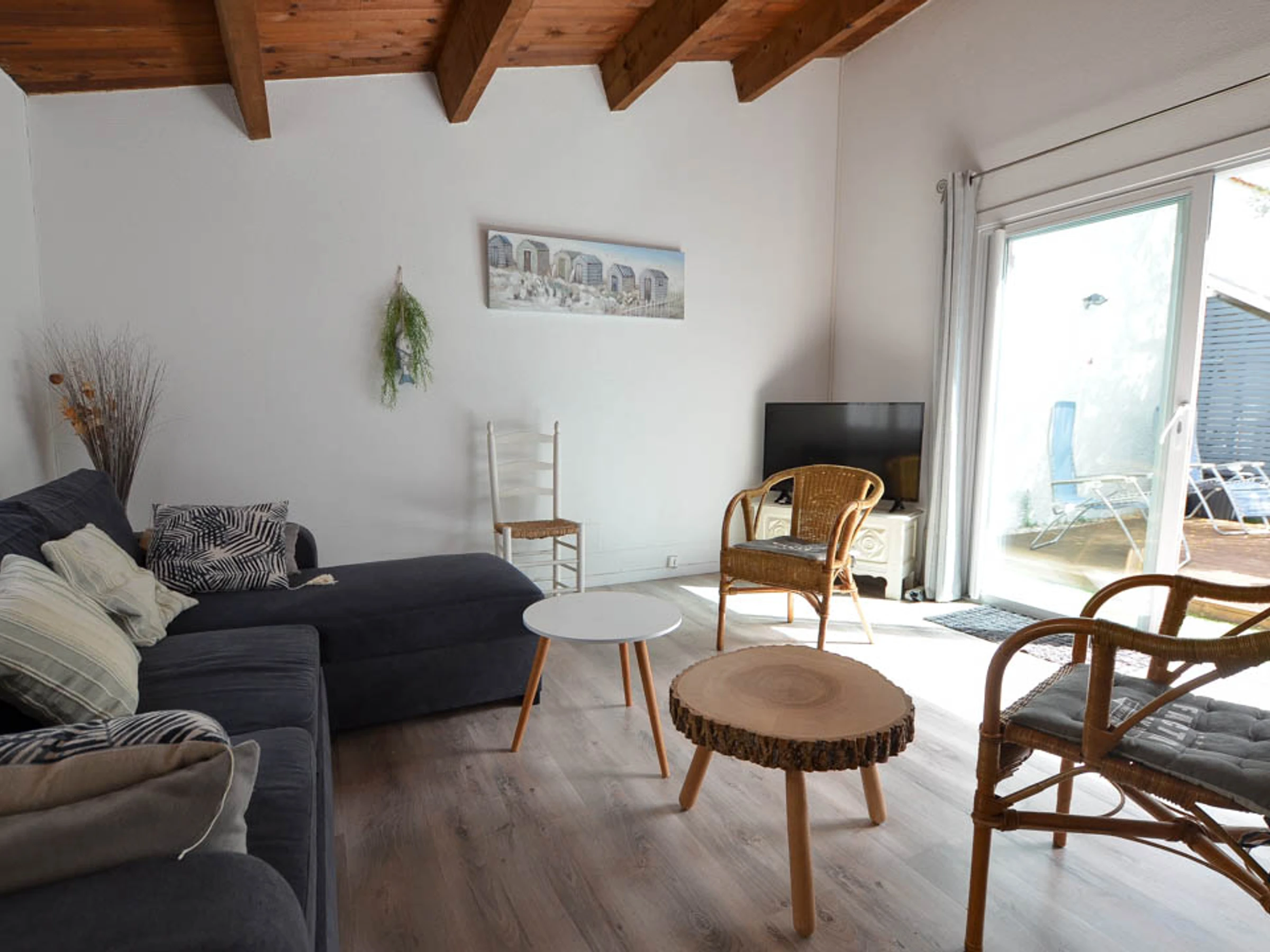 A unos 400 m del mar, a 400 m de los comercios, a 300 m de las pistas de tenis - Casa adosada de 4 habitaciones en una sola planta, con capacidad para 7 personas - Superficie habitable de unos 75 m² que incluye: