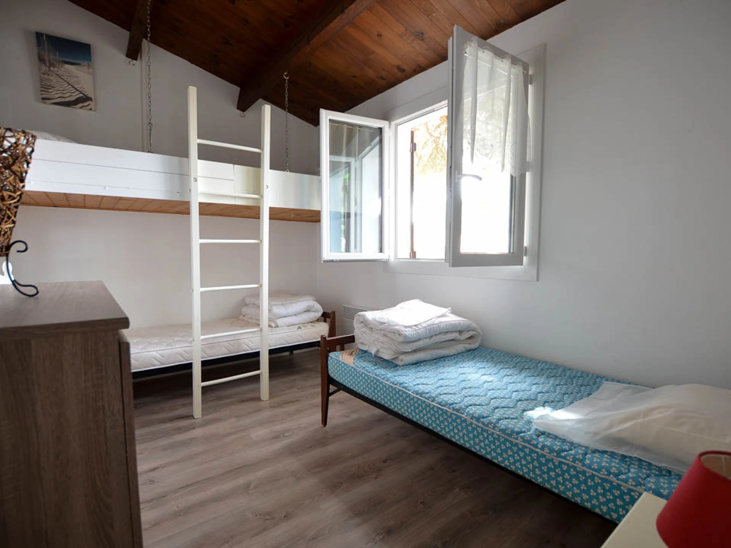 - Dormitorio con 3 camas de 90 cm, 1 de ellas suspendida, Armario