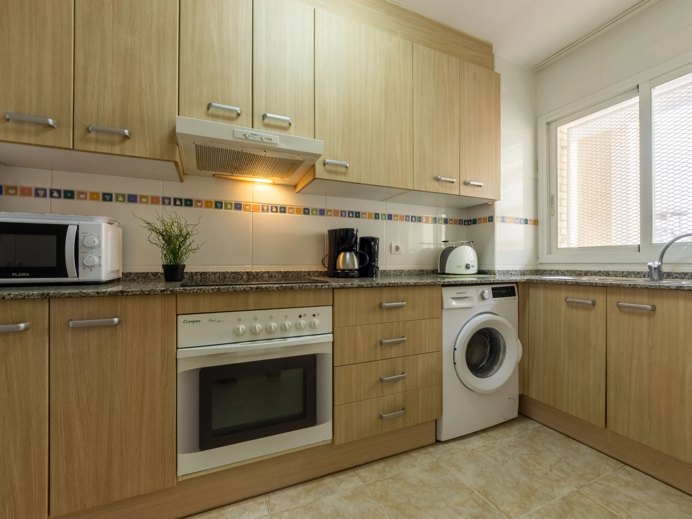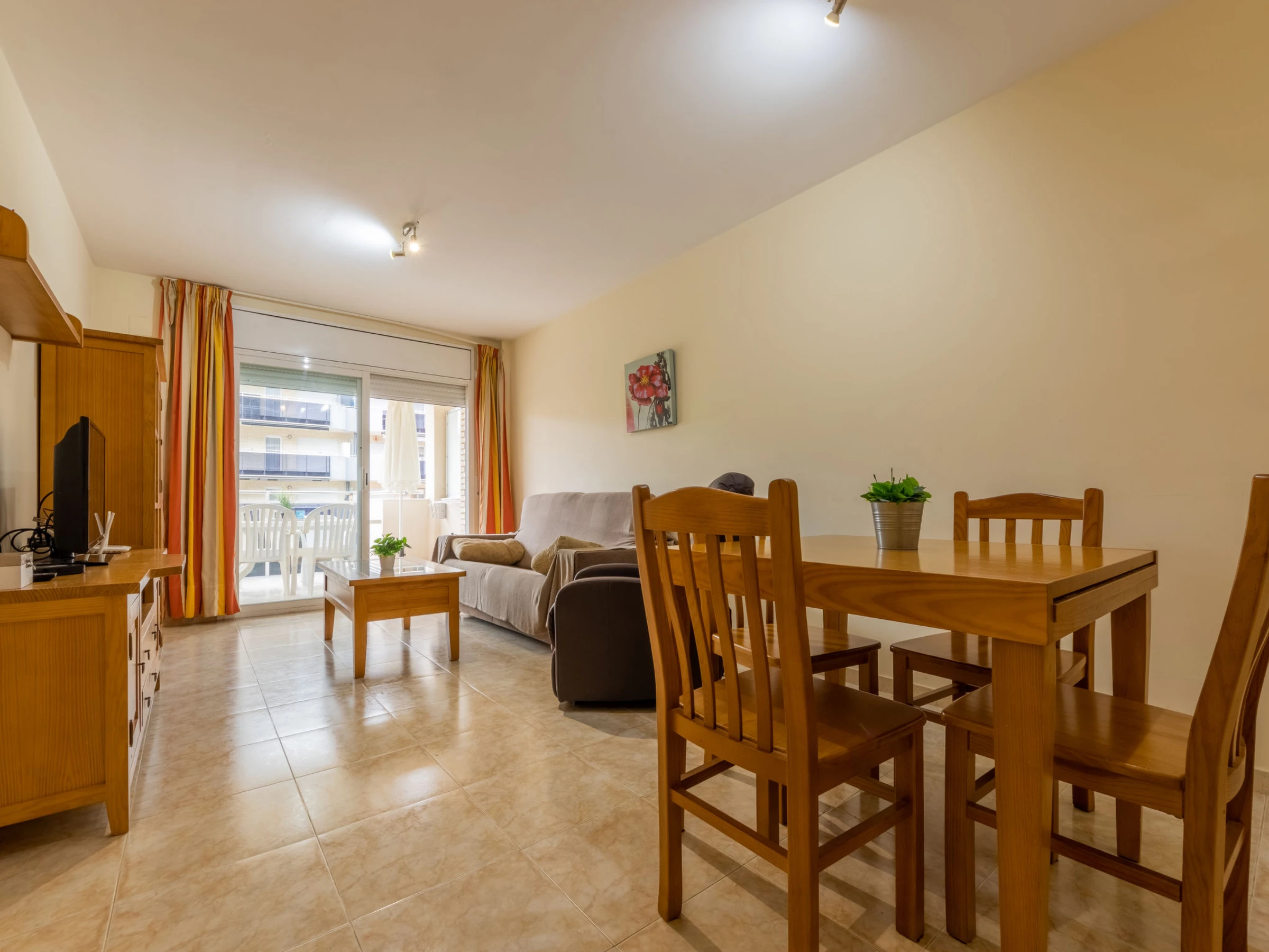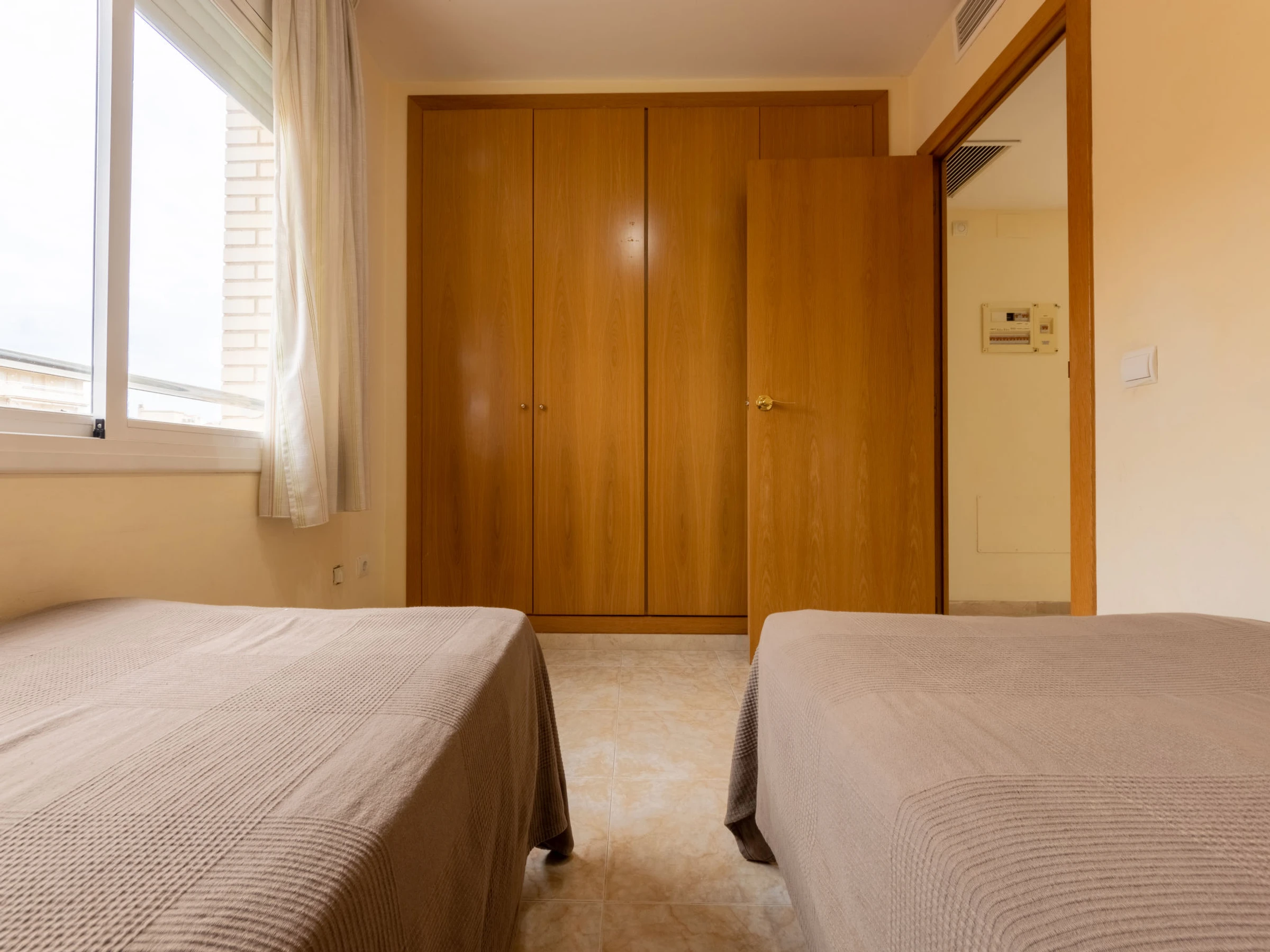 Apartamento de 3 estancias 65 m2. Con mobiliario funcional: salón-comedor con 1 sofá-cama doble, TV satélite y pantalla plana. Salida a la terraza. 1 dorm. con 1 cama de matrimonio (135 cm, 190 cm de longitud). 1 dorm. con 2 camas (90 cm, 190 cm de longitud). Cocina (horno, 4 placas de vitrocerámica, hervidor de agua eléctrico, microondas, cafetera eléctrica). Ducha/WC. Aire acondicionado, aire caliente. Terraza. Muebles de terraza. El alojamiento dispone de: lavadora, plancha, trona, cuna, secador de pelo. Internet (Wifi, gratis). Plaza de aparcamiento n. 44. [hidden]