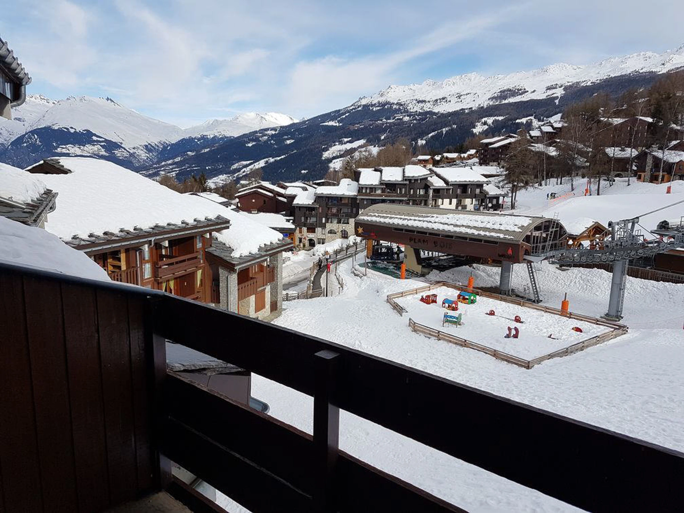 Apartamento dúplex de 3 habitaciones + entrepiso para 6 personas, de aproximadamente 54 m² (incluidos 7 m² para alturas inferiores a 1,80 m), ubicado en la última planta, con orientación sureste y balcones en la segunda y tercera planta, con vistas al centro de la estación y a las pistas; en muy buen estado. Incluye: