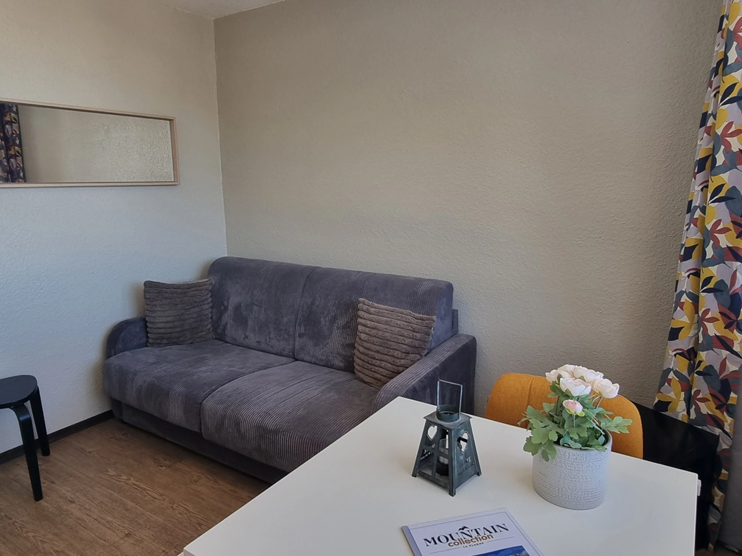 Sala de estar: 1 cama nido para 2 personas. TV de pantalla plana. Equipada con edredones y mantas. Cocina americana: placas eléctricas, nevera y microondas. Baño: cabina de ducha y aseo.