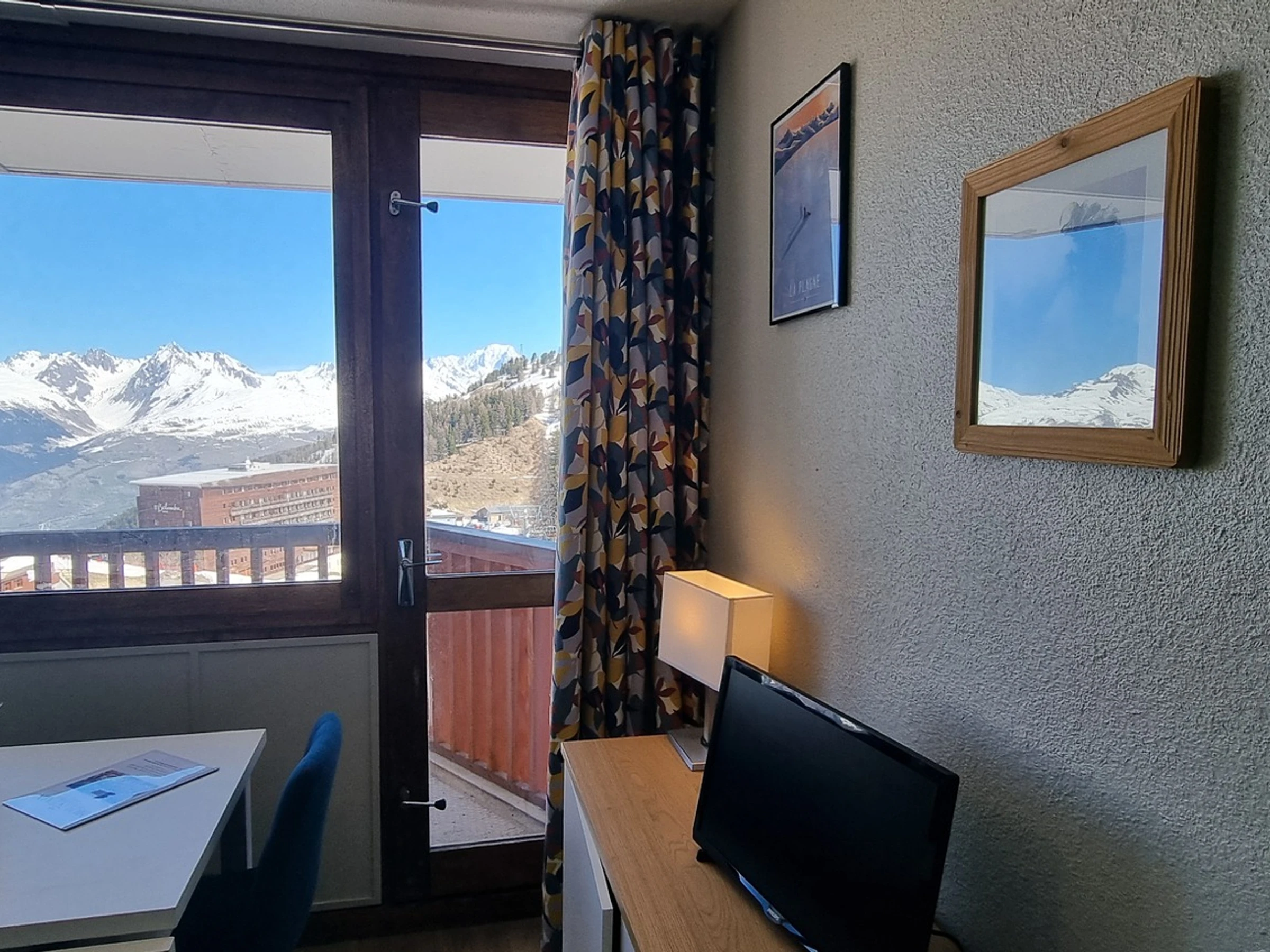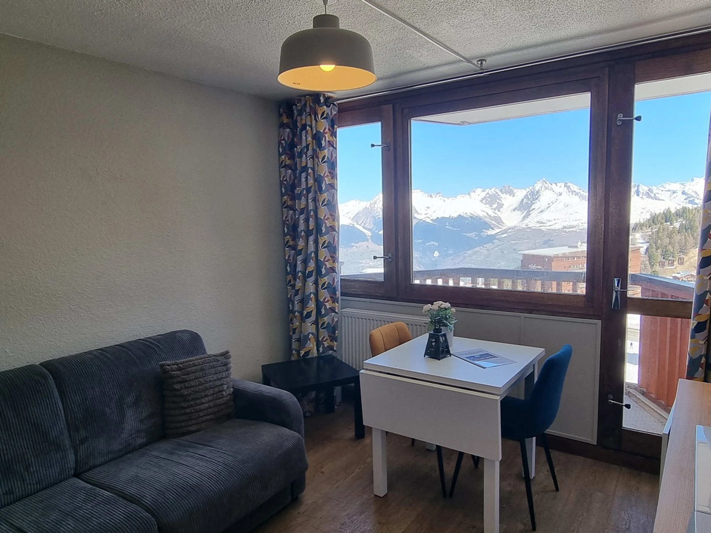 Ubicado en la residencia Le France, en Plagne Centre. Estudio para 2 personas, con acceso directo a las pistas de esquí, de 16 m², en la 7.ª planta, con balcón y vistas al valle y al Mont Blanc.