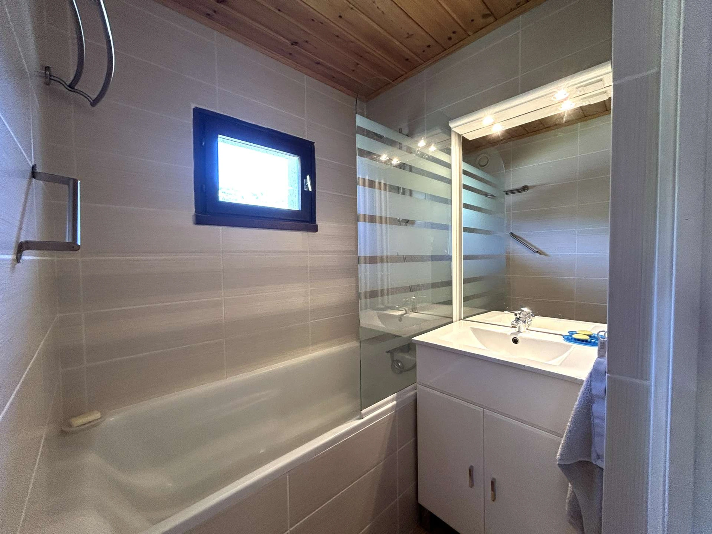 Este apartamento cuenta con un salón con un sofá cama doble (160 cm), un rincón dormitorio con literas de 90 cm, una cocina totalmente equipada (lavavajillas, microondas, placa eléctrica, tostadora, cafetera, etc.), un baño y un aseo independiente.