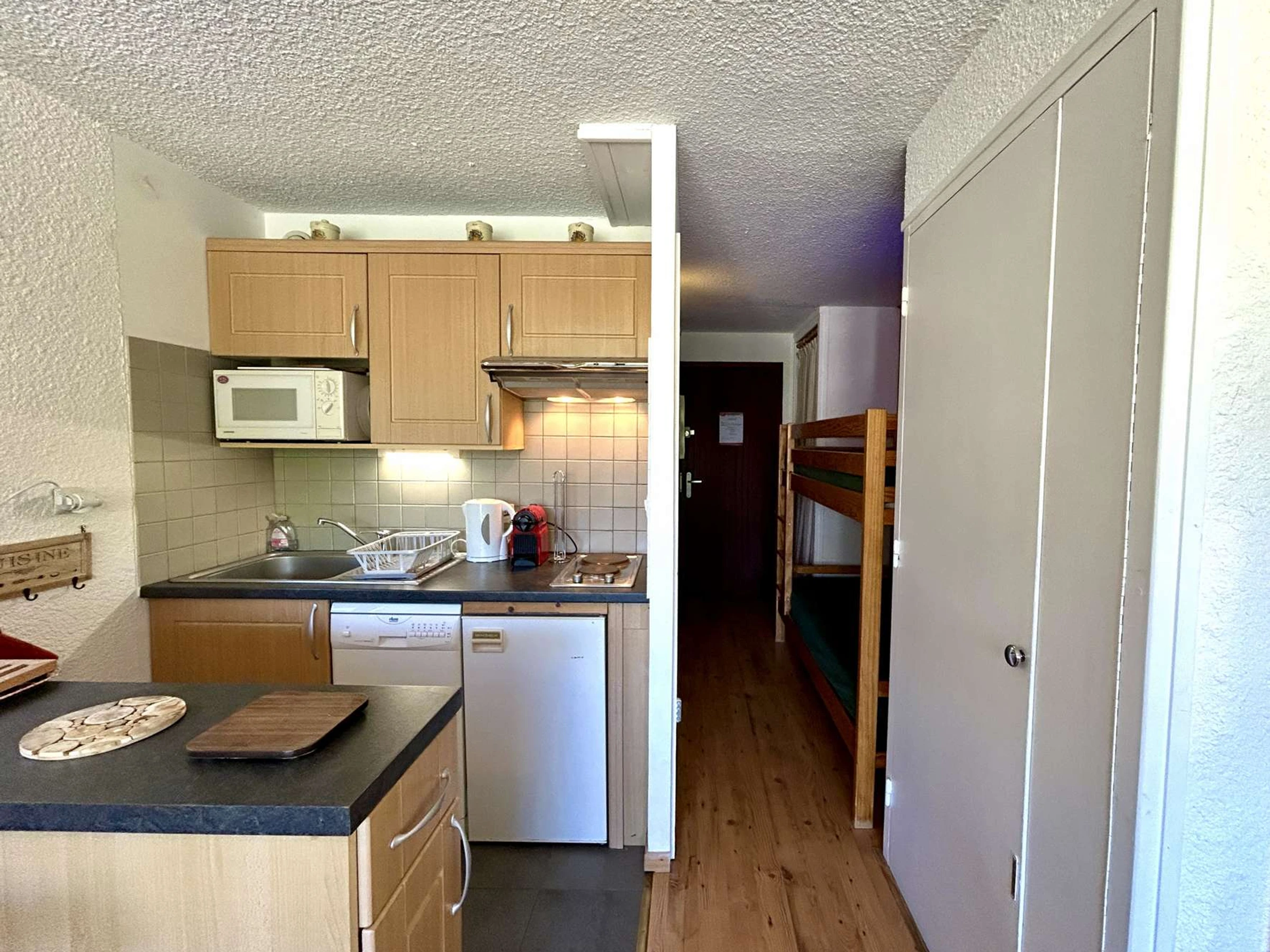 Lo mejor de este apartamento de montaña: La residencia está idealmente ubicada a pie de pistas. Cerca de todos los servicios. Este encantador y funcional estudio tiene capacidad para cuatro personas.