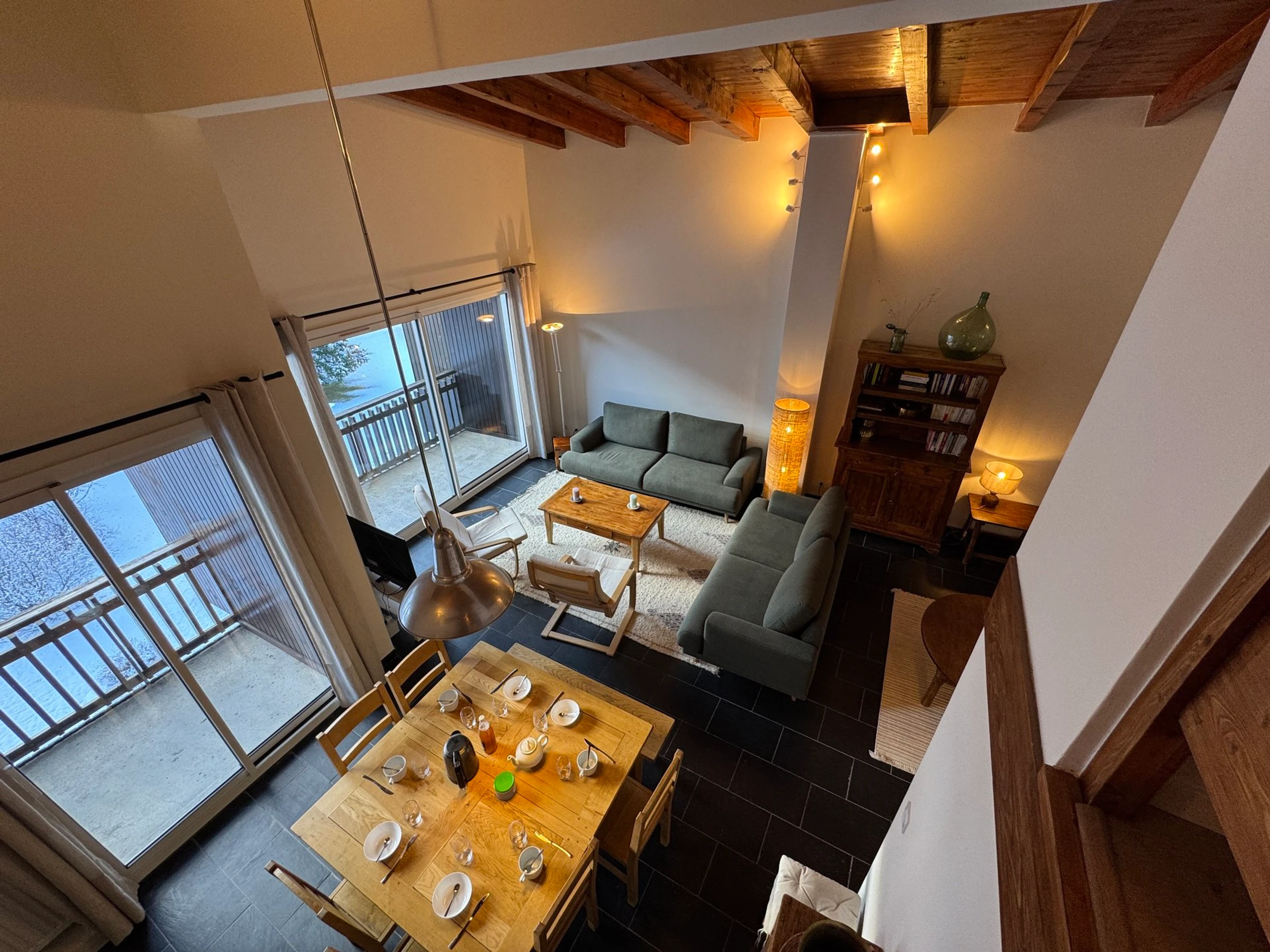 - Un balcón orientado al sur con una hermosa vista panorámica de las pistas y las montañas