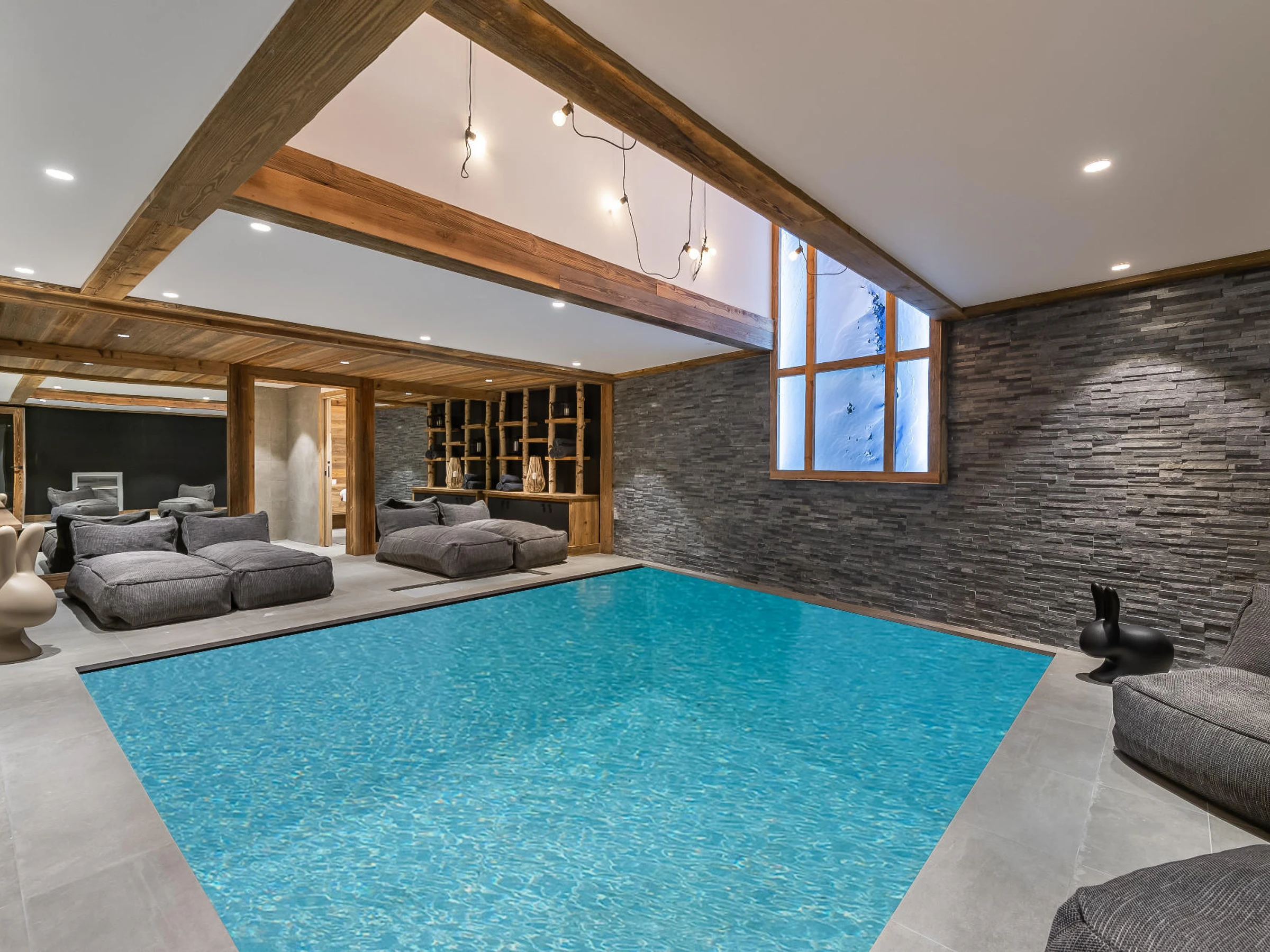 Excepcional chalet de estilo contemporáneo, con acceso directo a las pistas de esquí, idealmente ubicado en Courchevel Le Praz. Ubicado en el típico pueblo de Le Praz, goza de una excelente orientación sur. Se distribuye en 4 plantas sin ascensor.