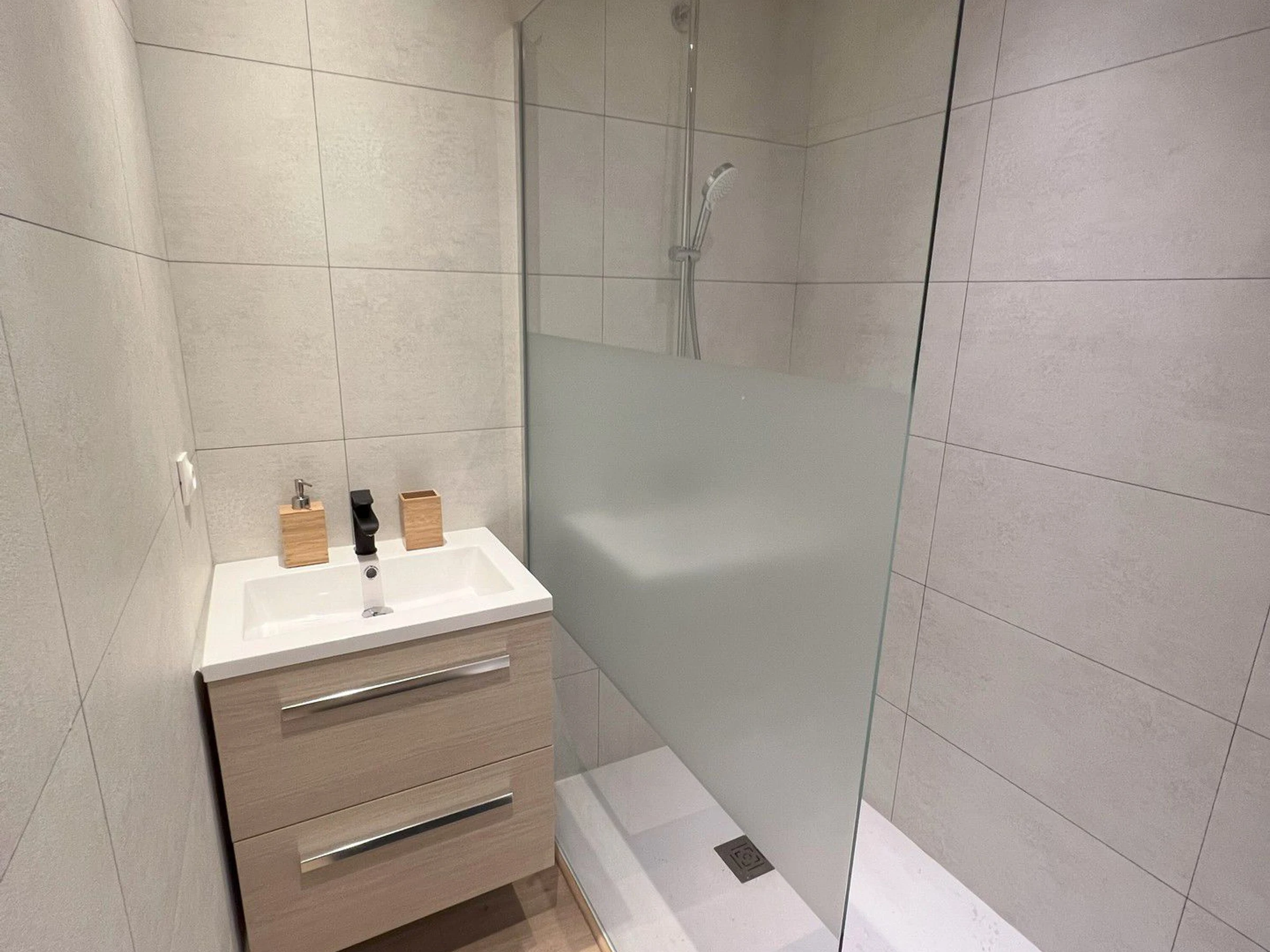 - BAÑO: cabina de ducha, mueble y lavabo.