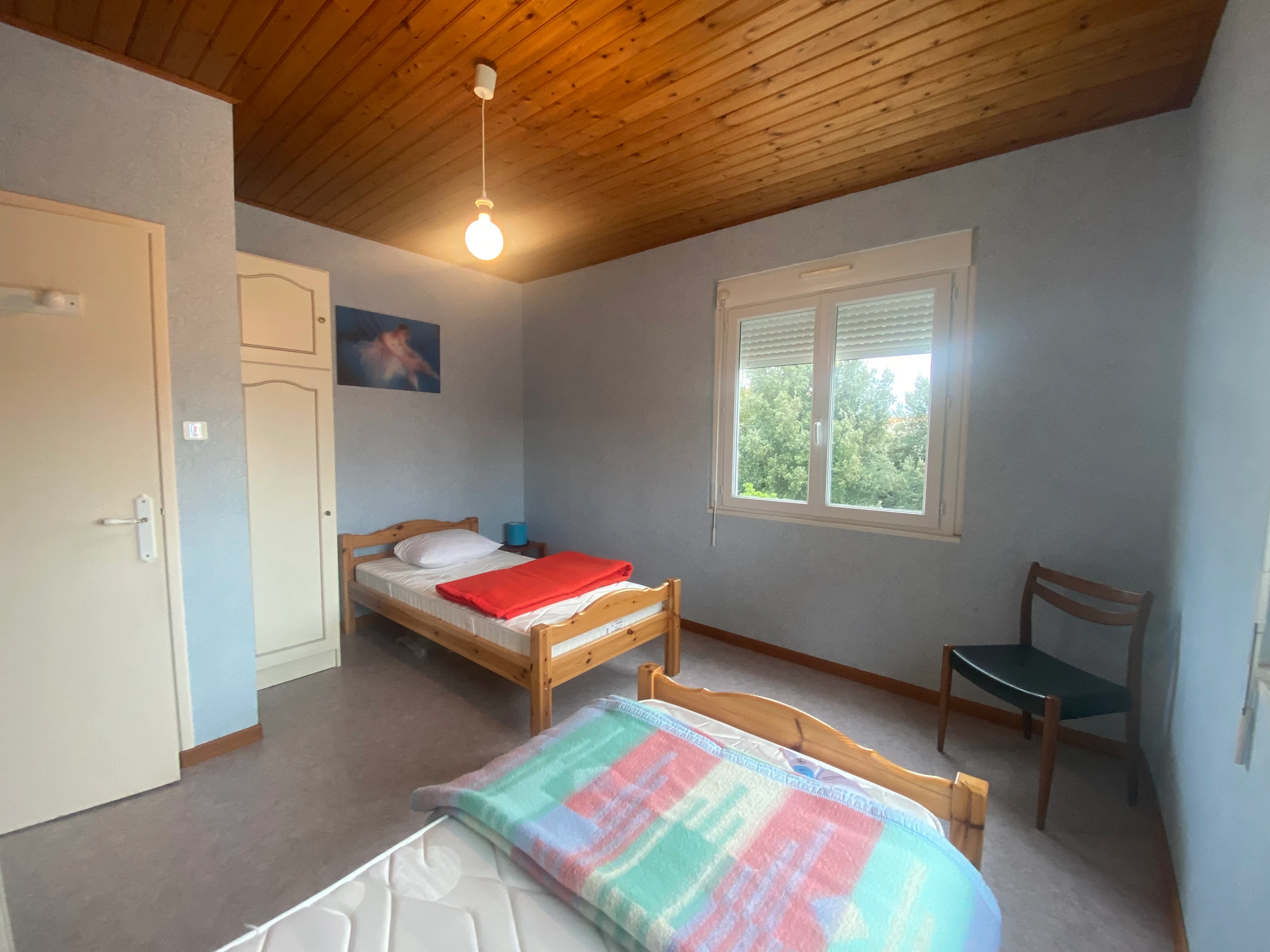 Planta alta: 1 dormitorio con 2 camas de 0,90 cm, 1 dormitorio con 1 cama de 140 cm. 1 dormitorio con 1 cama de 140 cm. 1 baño (ducha, lavabo).