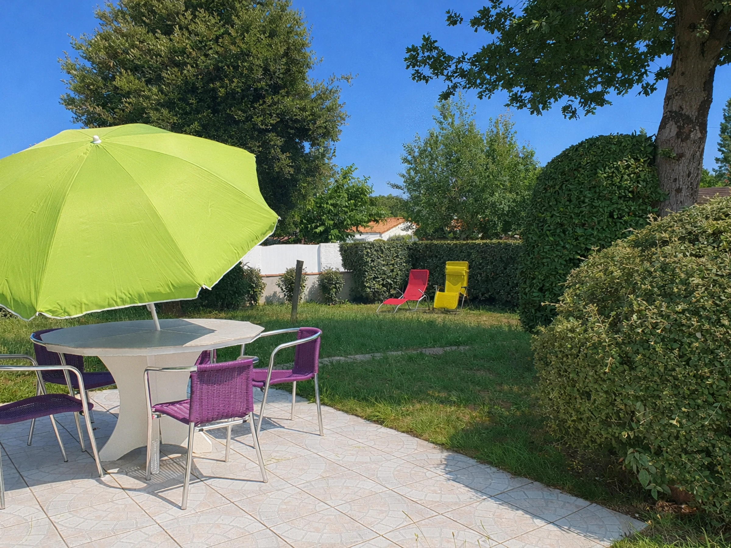 Confortable casa situada a 600 m de la playa y 1800 m del centro del pueblo. Consta de: Cocina equipada (4 fuegos de gas, microondas, frigorífico con sección de conservas, horno de gas, lavavajillas) abierta al salón con televisión - Un dormitorio con cama de matrimonio (160 cm) con baño contiguo al agua (ducha, lavabo sobre mueble) y Otros dos dormitorios con cama doble cada uno (140 cm) - 2.º baño con ducha y lavabo sobre mueble - WC - Trastero con lavadora - Jardín con terraza bajo toldo, muebles de jardín y barbacoa - Servicio de limpieza para el inquilino. Ropa de hogar no incluida, alquiler posible a través de nuestro socio, contáctenos. Calefacción del 1 de octubre al 31 de mayo además según lectura del contador. Alquiler de wifi posible con caja 5G: 40 €/semana