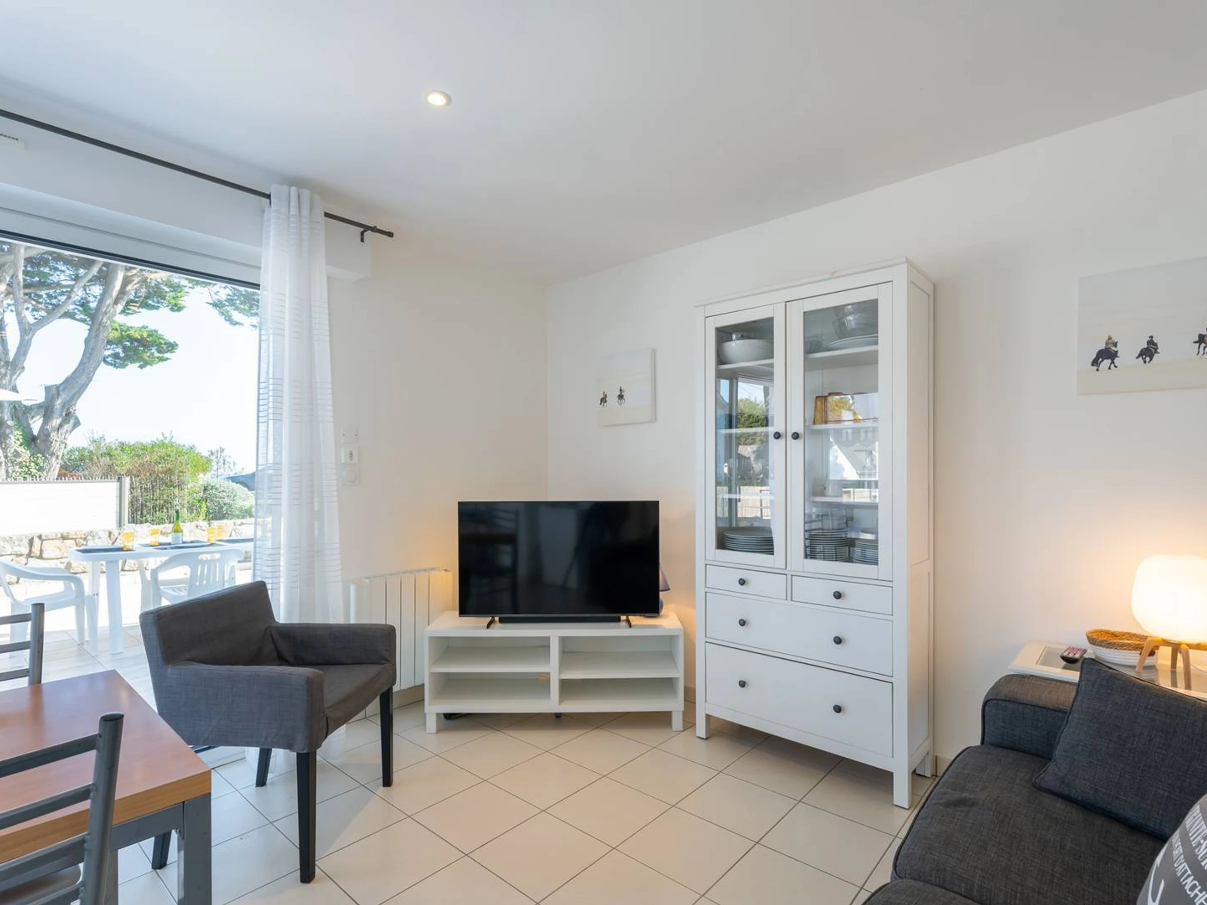 Entre Carnac y La Trinité-sur-Mer, frente a la isla de Stuhan, con acceso directo a la playa de Men Du y a 700 m de un supermercado, este precioso apartamento de 3 habitaciones (48 m²) con capacidad para 4 personas, una amplia terraza y vistas al mar, se encuentra en la residencia Chal Ha Dichal (planta baja, puerta 3):