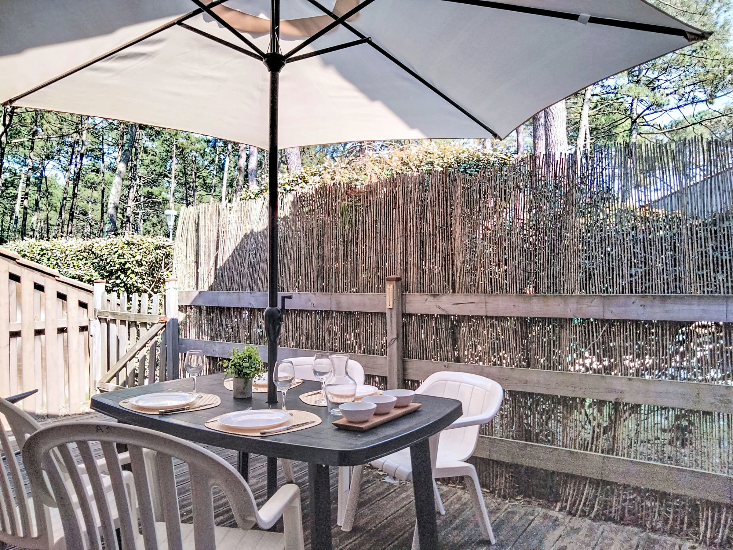 Residencia "Les Pins". En el barrio de Domaine de l'Aubarède, en la periferia, a 1.7 km del centro de de Lacanau Océan, a 2 km del mar, a 6 km de un lago, en un bosque. Comunitario: parque infantil, Aparcamiento. Tienda 1.7 km, restaurante 1.7 km, a 12 minutos del centro andando, parada autobús "Marie Curie" 1.2 km. Campo de golf (18 hoyos) 2 km, tenis 1.5 km, centro ecuestre 3 km, caminos para bicicletas 100 m, parque infantil 20 m. Atracciones en los alrededores: Bordeaux 60 km, Dune du Pyla 70 km, Saint Emilion 70 km.