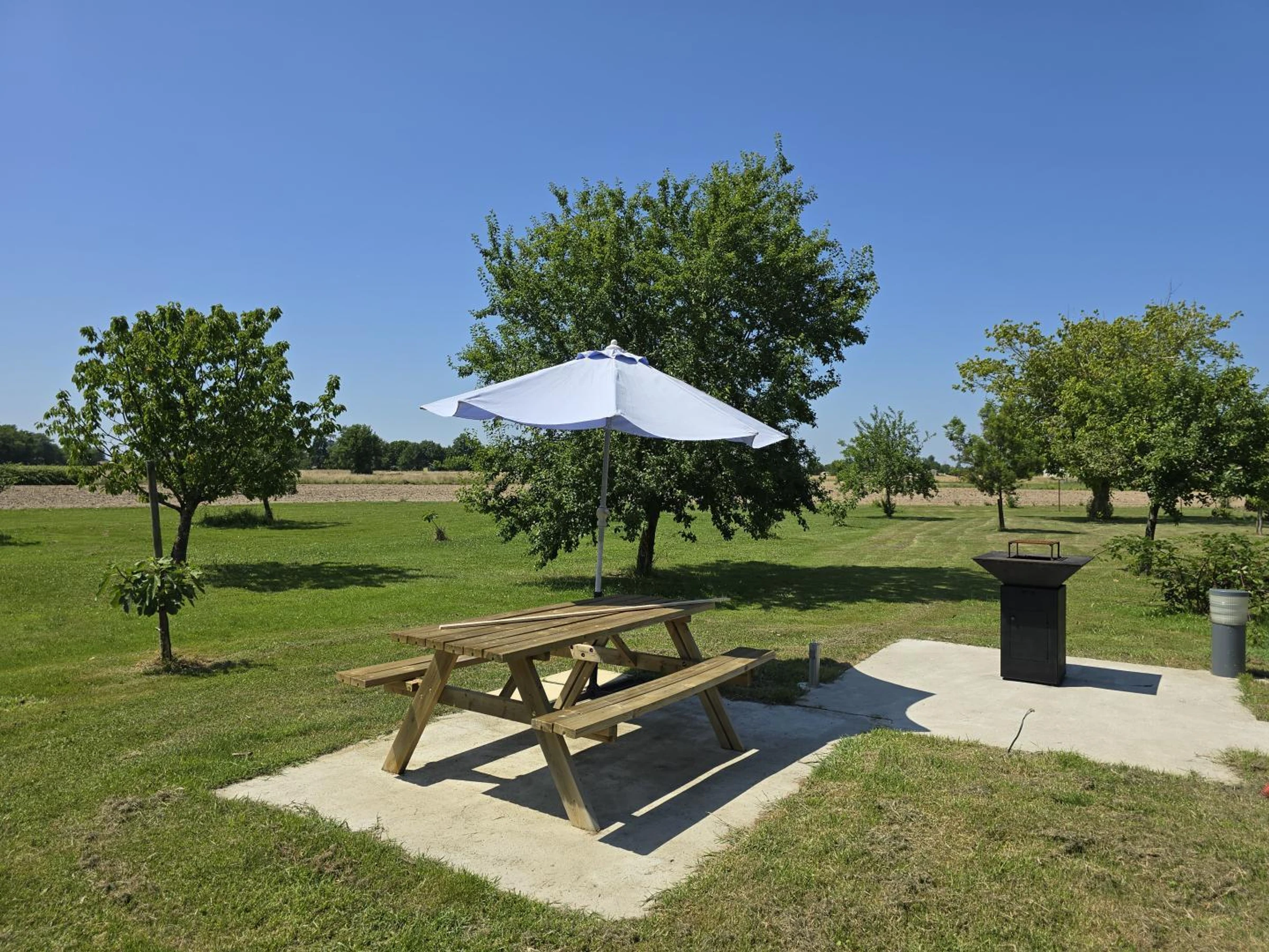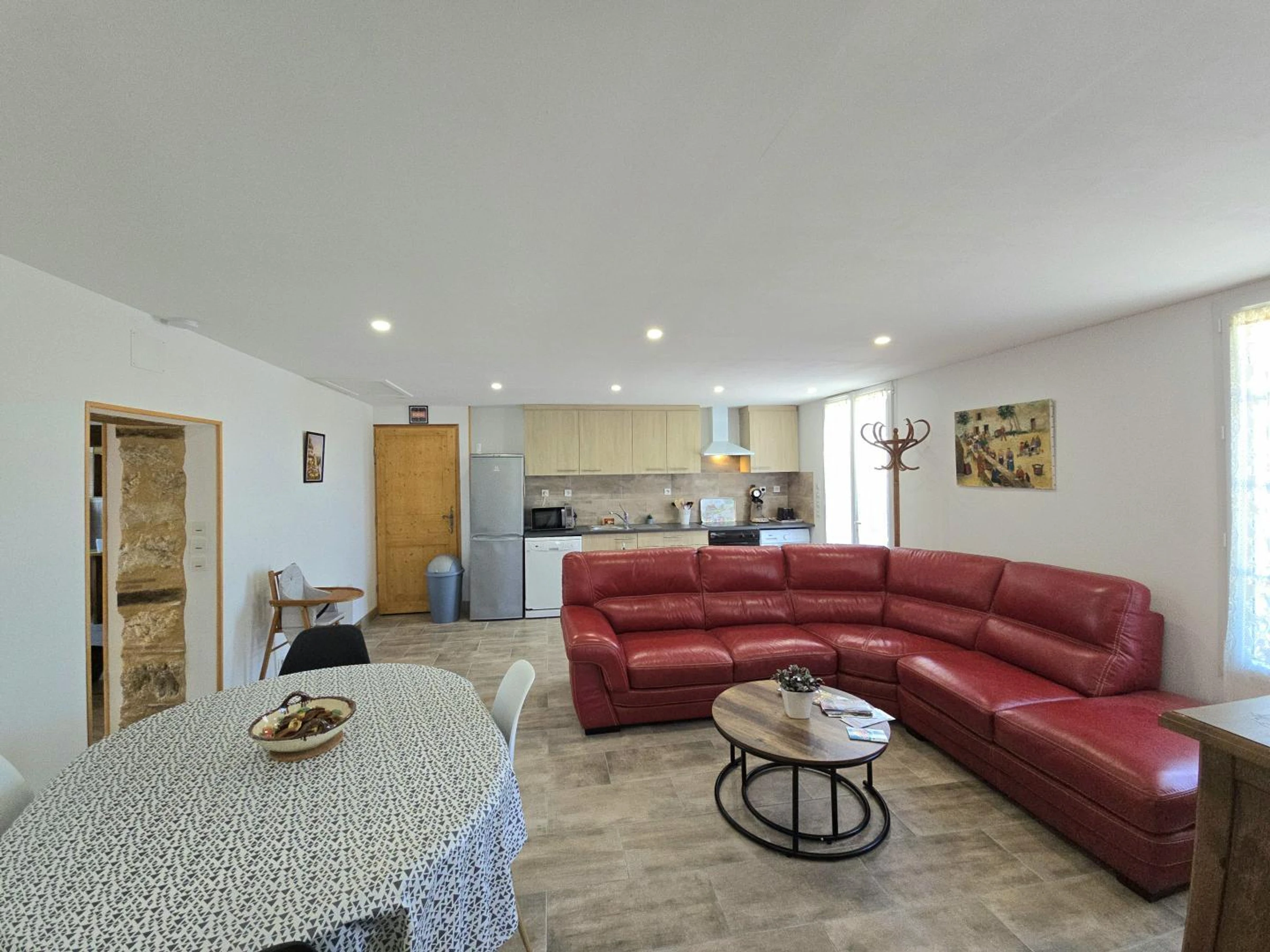 En la planta baja, el acceso a la sala de estar incluye una zona de estar (sofá esquinero, TV, wifi), un comedor para cuatro personas y una cocina totalmente equipada. Hay un dormitorio con cama de matrimonio (160 cm) y un segundo dormitorio con cama doble (140 cm). El baño cuenta con ducha a ras de suelo, lavabo doble y aseo. La piscina, compartida con otra casa rural y los propietarios, mide 10 x 4,2 metros y 1,5 metros de profundidad. Está tratada con cloro, abierta de abril a finales de octubre y con alarma. Frente a la casa rural hay una terraza privada con muebles de jardín, y en el jardín, compartido por ambas casas rurales, hay dos comedores con fogón. El jardín compartido tiene una superficie de aproximadamente 7000 m² e incluye una pista de petanca.