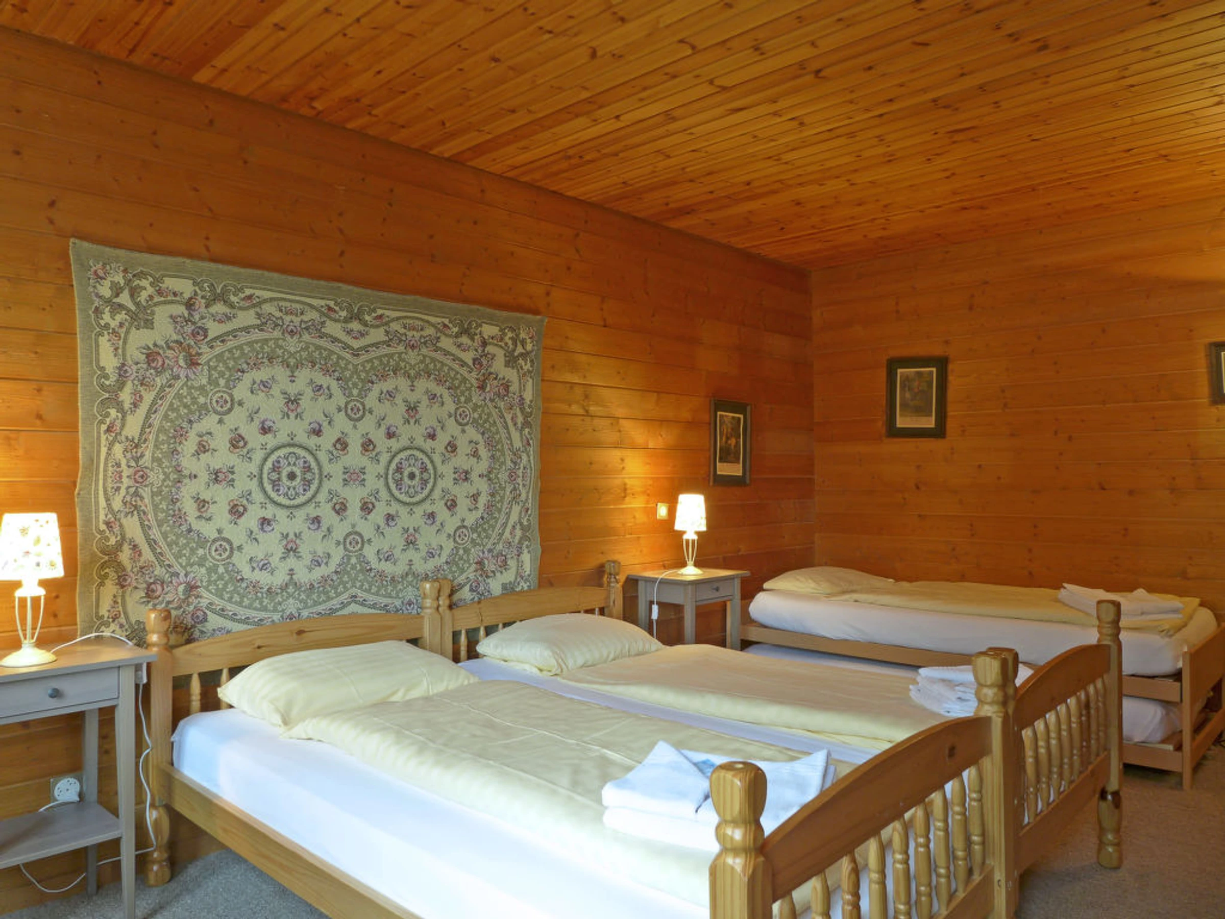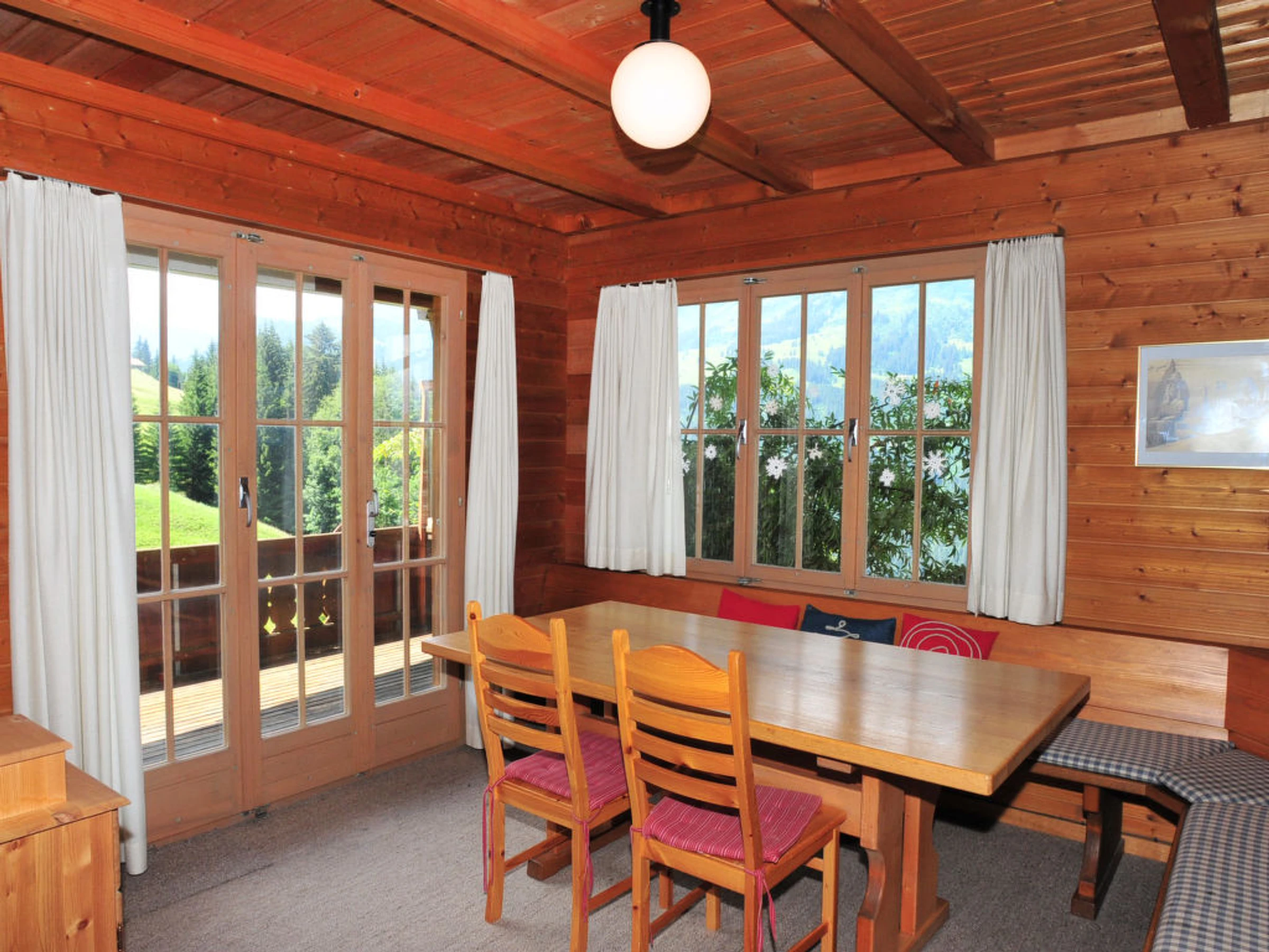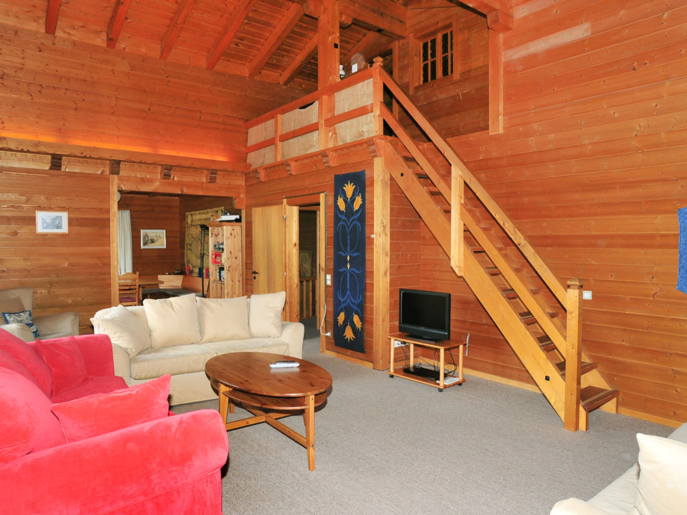 Chalet de madera 6 estancias. Espacioso, parcialmente abuhardillado, con mobiliario rústico y agradable: 1 dorm. con 1 cama doble (1 x 160 cm, 200 cm de longitud), baño/ducha/WC. Cocina-comedor (horno, lavavajillas, cafetera eléctrica, Cápsulas de café (Nespresso) extra, set de Fondue (queso)). Planta superior: comedor grande con TV cable, radio, CD y DVD. 1 dorm. con 1 cama doble (180 cm, 200 cm de longitud). 1 dorm. con 4 camas (90 cm, 200 cm de longitud). 2 baños/duchas/WC. Buhardilla: 1 dorm., abuhardillado con 1 cama doble (160 cm, 200 cm de longitud). Balcón, terraza. Muebles de terraza. Vista panorámica espléndida a las montañas. El alojamiento dispone de: lavadora, plancha, secador de pelo. Internet (Wifi, gratis). A tener en cuenta: apartamento para no fumadores. Incluye: Limpieza final, ERV assurance annulation gratuite, Sábanas y toallas (primer juego de sábanas y toallas) Disponible en el sitio con suplement,o: Cama para niños (hasta 2 años) 8.77EUR por día, Trona 4.39EUR por día Servicios extras obligatorios en el sitio: Póliza de turismo 3.8EUR por persona/día, Tasa local de niños (3-5) (por persona/día), Tasa local de niños (6-15) 1.8EUR por persona/día, Póliza de turismo 4.3EUR por persona/día, Póliza de turismo 4.8EUR por persona/día, Tasa local de bebés (0-2) (por persona/día)