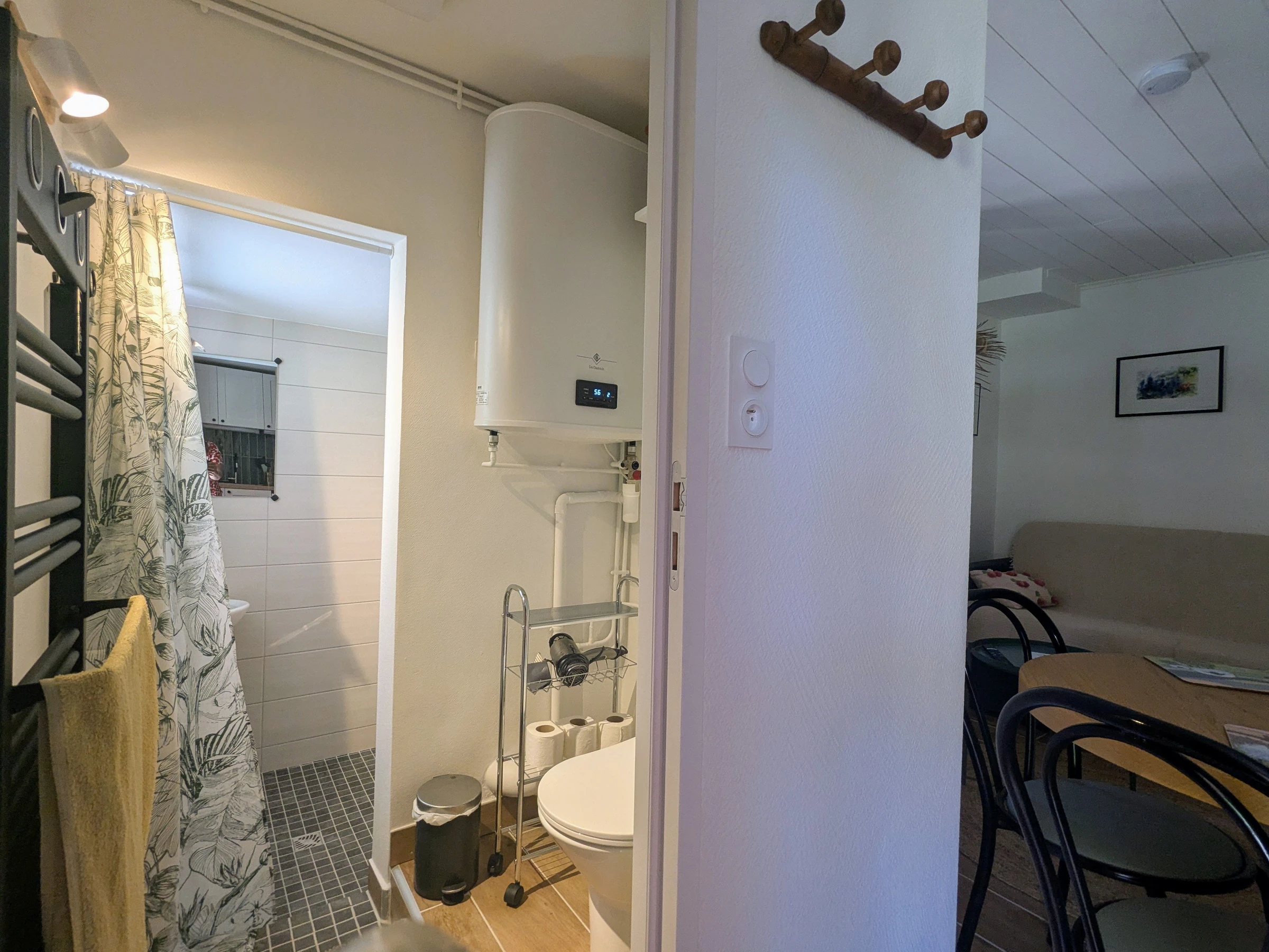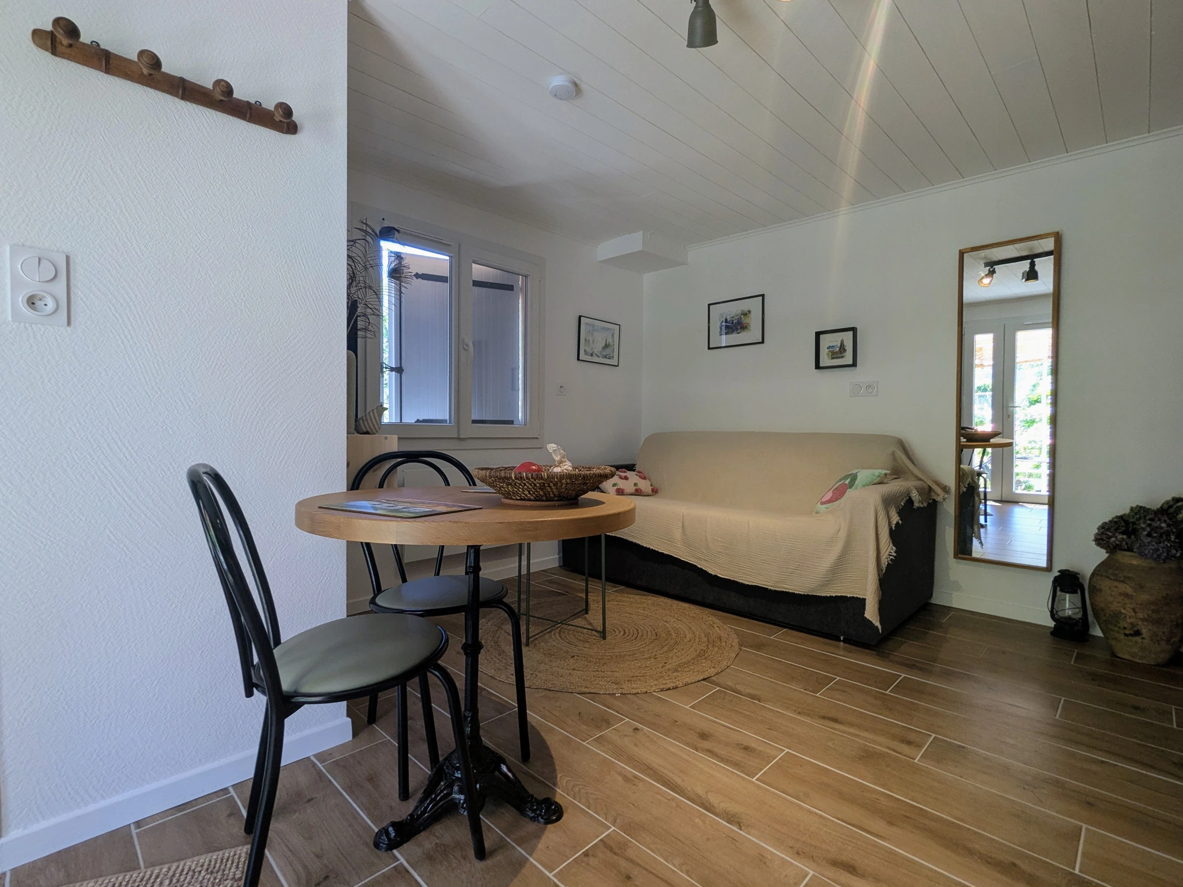 La casa rural se encuentra en un terreno ajardinado y arbolado de aproximadamente 300 m² con varias zonas de relax. El río Loira se encuentra a los pies de la propiedad, ideal para la observación de aves y fauna. La casa está distribuida como un estudio. El salón consta de una cocina totalmente equipada con mesa de comedor y una sala de estar con TV y un sofá cama de alta calidad. Un baño con ducha e inodoro completa el alojamiento.